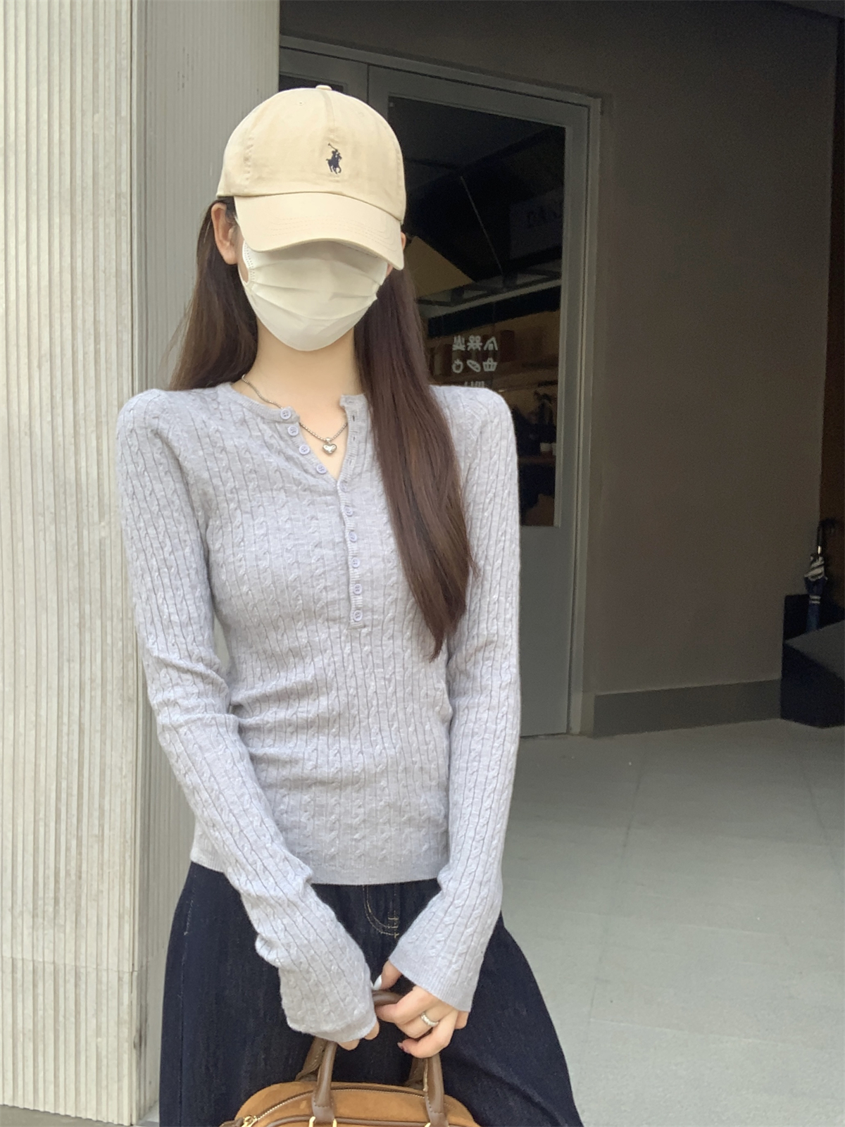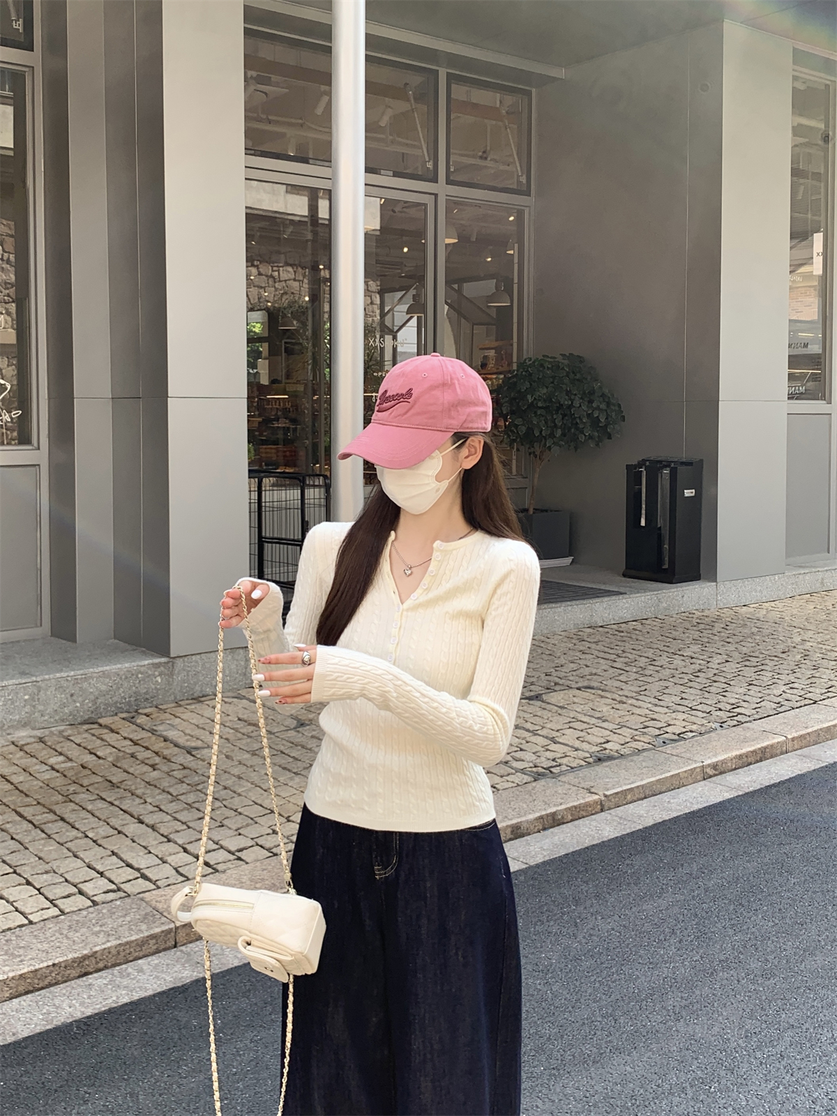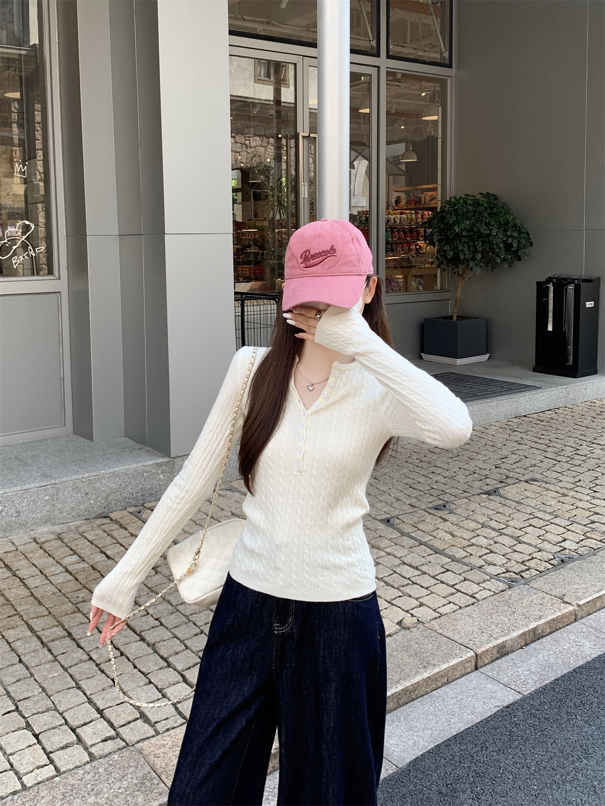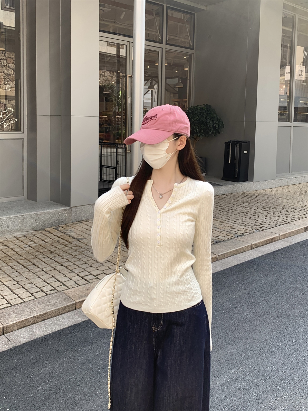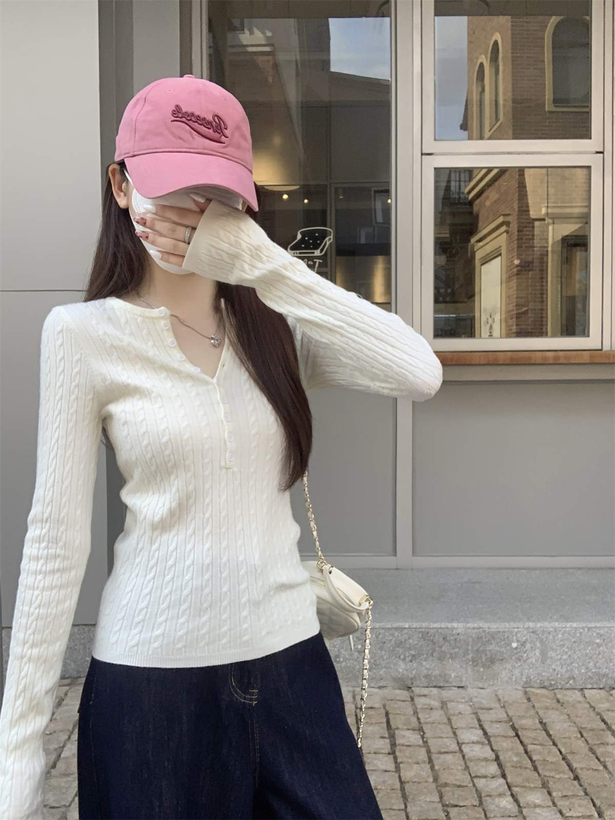 MY14084# 韩版麻花温柔百搭纽扣半开领安迪绒内搭针织衫毛衣女裝貨源服裝批發