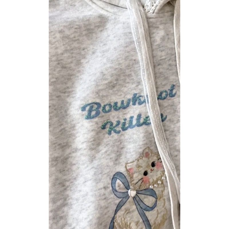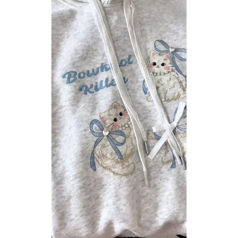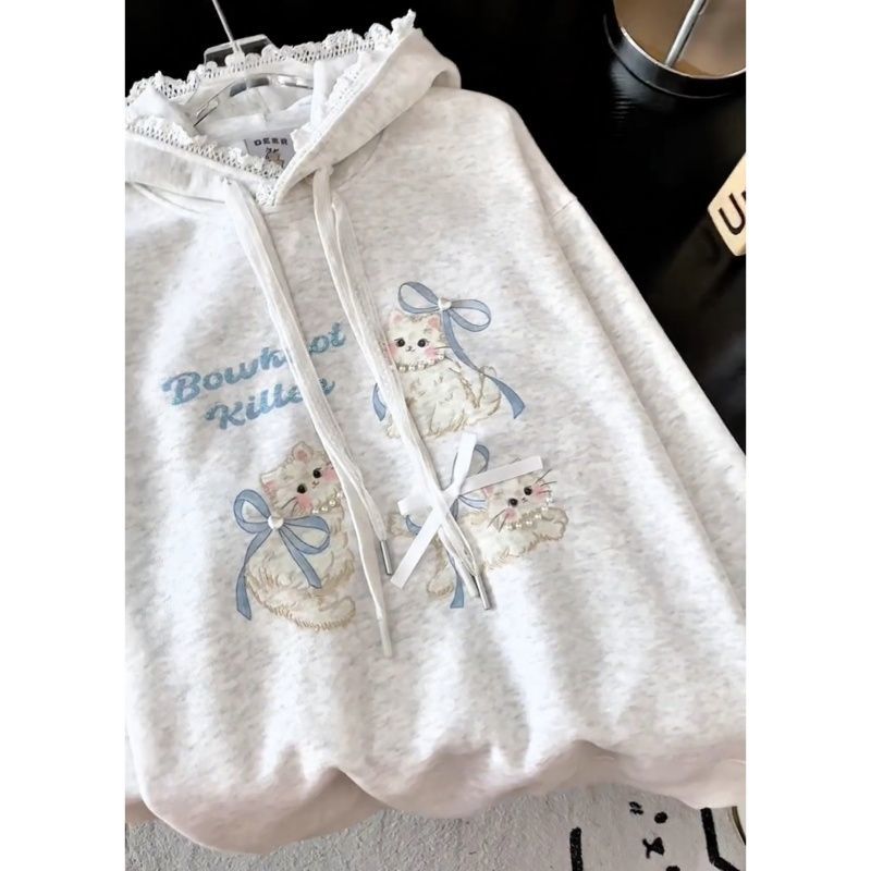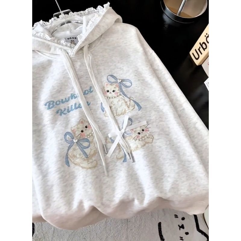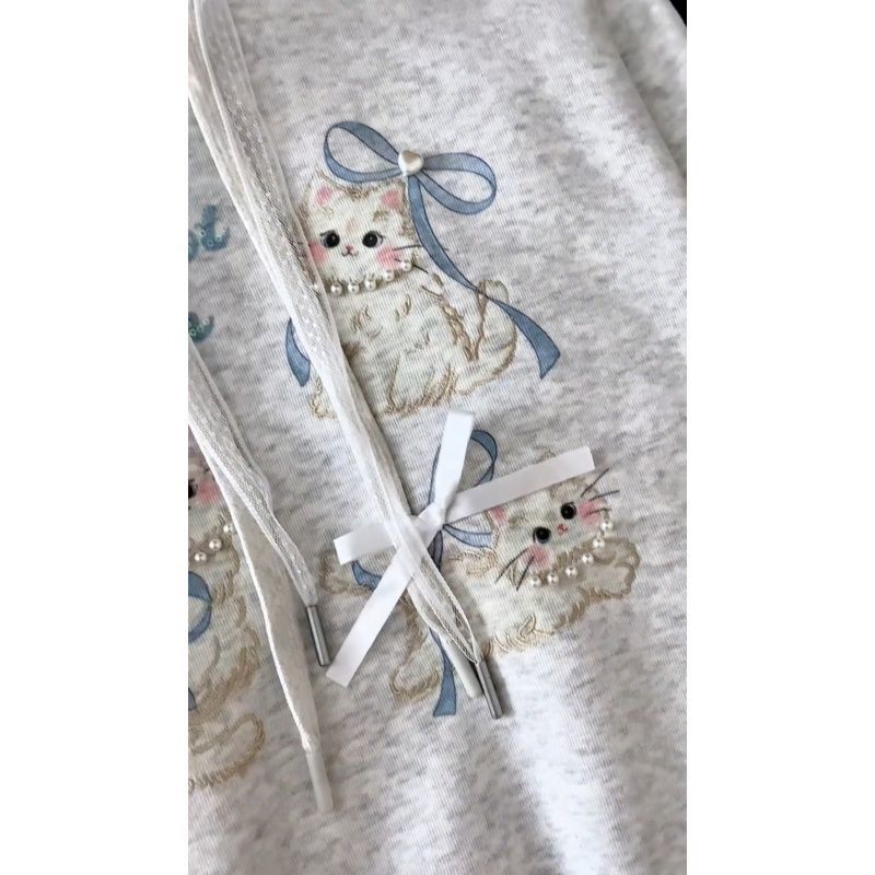 MY14101# 纯棉华棉 薄款加绒 猫咪印花+钉珠连帽卫衣女裝貨源服裝批發