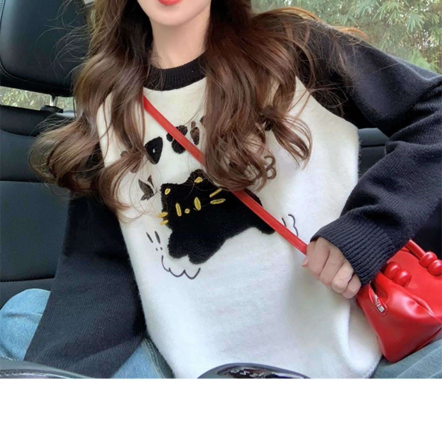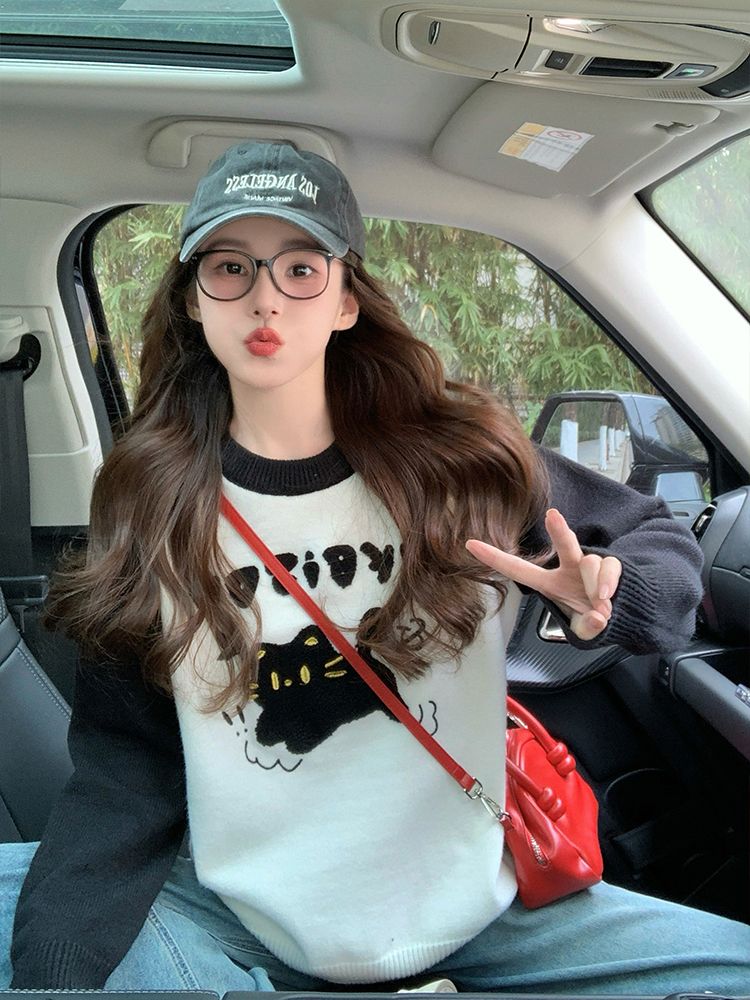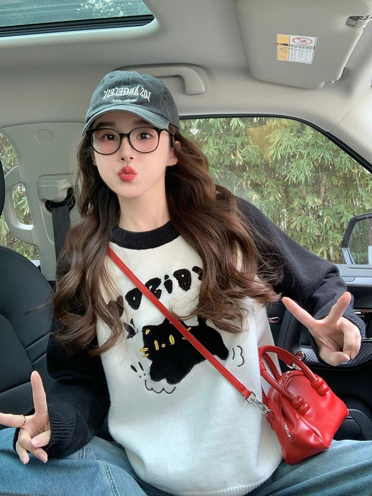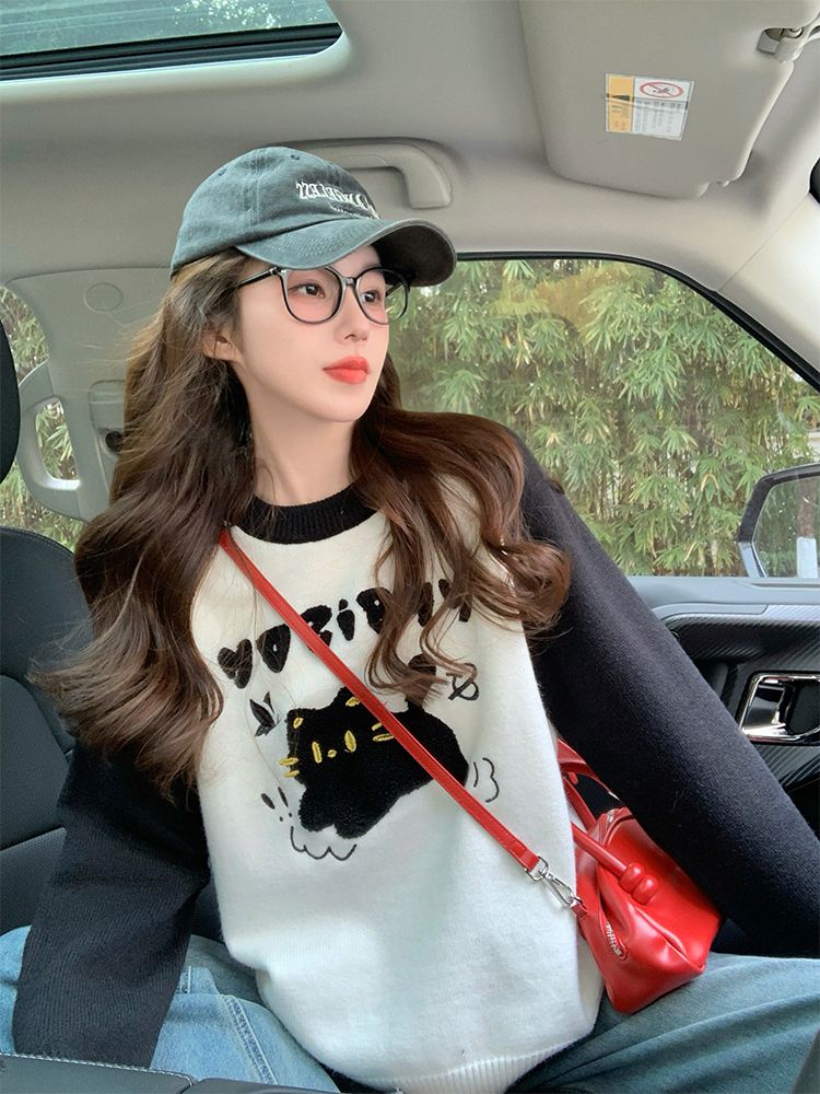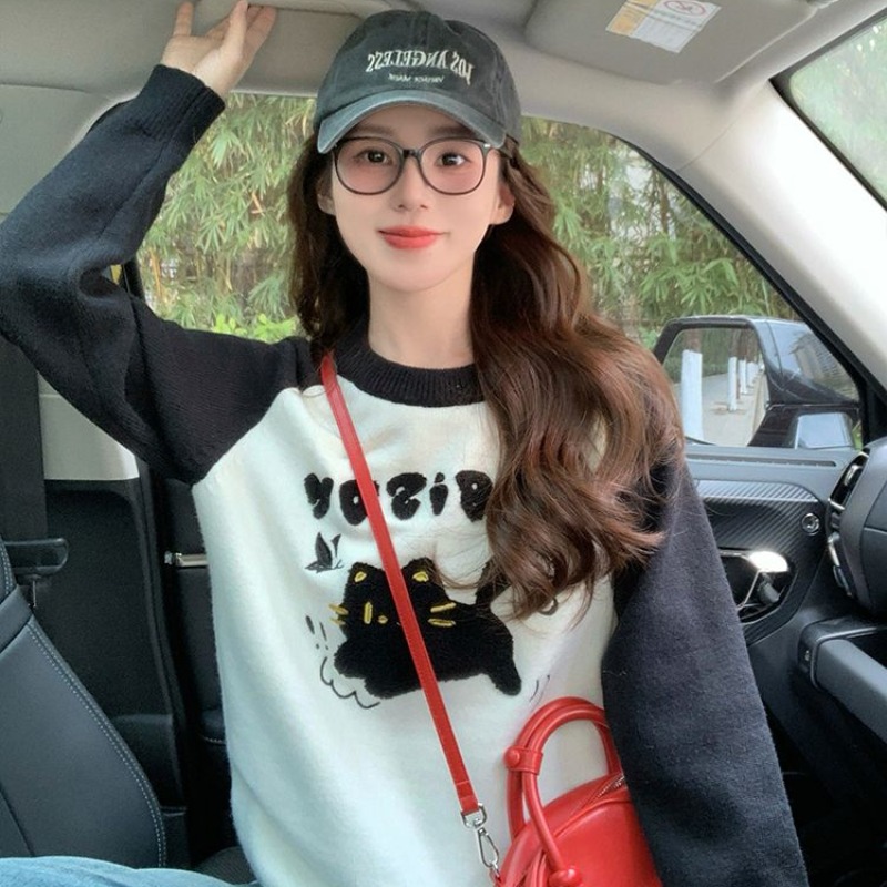 MY14107# 绵羊绒猫咪毛巾绣毛衣女新款秋冬季设计感韩系慵懒风针织衫女裝貨源服裝批發
