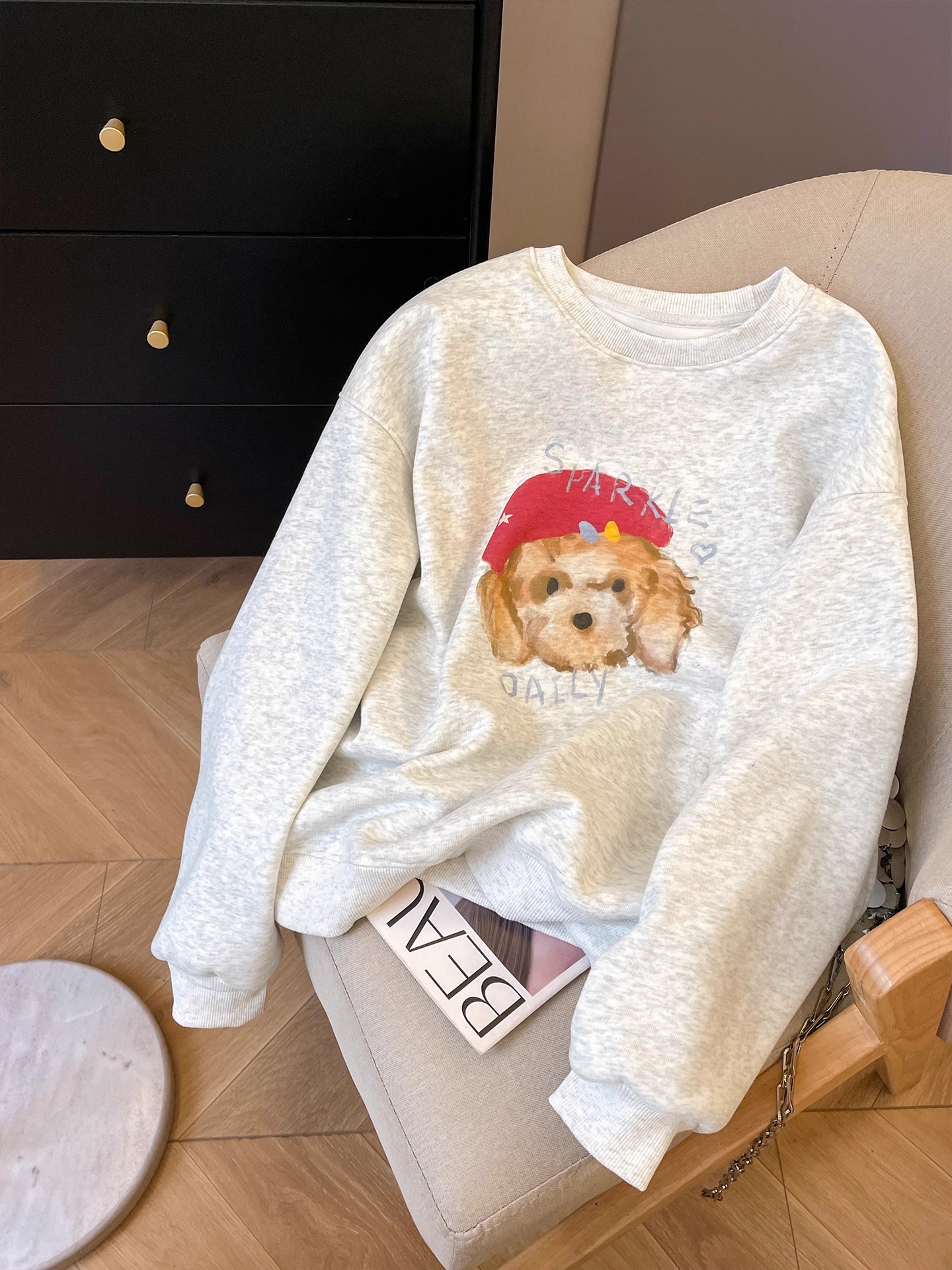 MY14110# 华棉复合-薄款/加绒 跨境英文洗水标圆领卫衣女印花女裝貨源服裝批發