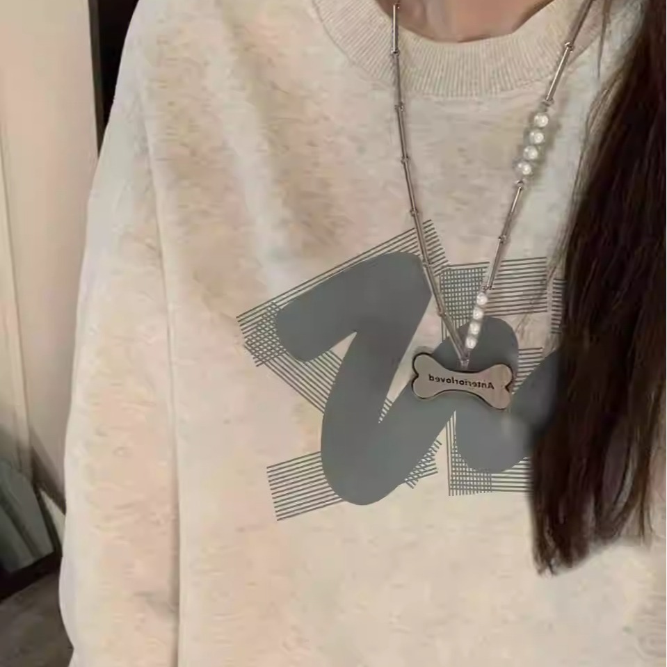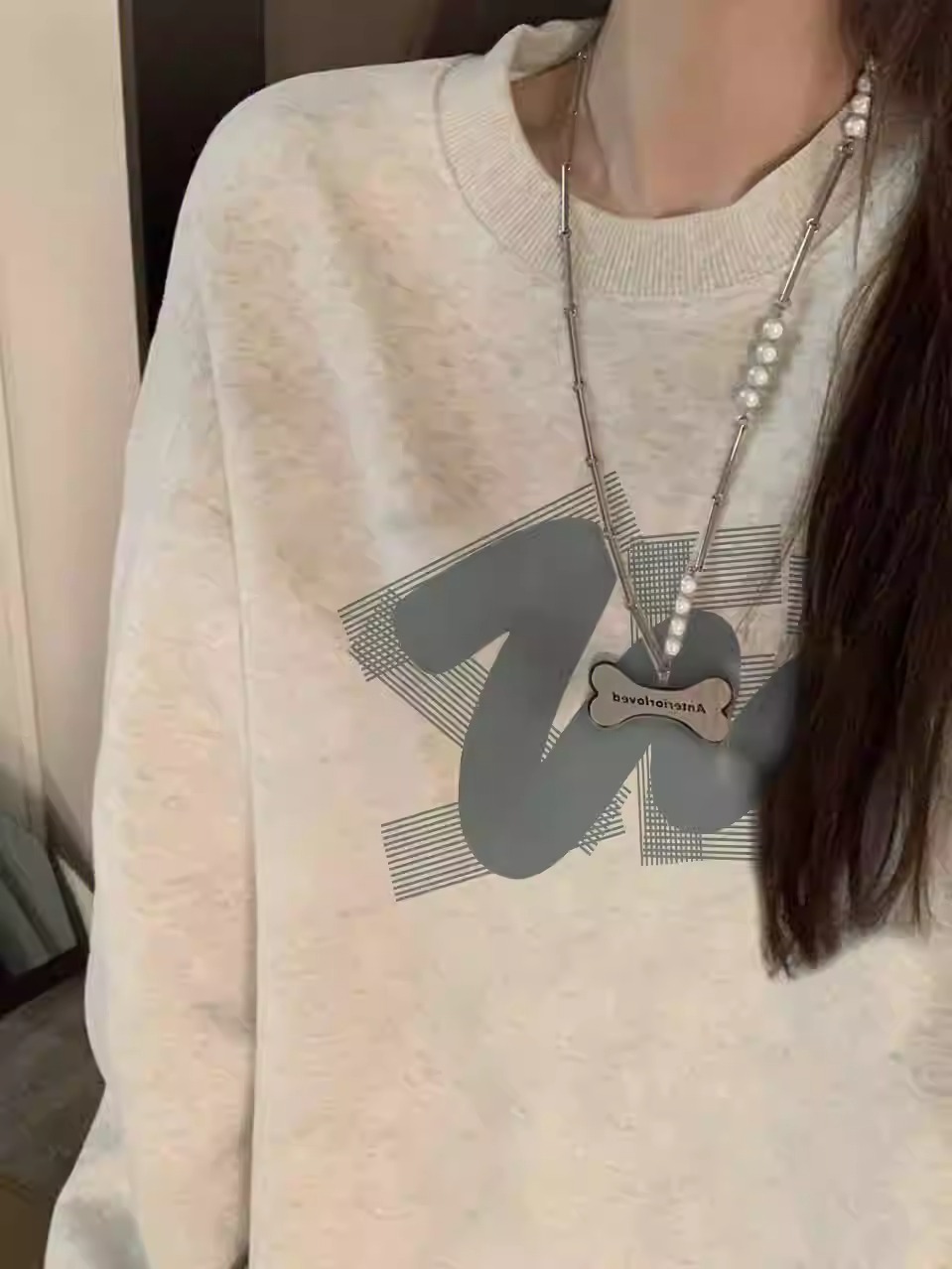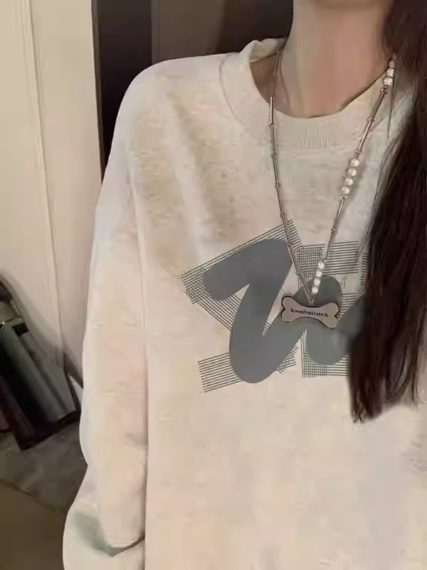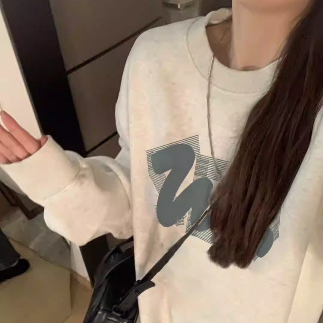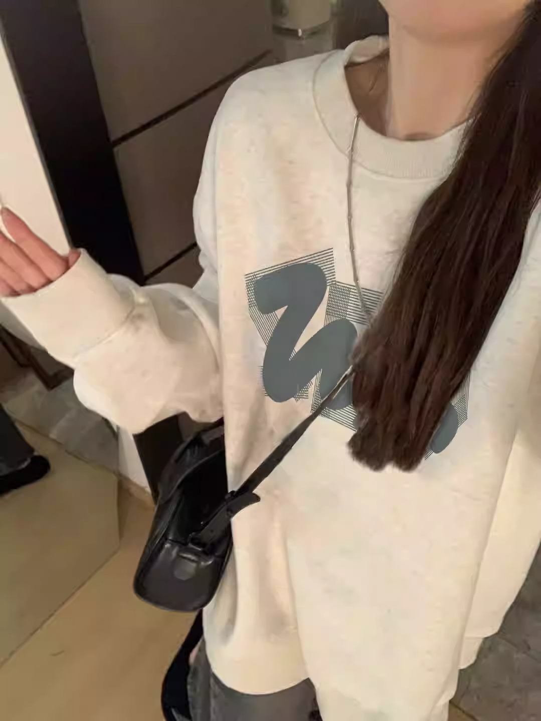 MY14111# 华棉复合-薄款/加绒 跨境英文洗水标圆领卫衣女印花女裝貨源服裝批發