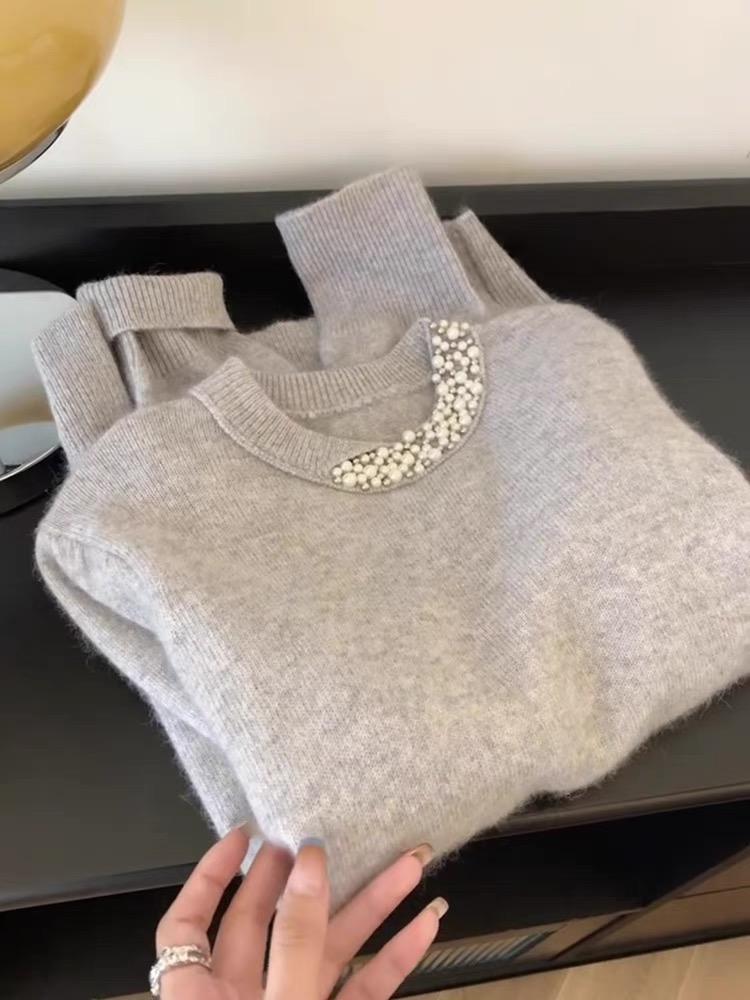 MY14245# 法式泡泡袖浣熊绒毛衣穿搭加厚秋冬高级感爆款洋气套头上衣女裝貨源服裝批發