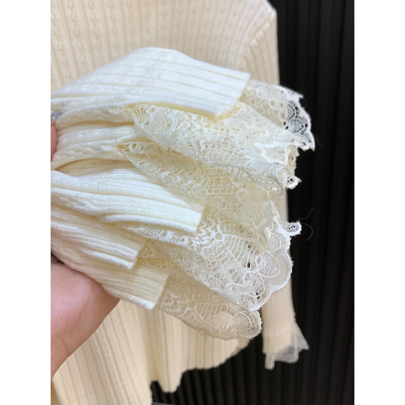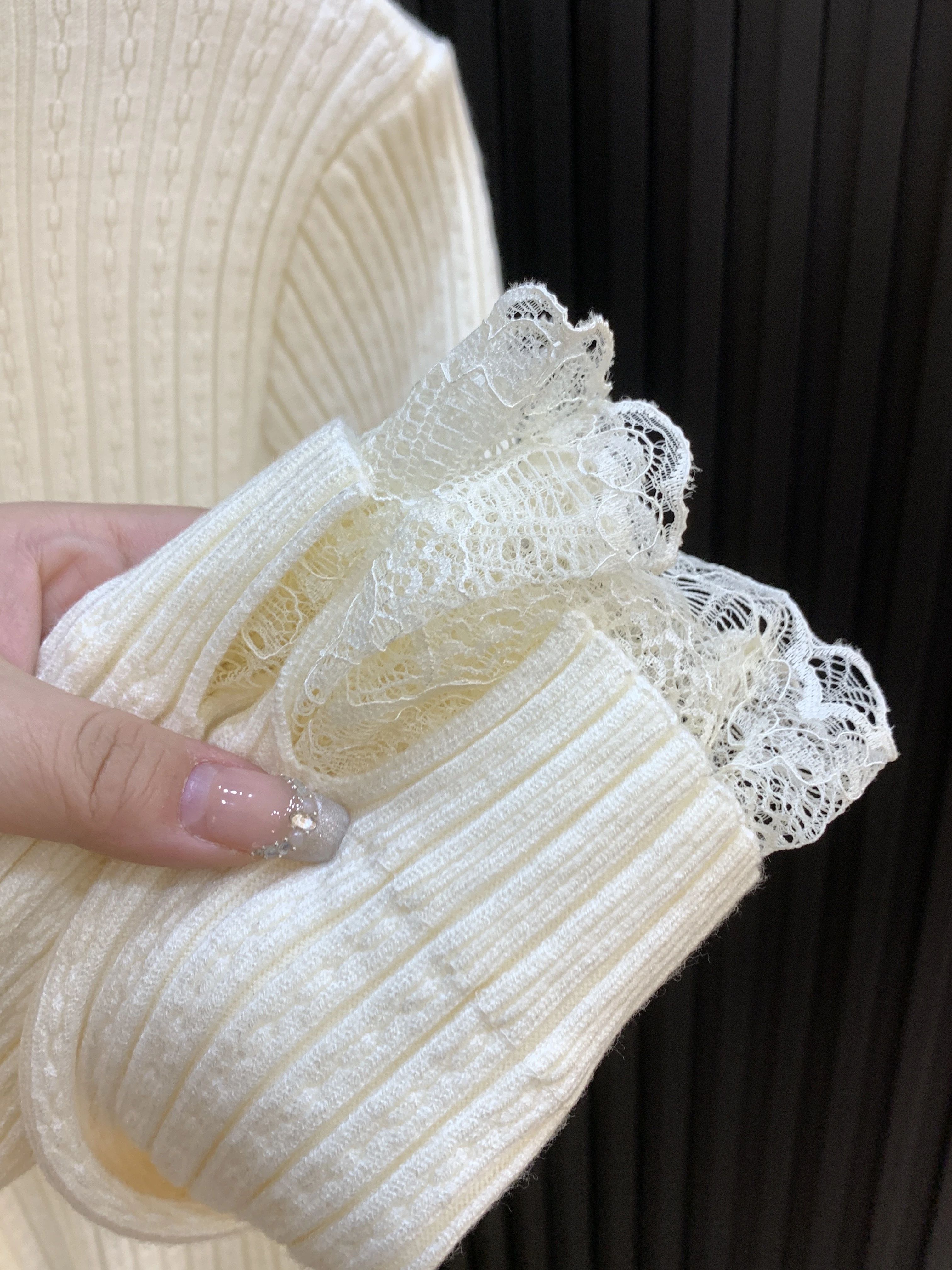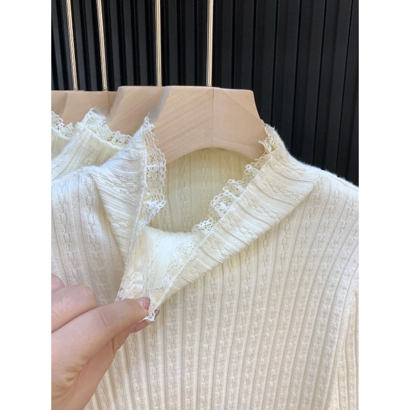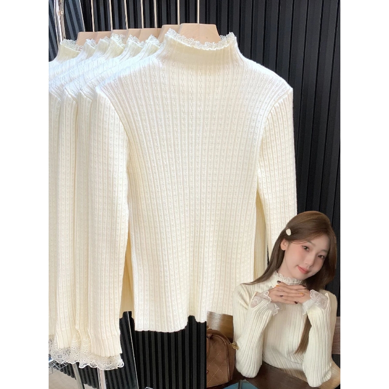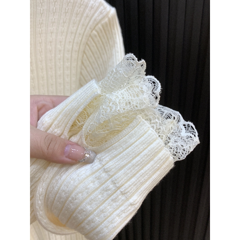 MY14253# 温柔风蕾丝拼接半高领内搭针织毛衣女chic肌理感绝美打底上衣女裝貨源服裝批發