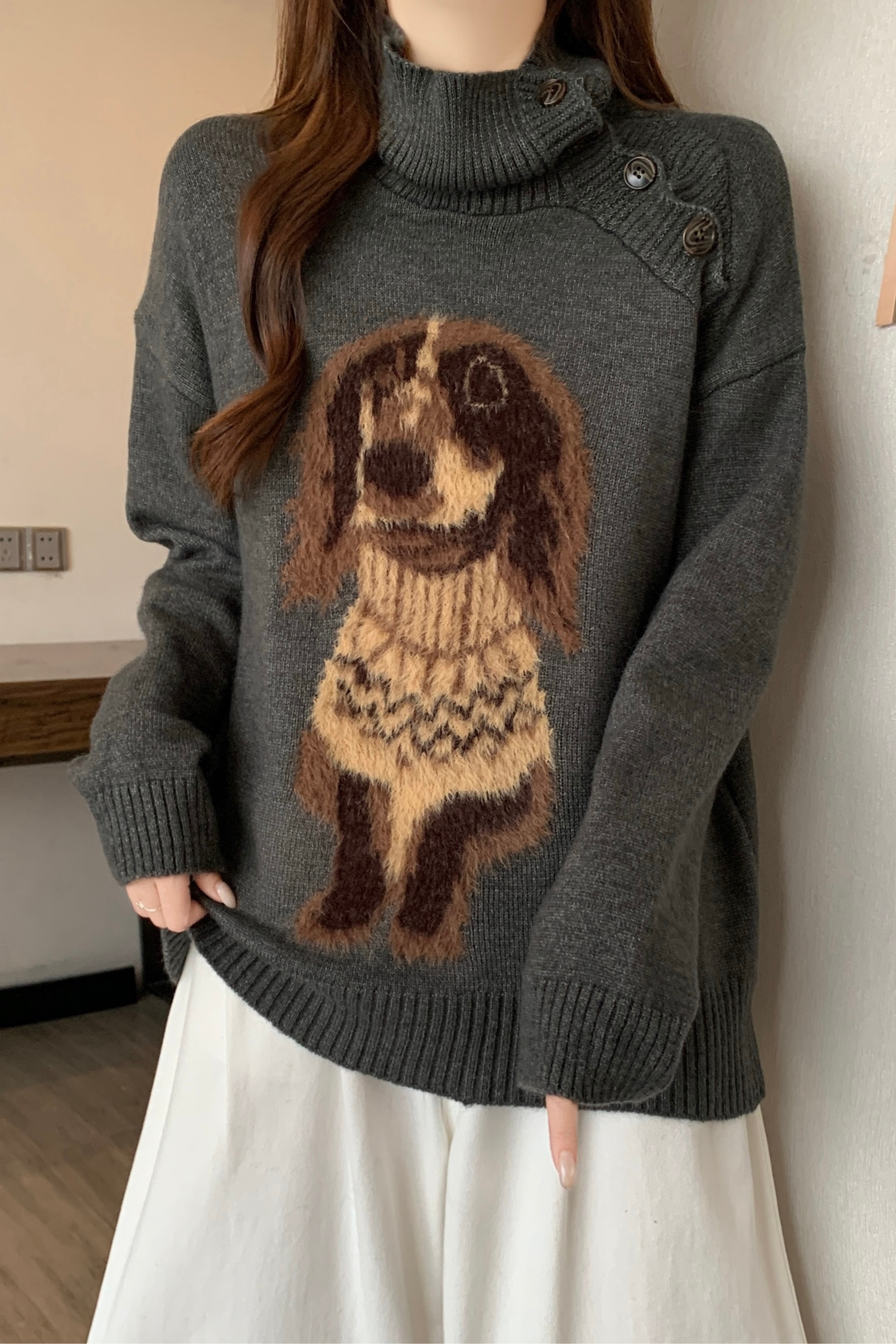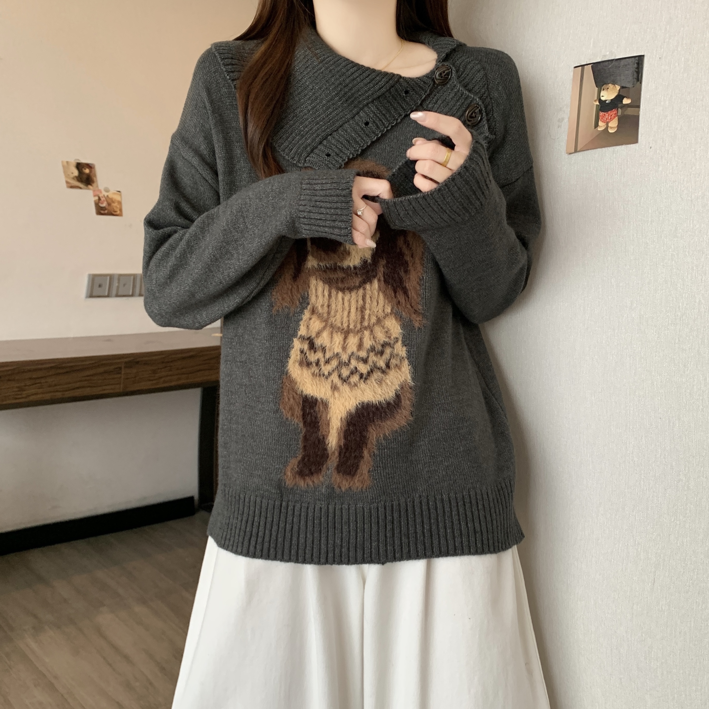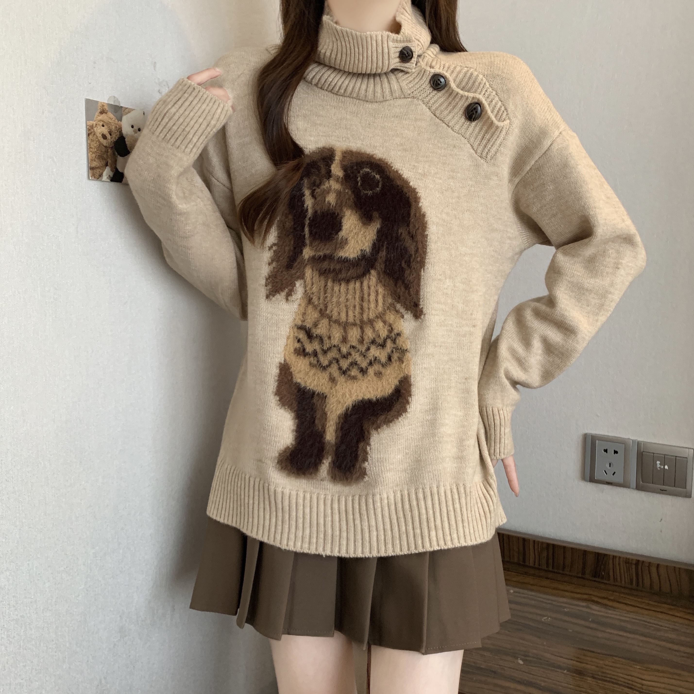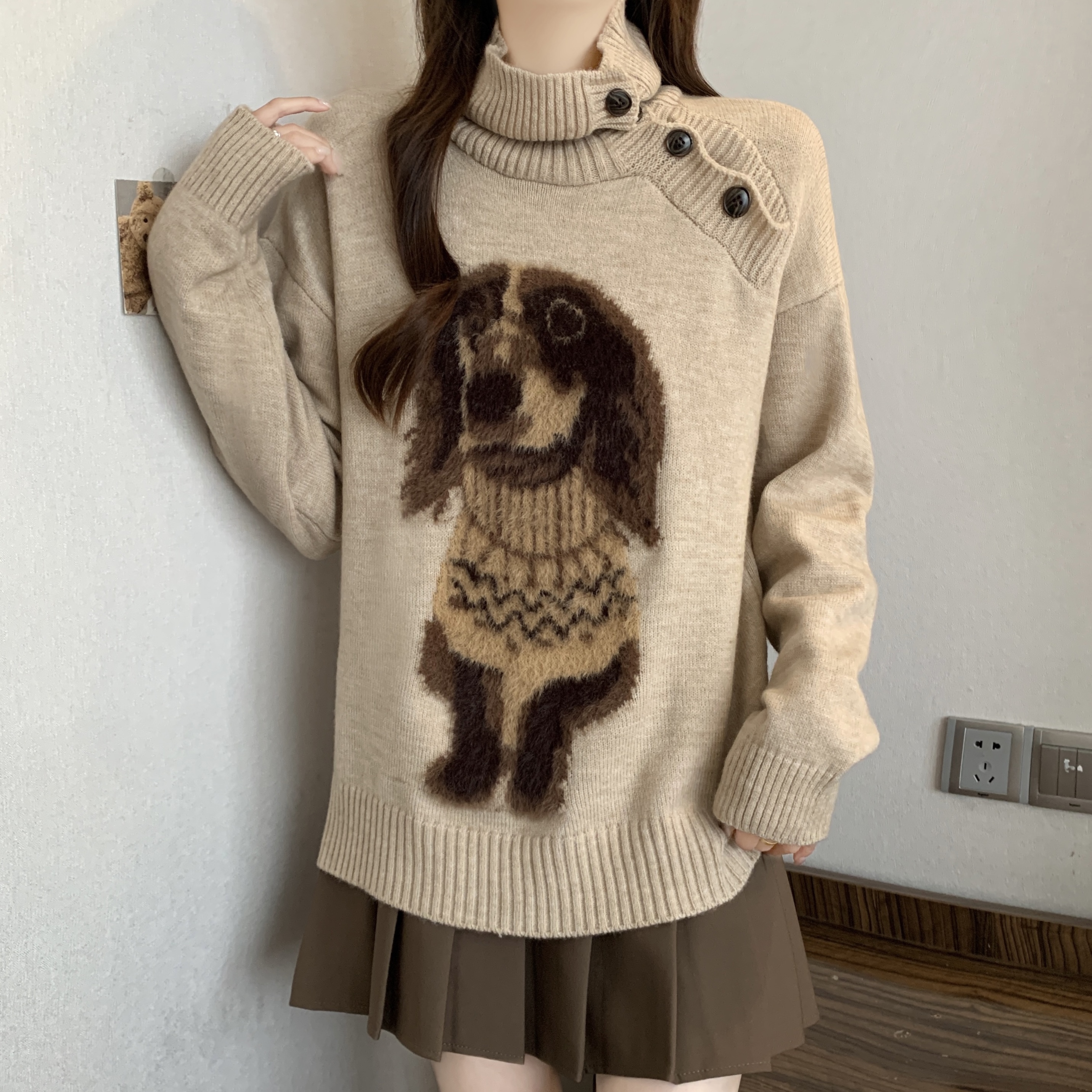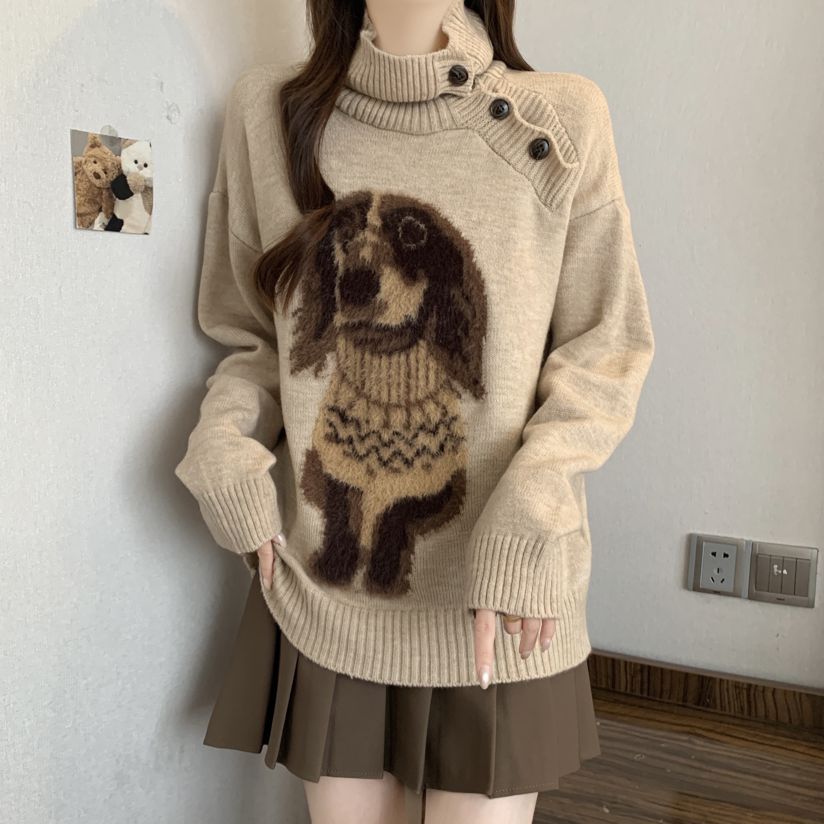 MY14276# 高级感韩系小狗翻领套头毛衣复古宽松慵懒风外穿针织上衣女裝貨源服裝批發
