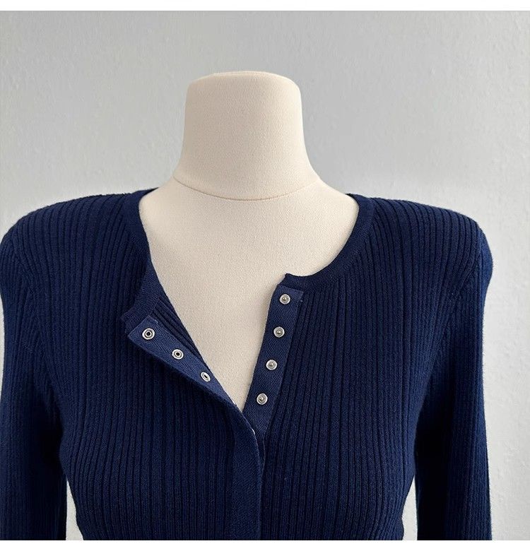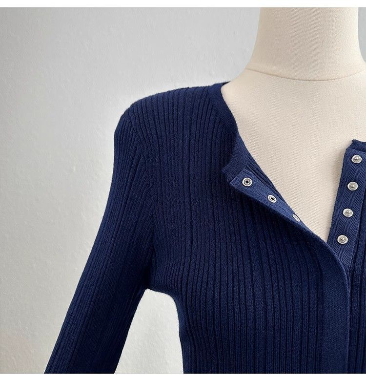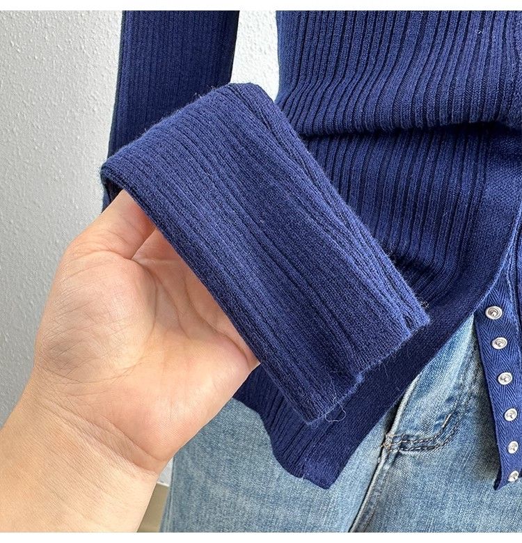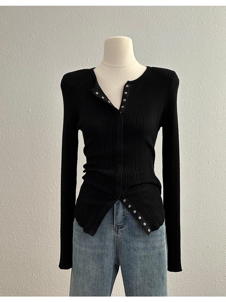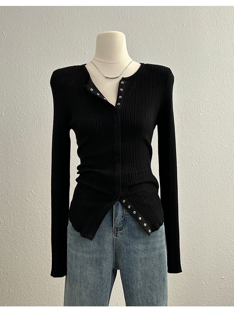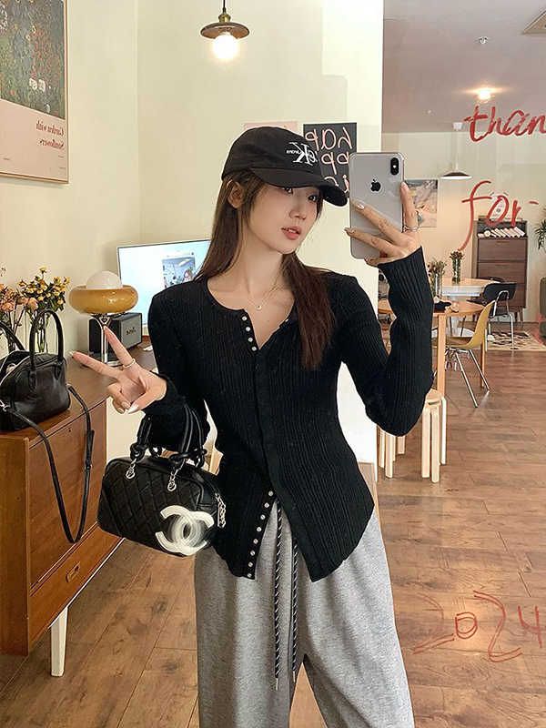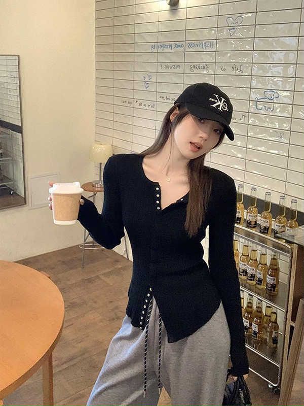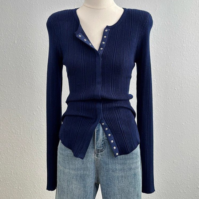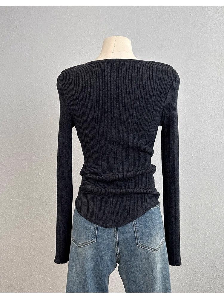 MY14285# 高级感针织长袖t恤女冬洋气修身显瘦百搭打底衫独特毛衣上衣女裝貨源服裝批發