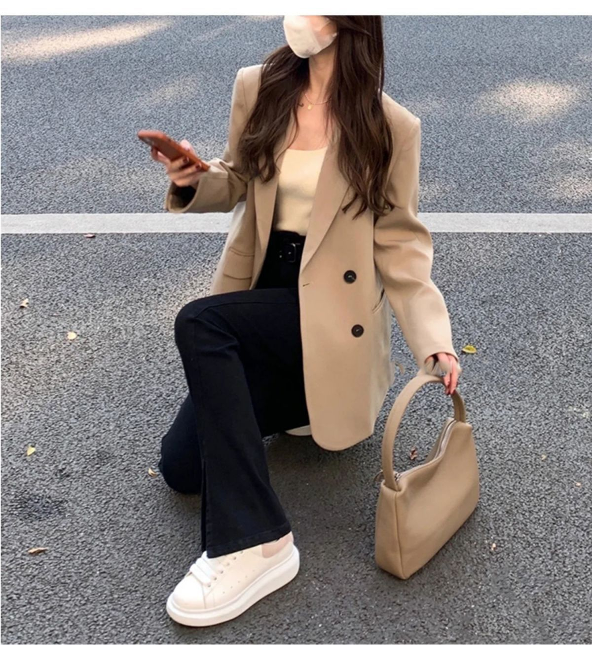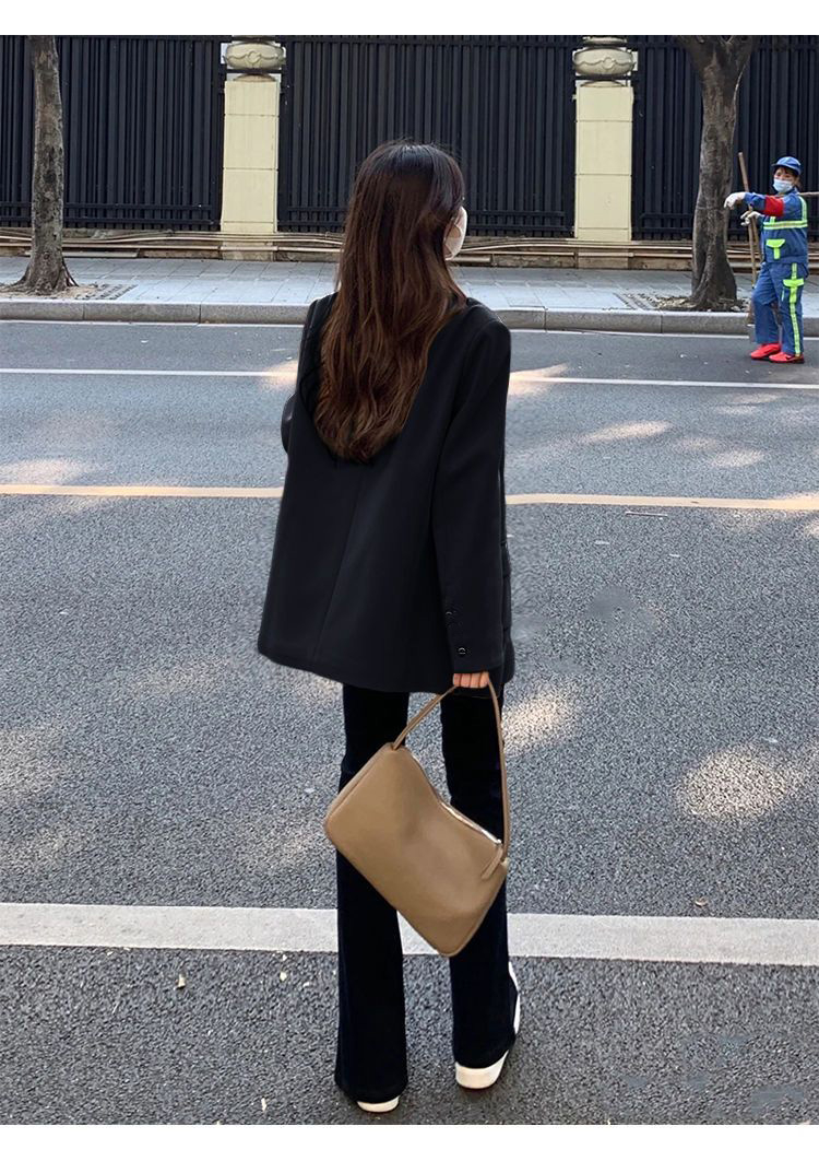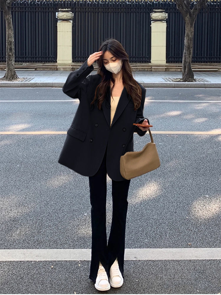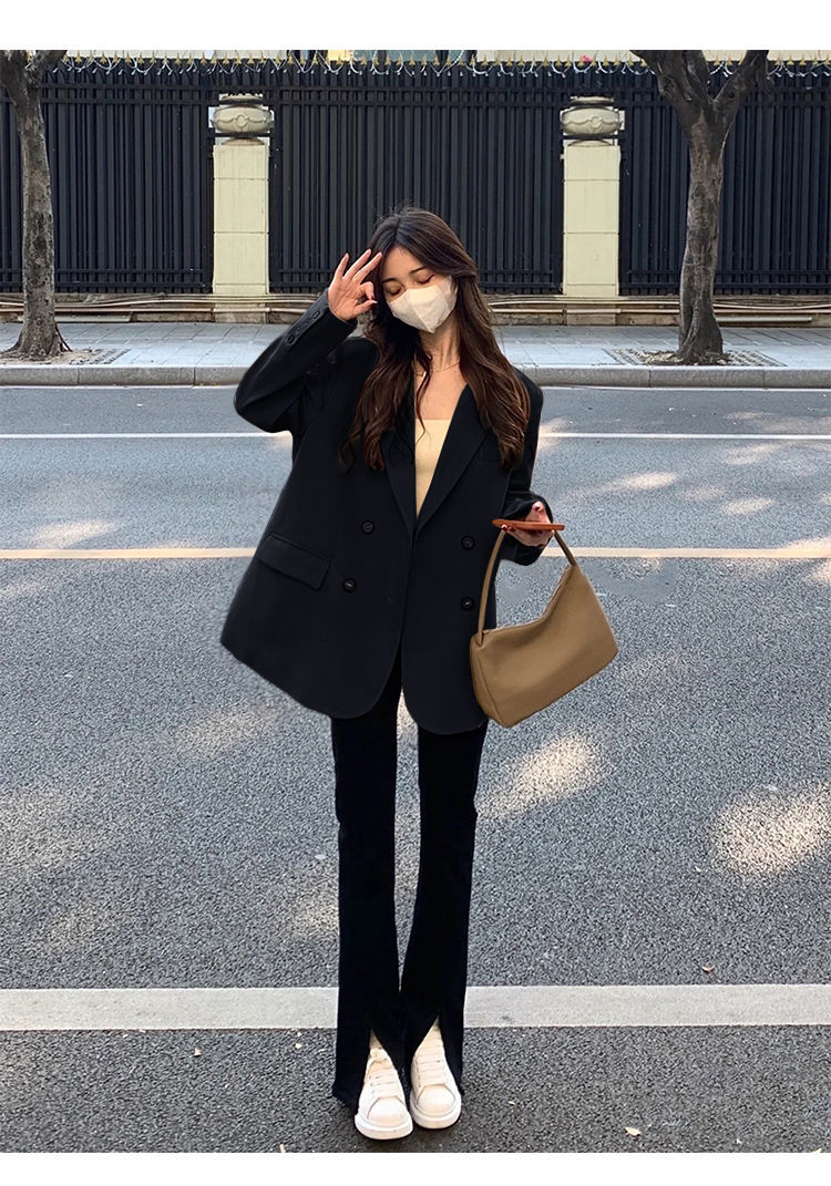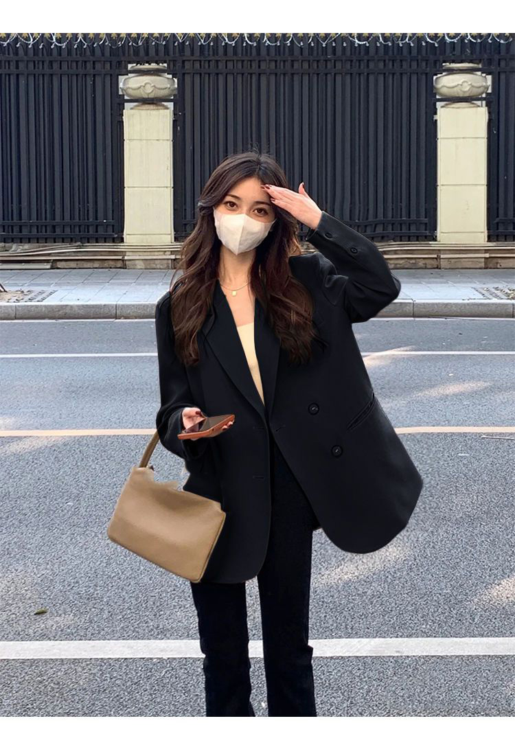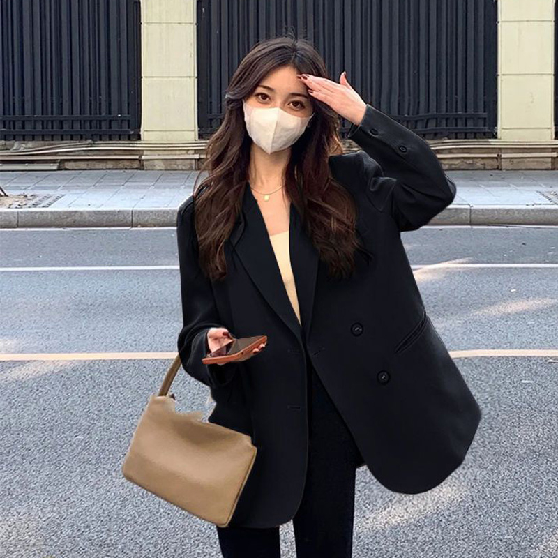 MY14514# 奶白色西装外套韩系双排扣小众百搭休闲oversize西服潮女裝貨源服裝批發