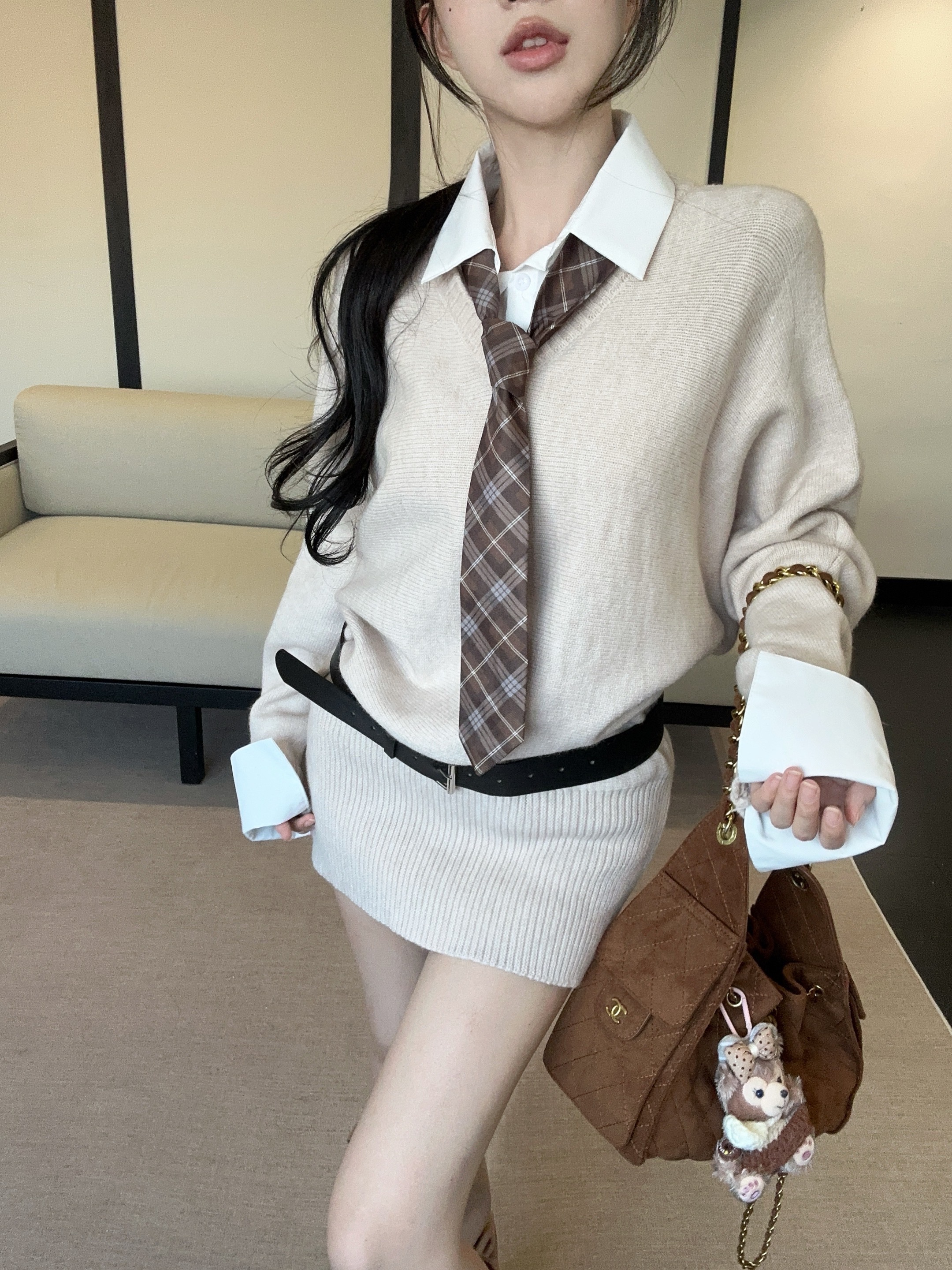 MY14526# 韩系显瘦假两件polo领长袖针织毛衣连衣裙女裝貨源服裝批發