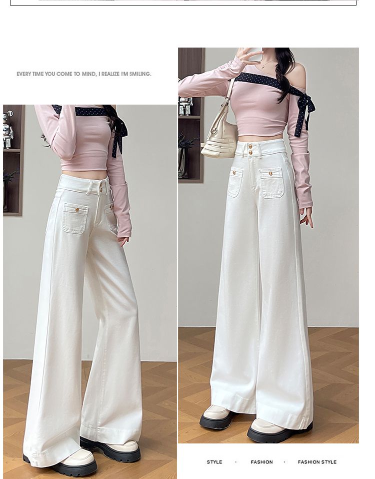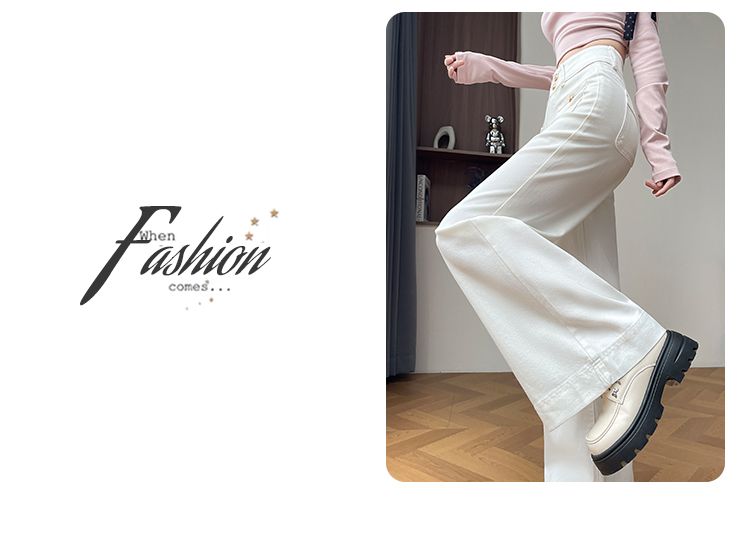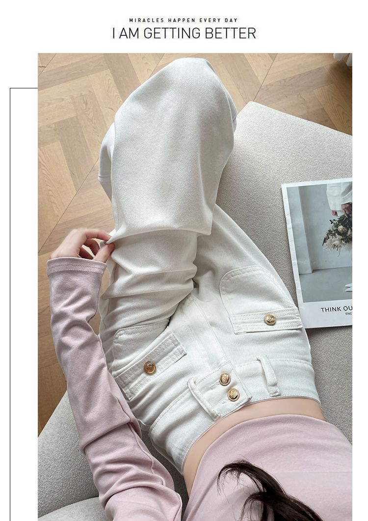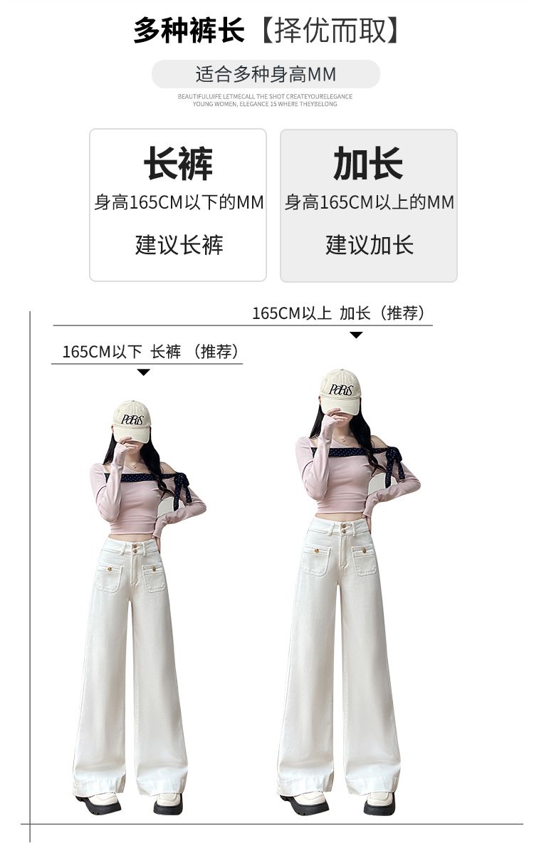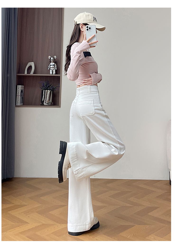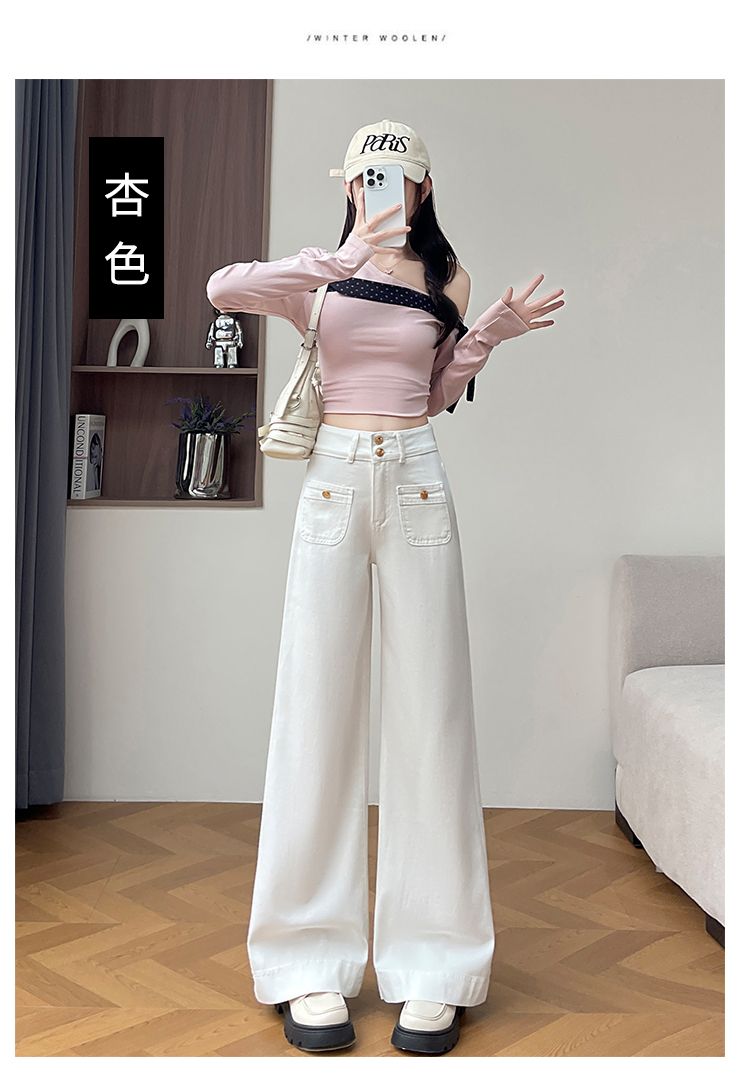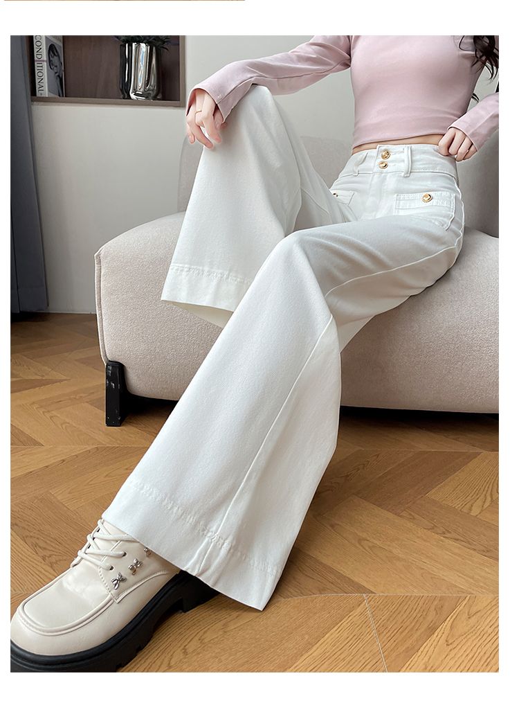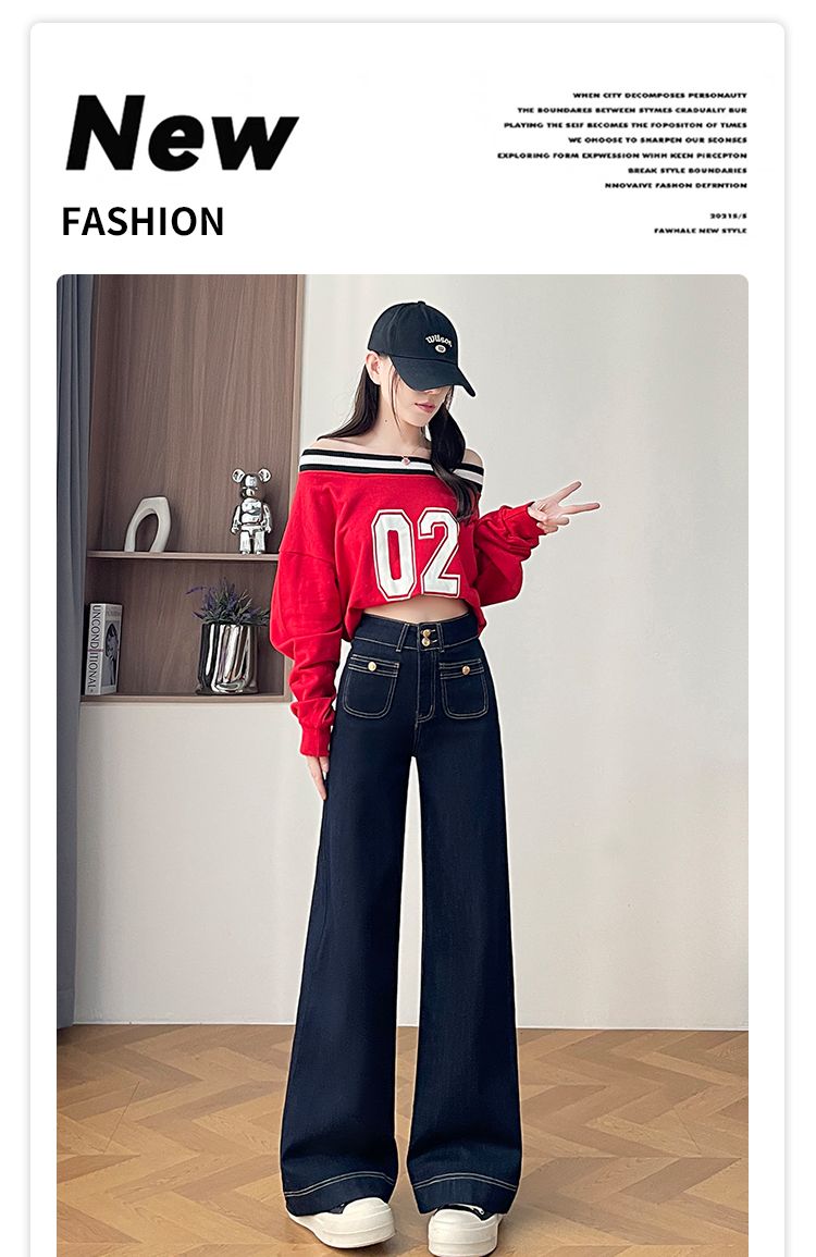 MY14533# 丹宁色窄版直筒牛仔裤新款高腰双扣显瘦弹力阔腿裤女裝貨源服裝批發