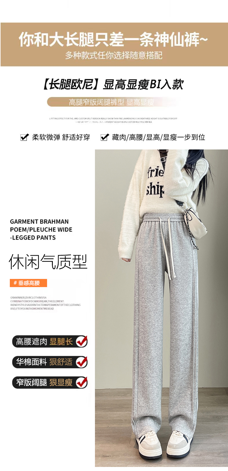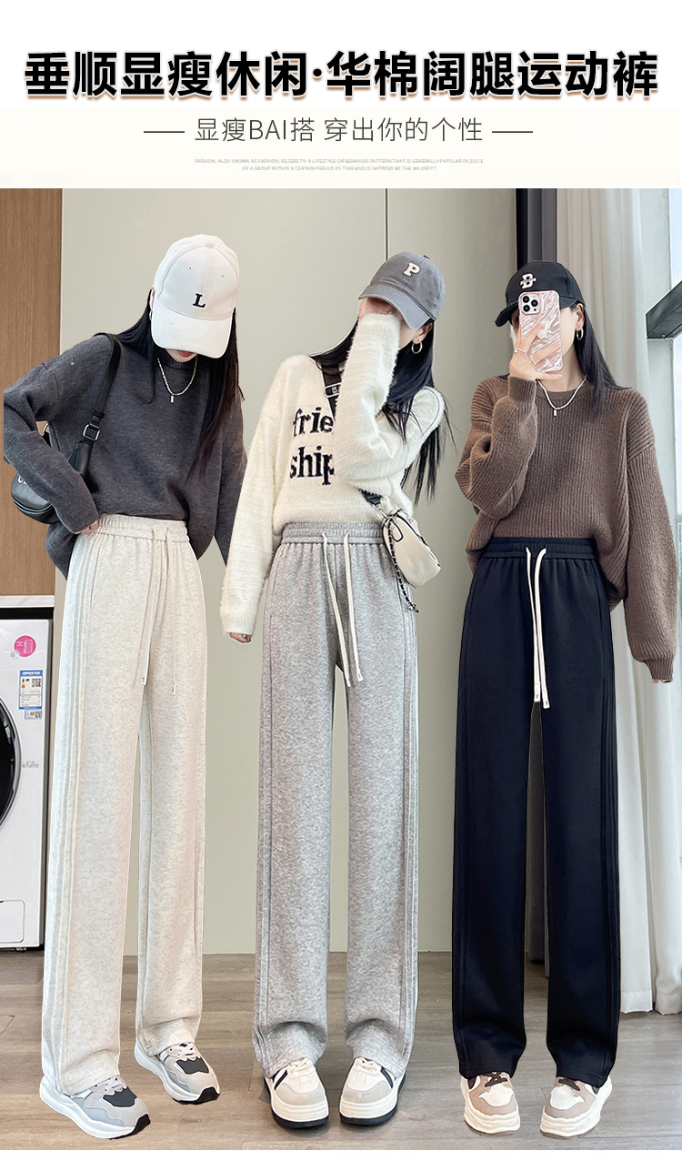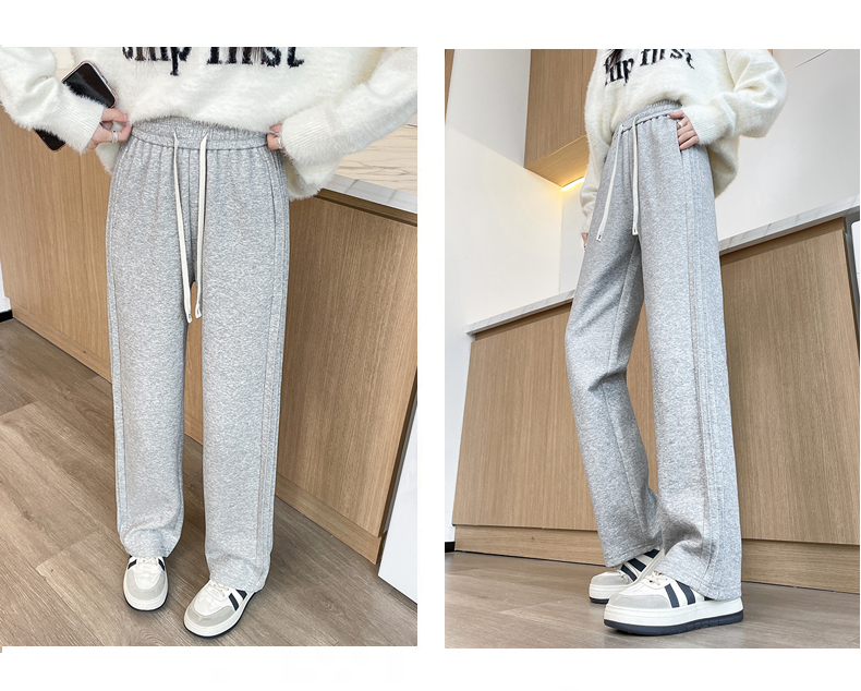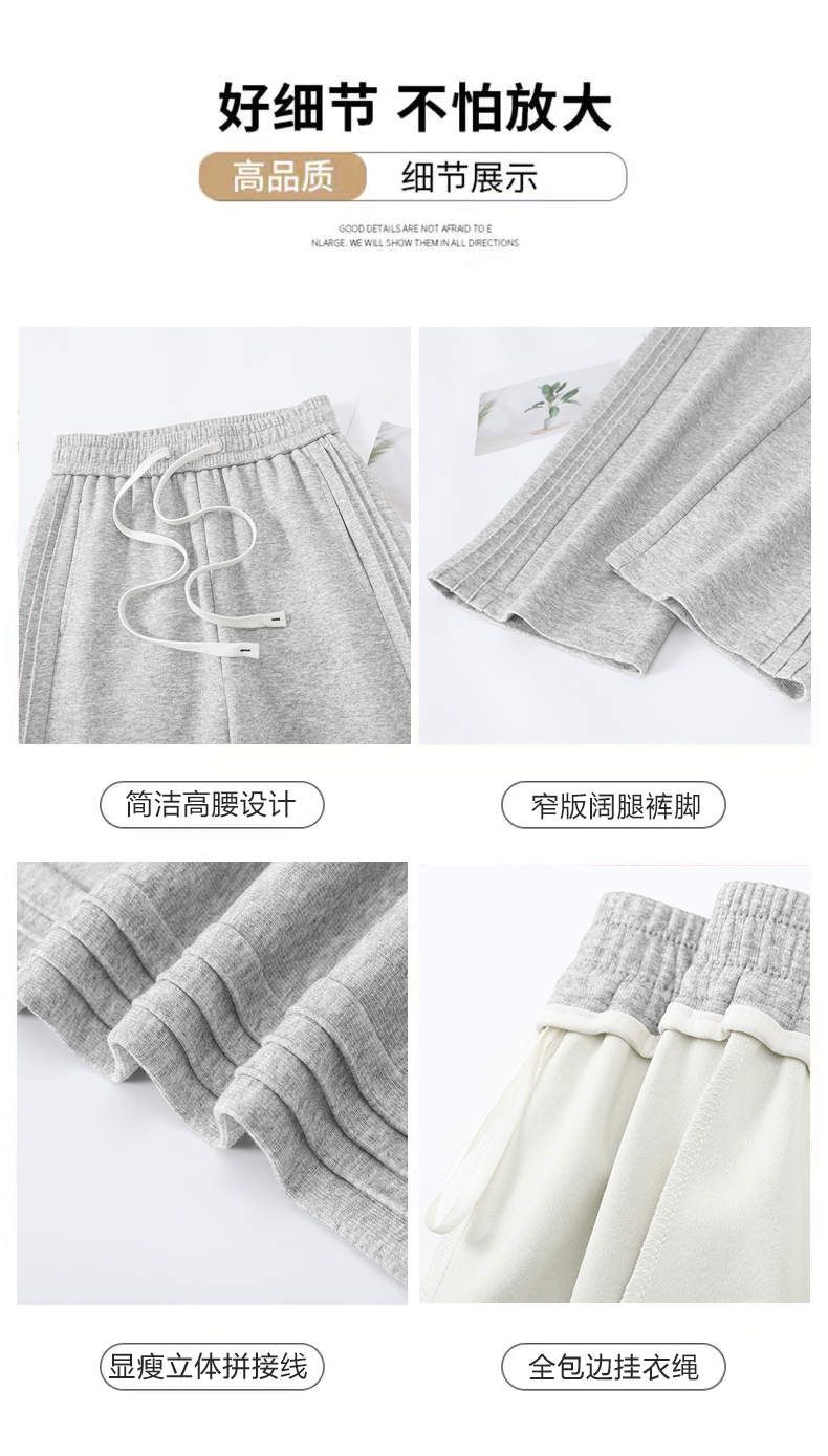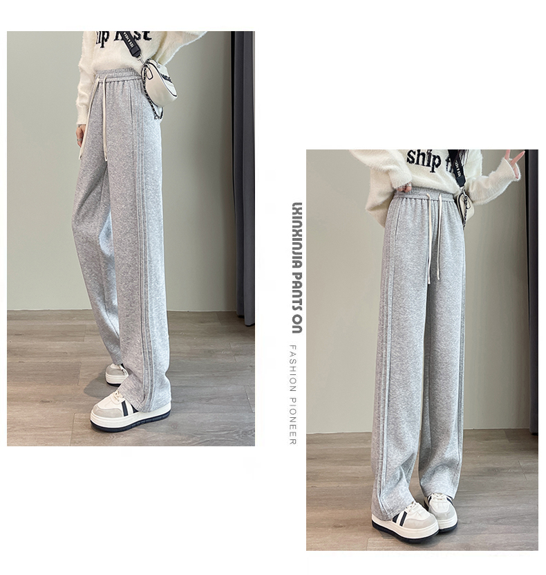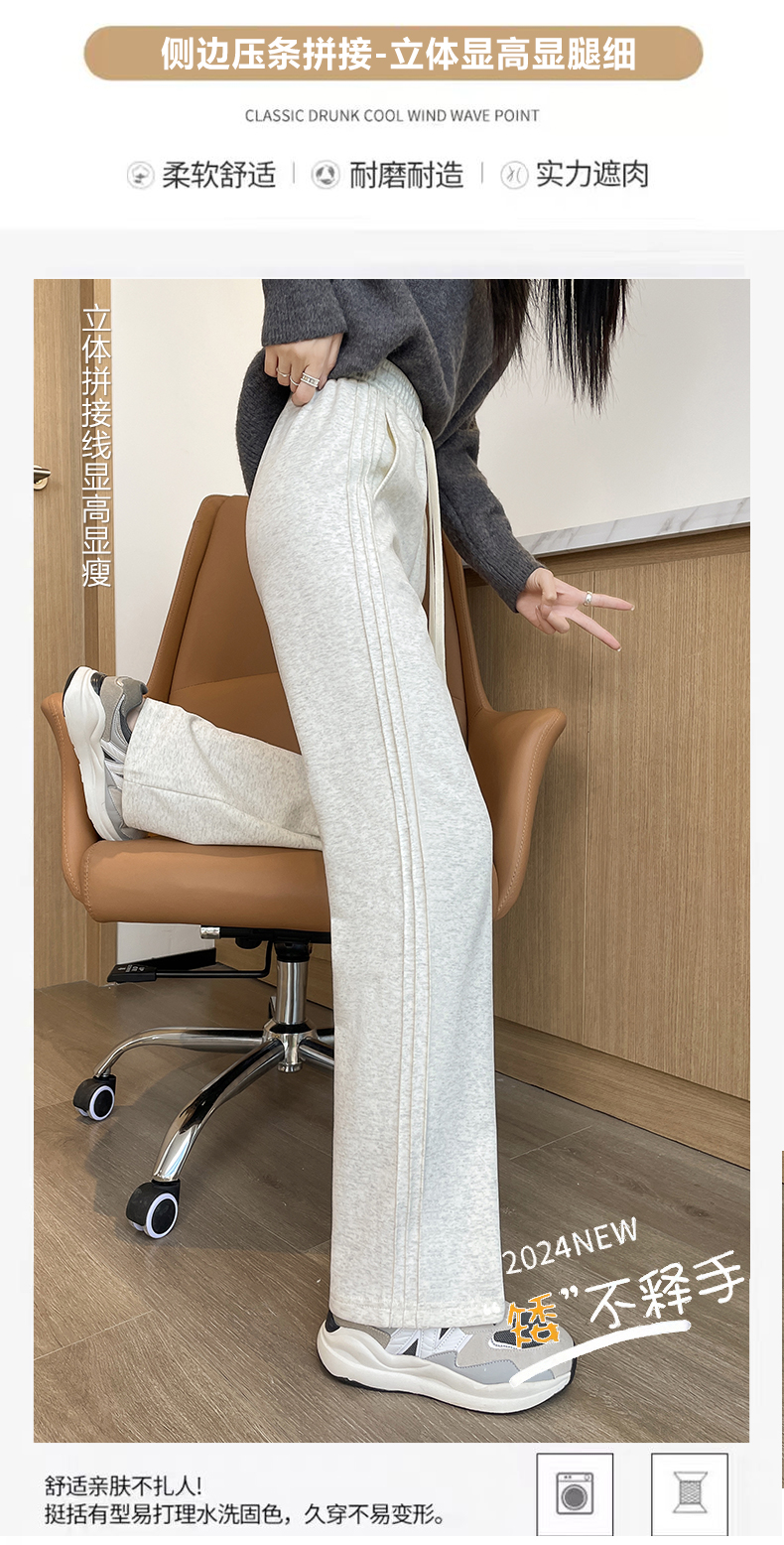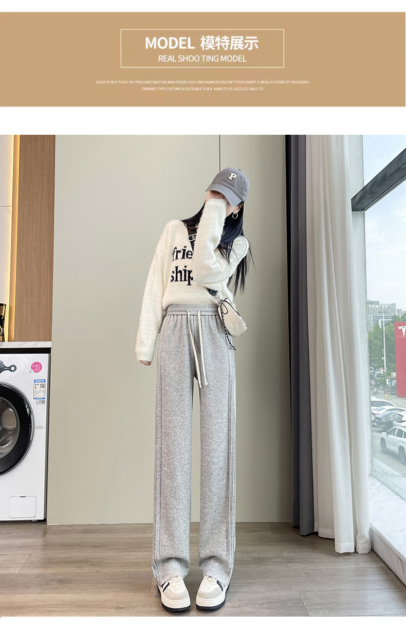 MY14555# 灰色运动裤秋冬款休闲裤子新款卫裤小个子加绒直筒裤阔腿裤女裝貨源服裝批發