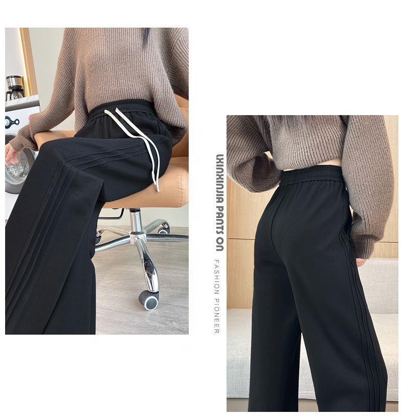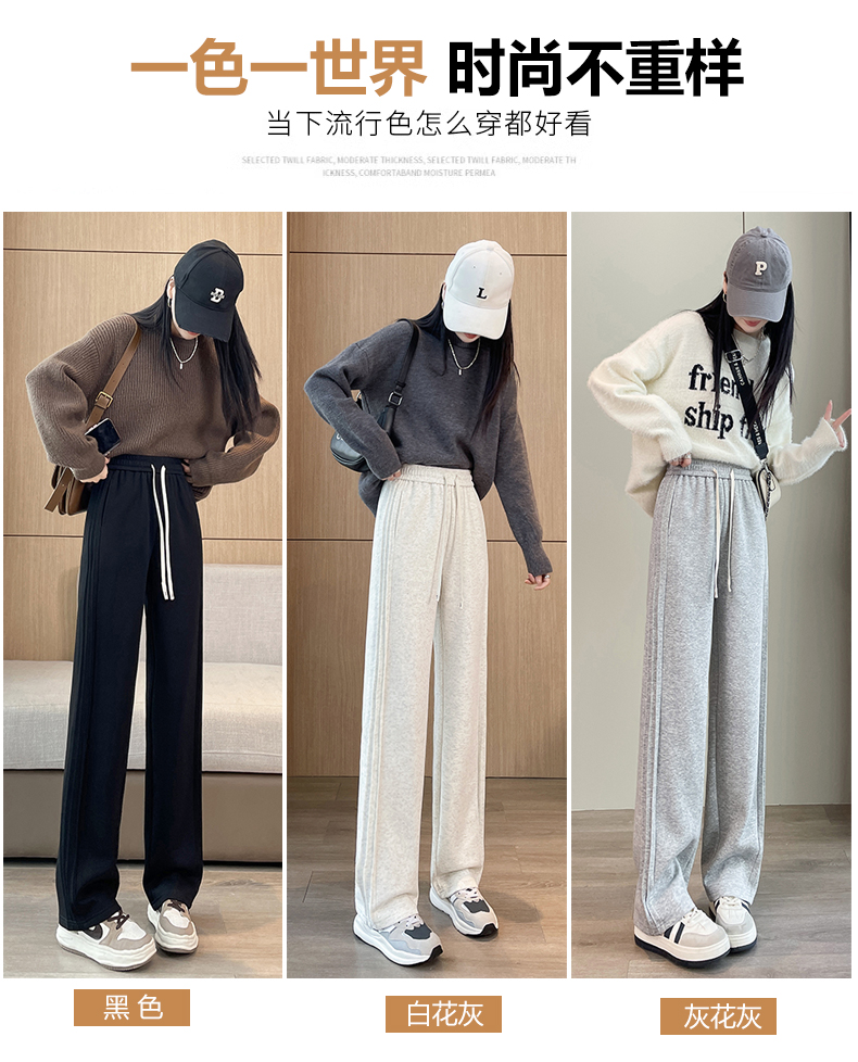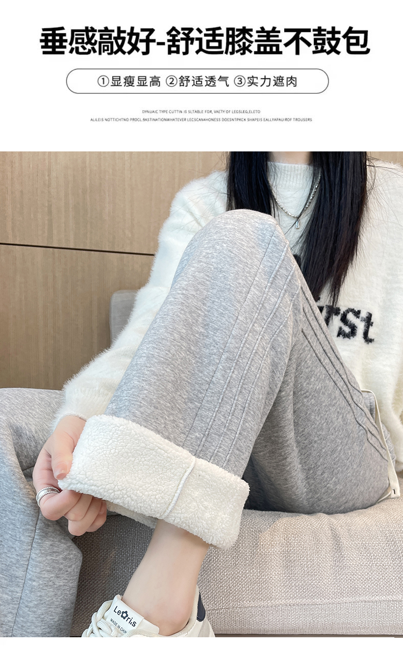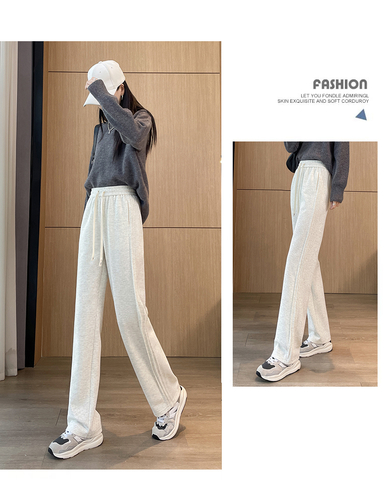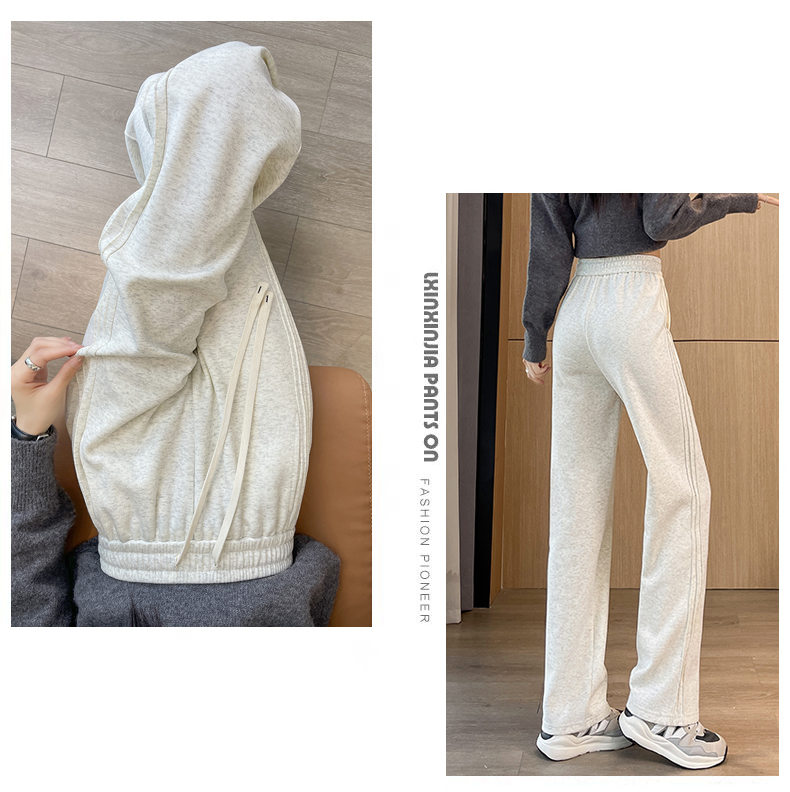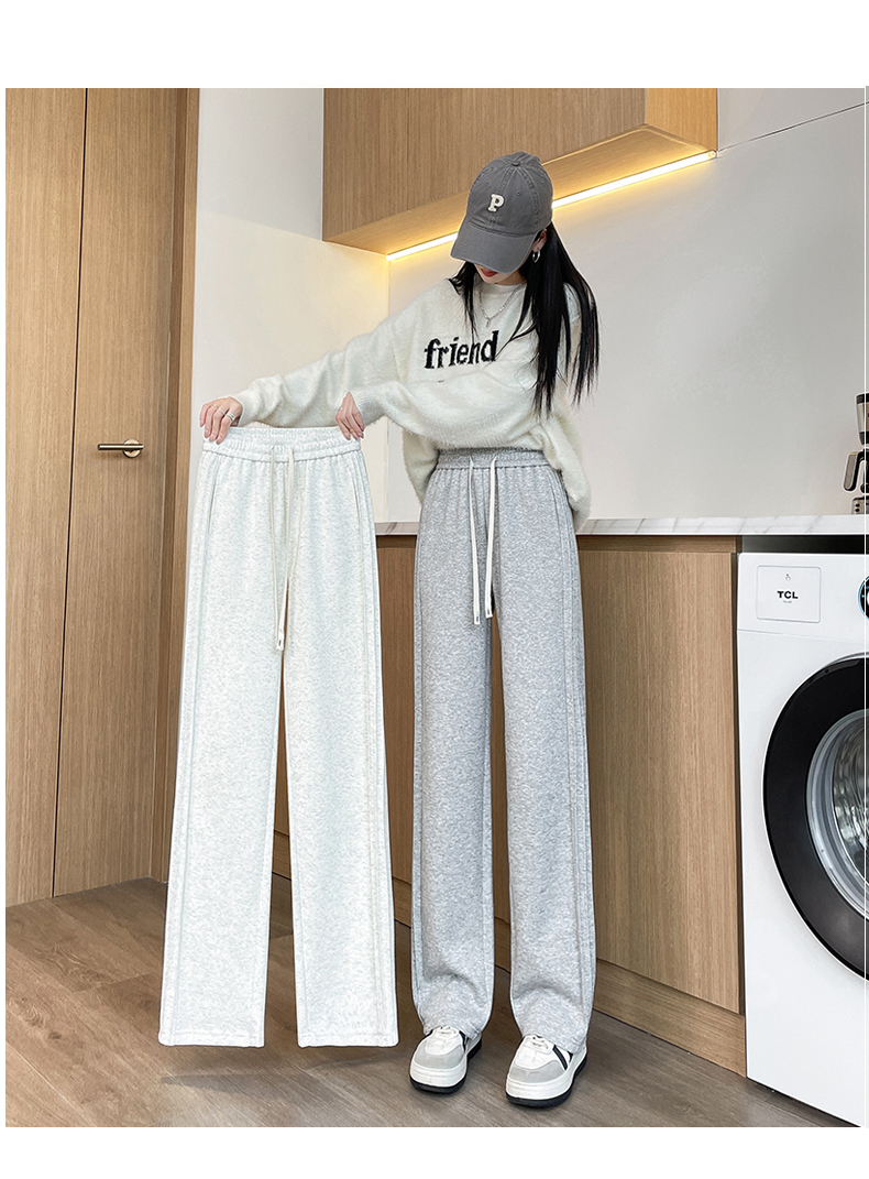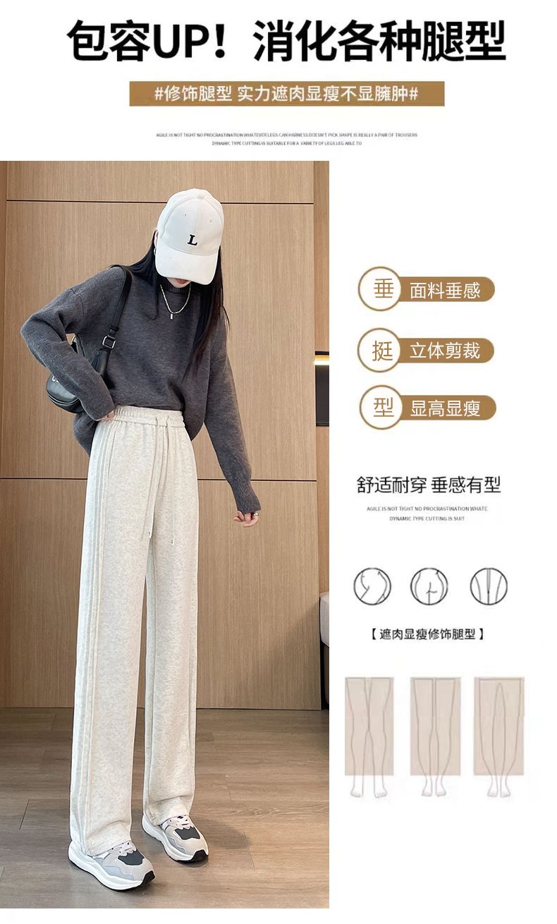 MY14555# 灰色运动裤秋冬款休闲裤子新款卫裤小个子加绒直筒裤阔腿裤女裝貨源服裝批發