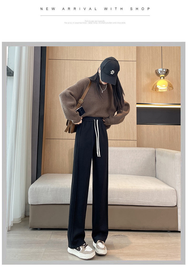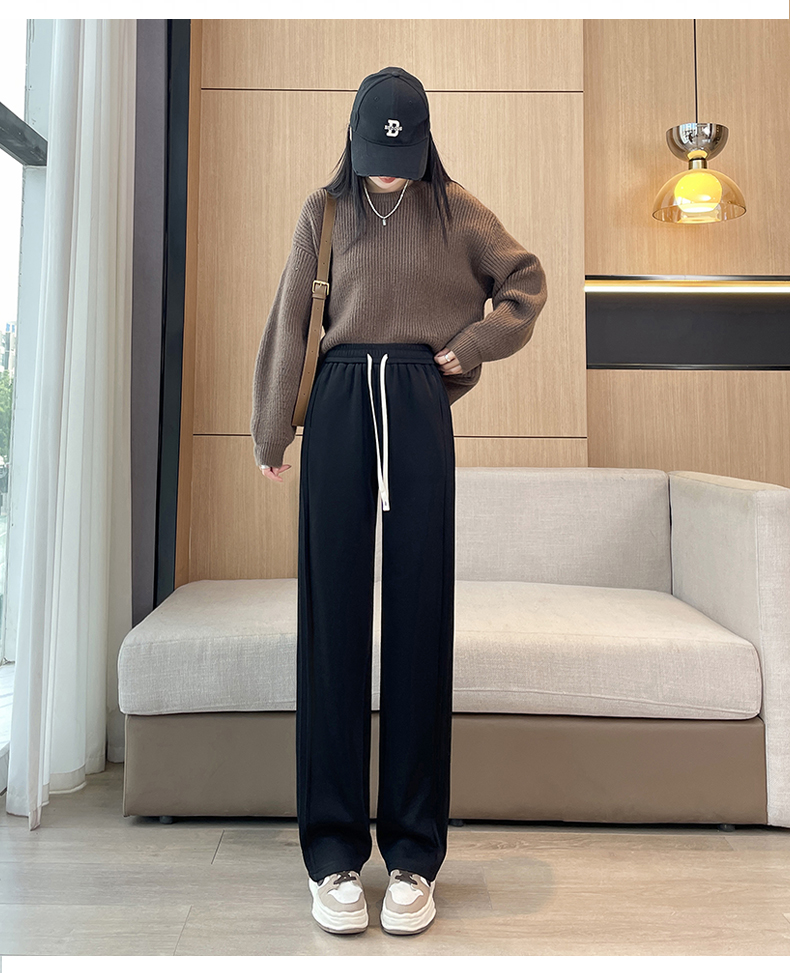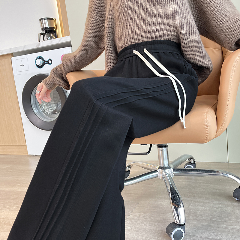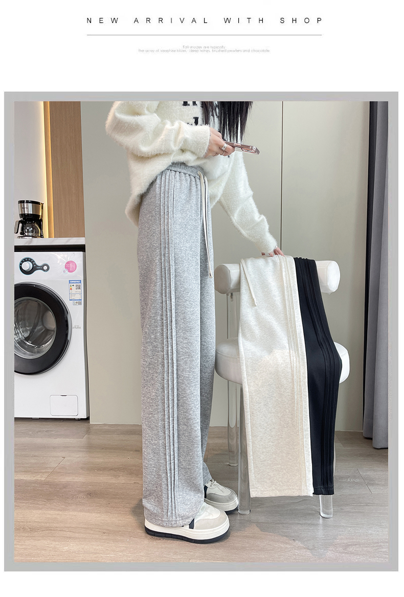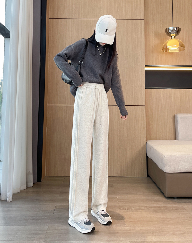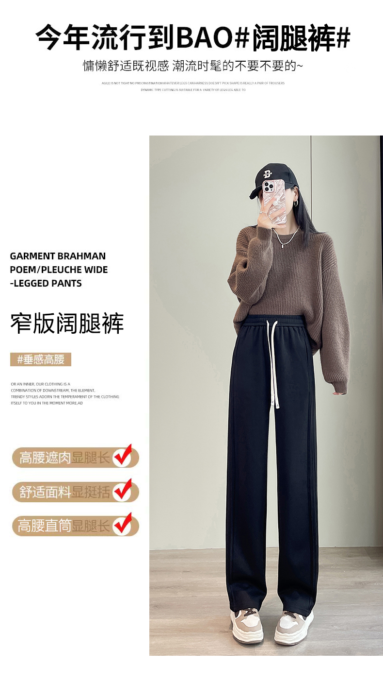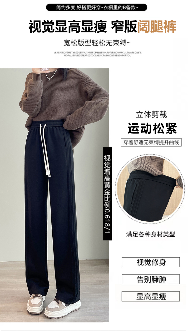 MY14555# 灰色运动裤秋冬款休闲裤子新款卫裤小个子加绒直筒裤阔腿裤女裝貨源服裝批發
