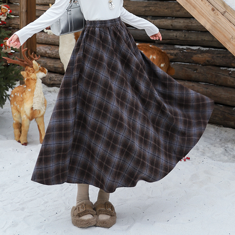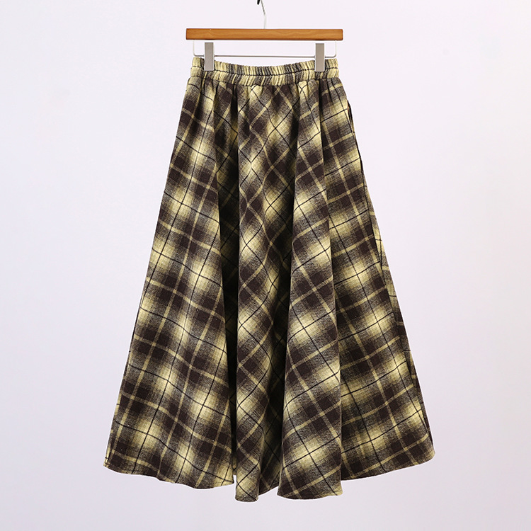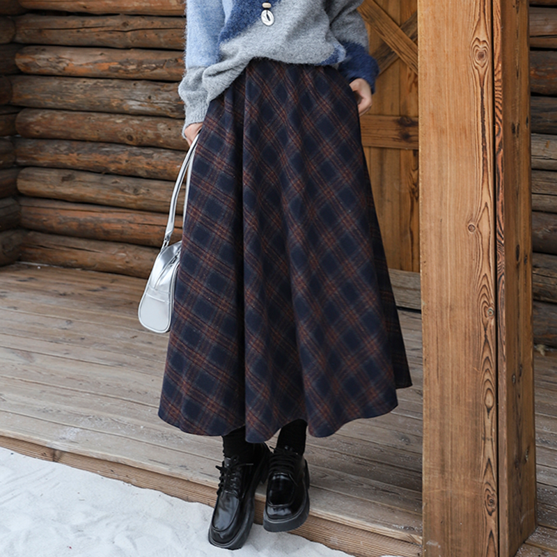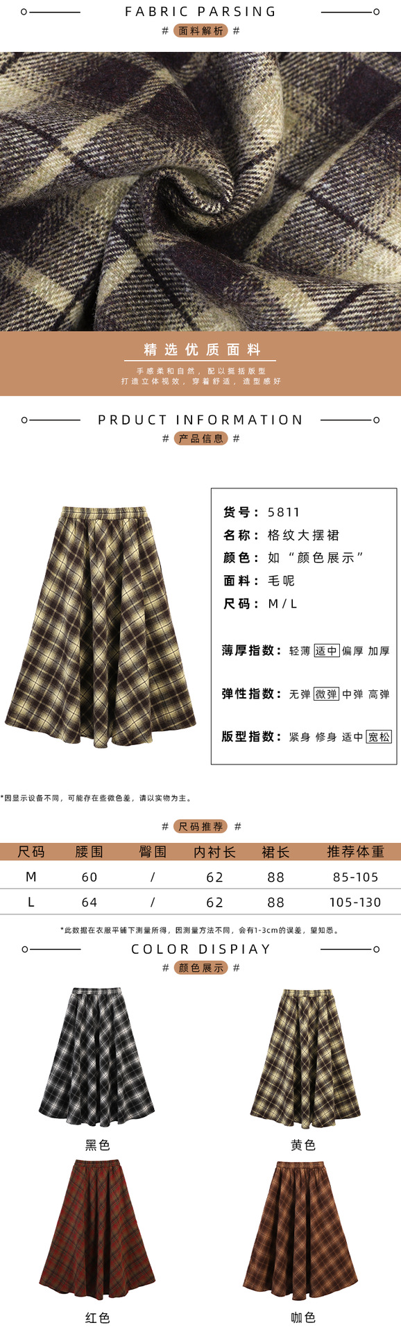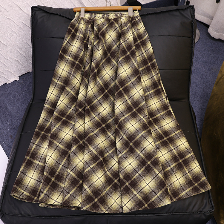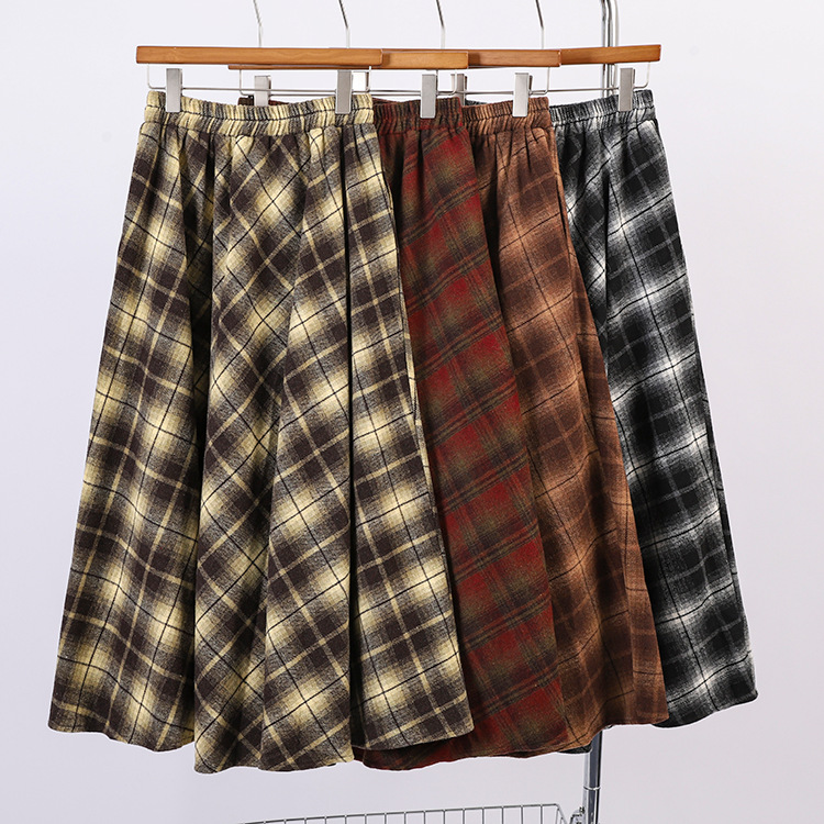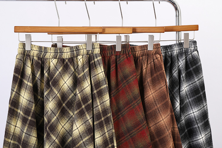 MY14568# 法式小众复古港风格子毛呢A字裙女秋冬 高腰显瘦垂感半身裙女裝貨源服裝批發