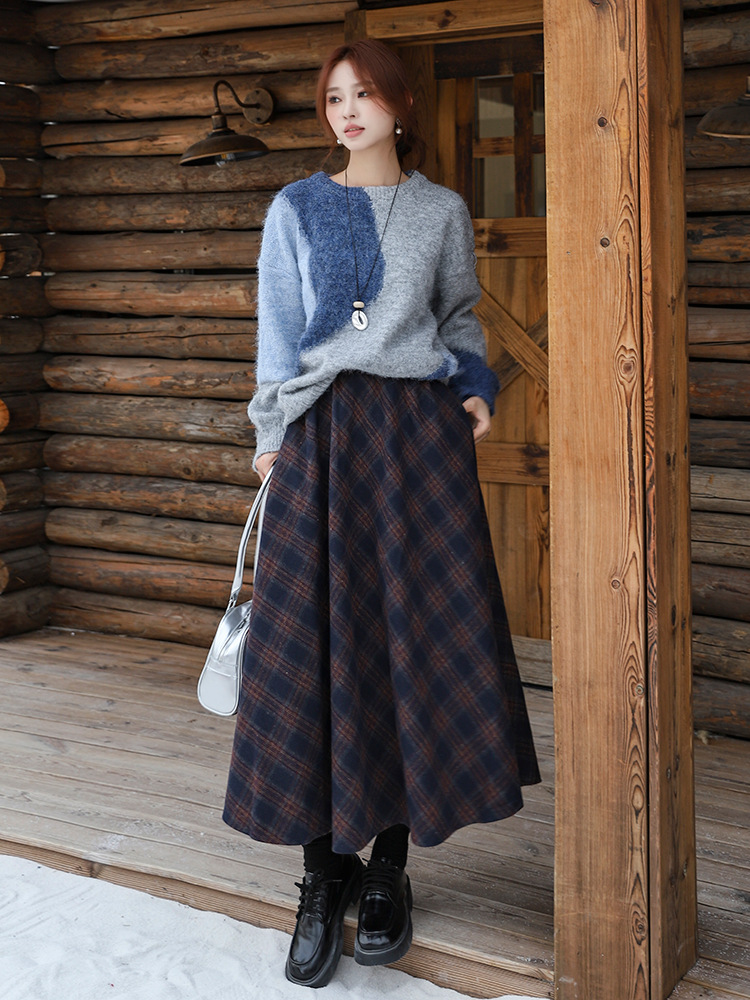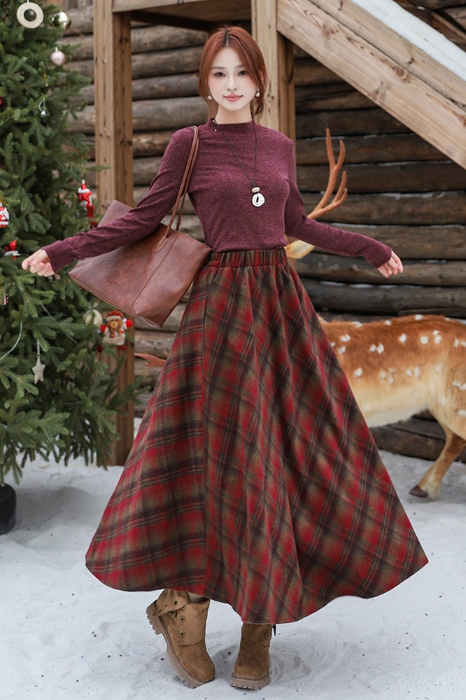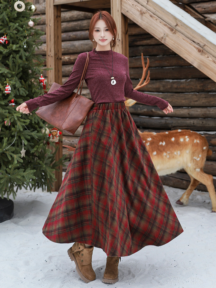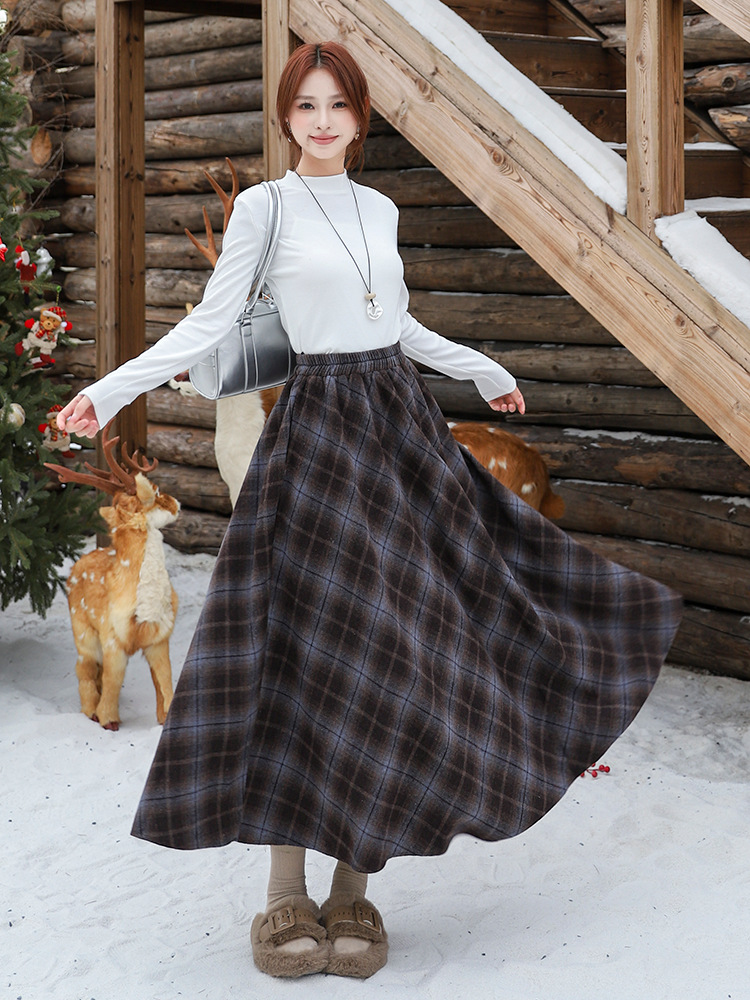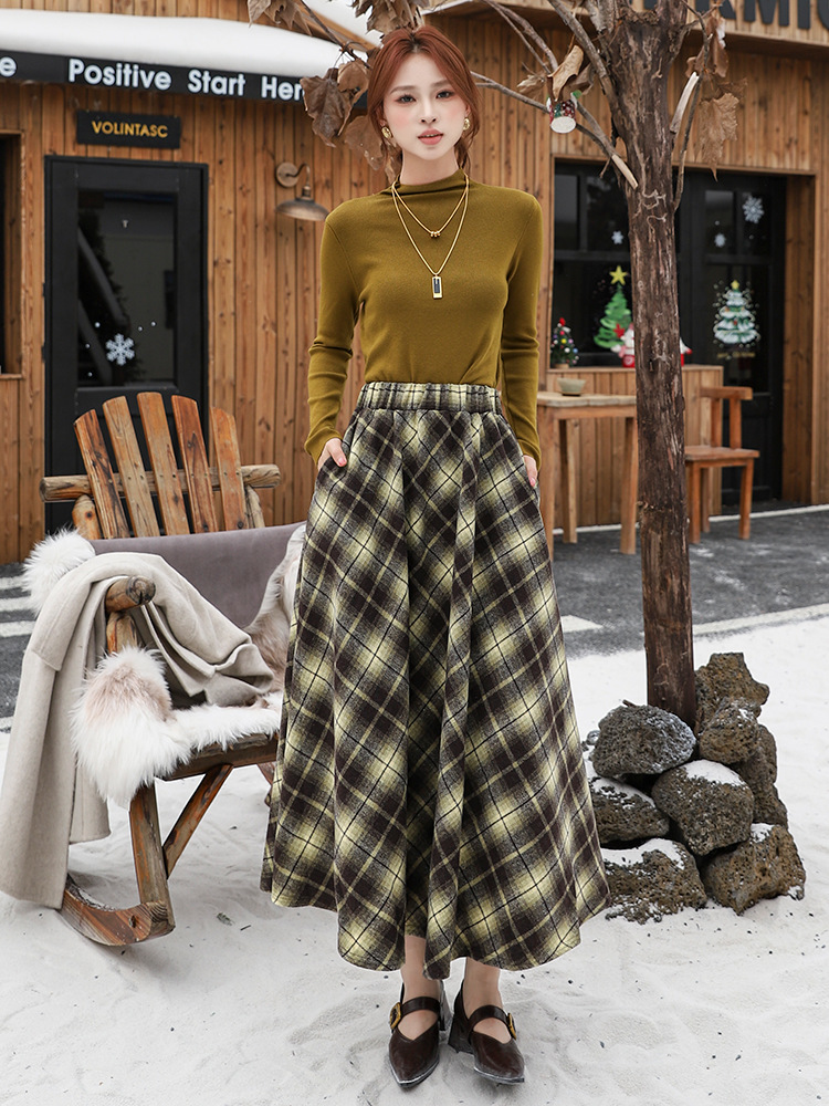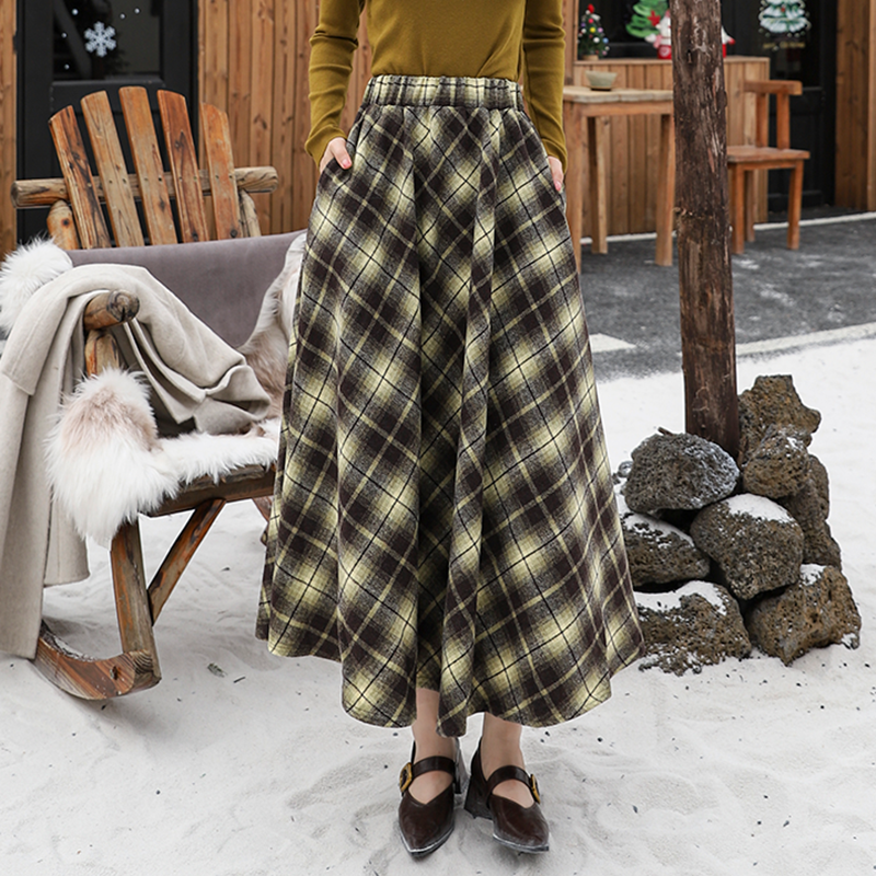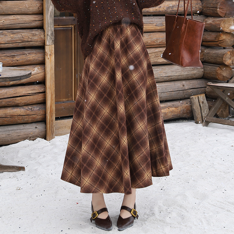 MY14568# 法式小众复古港风格子毛呢A字裙女秋冬 高腰显瘦垂感半身裙女裝貨源服裝批發