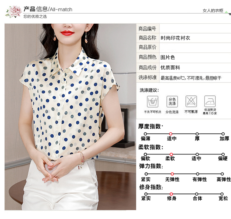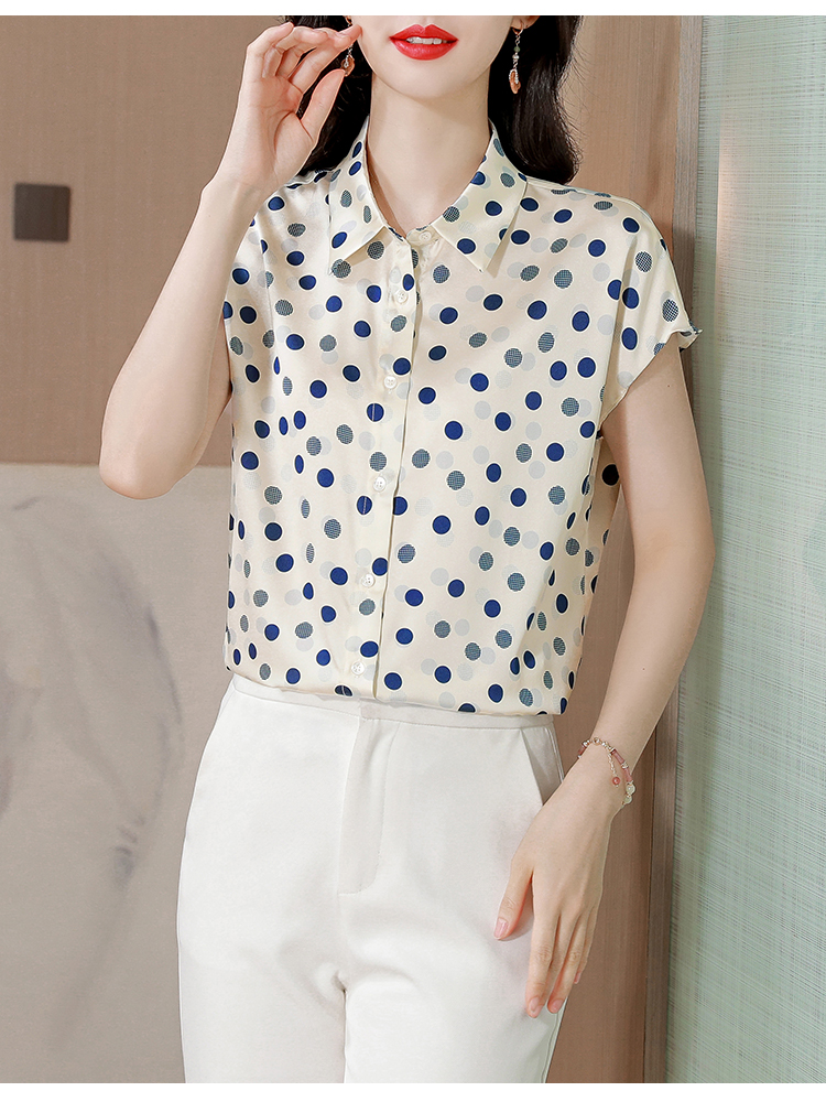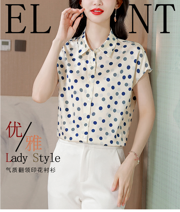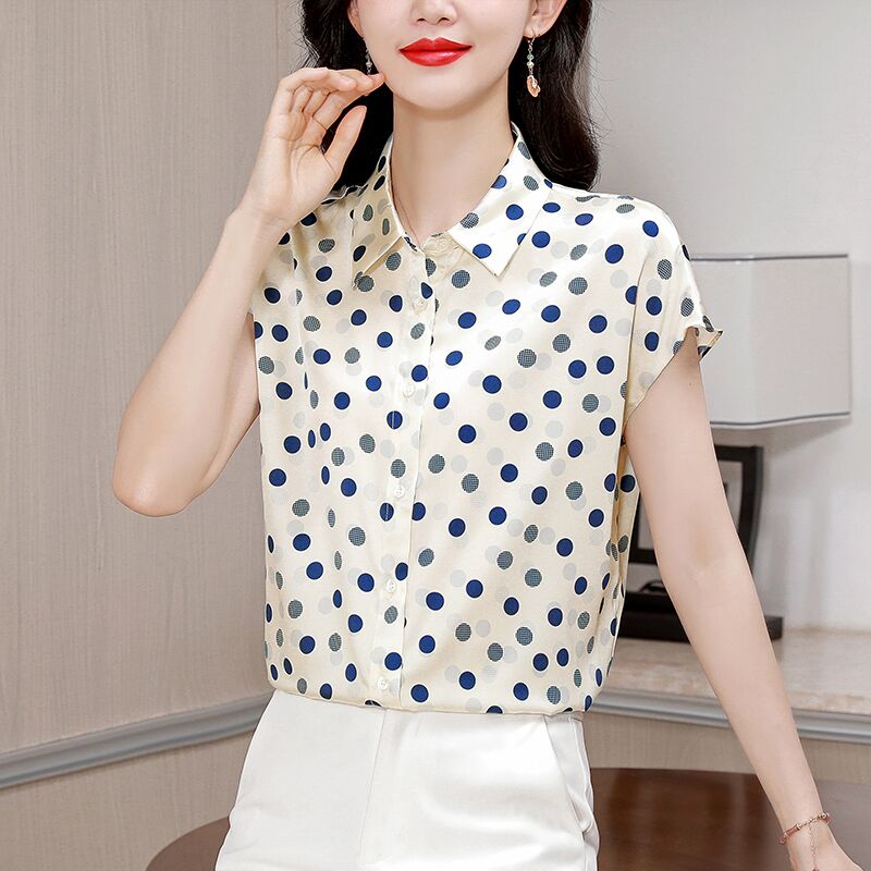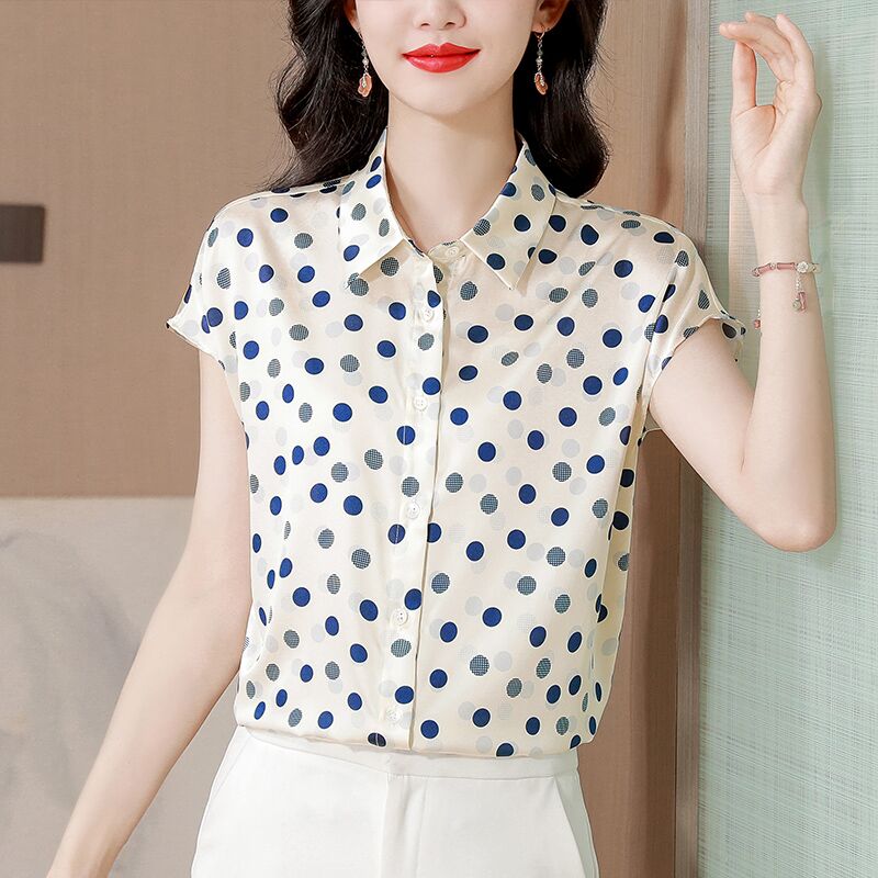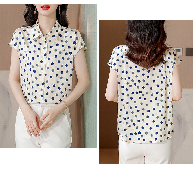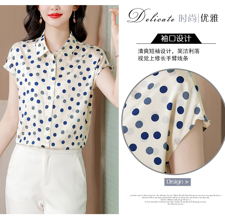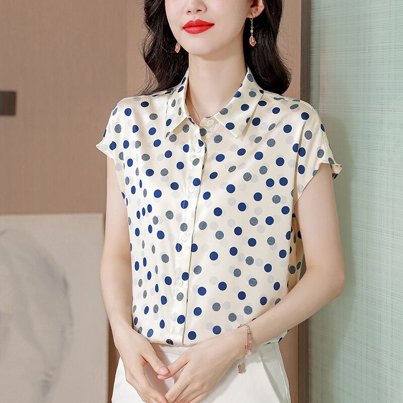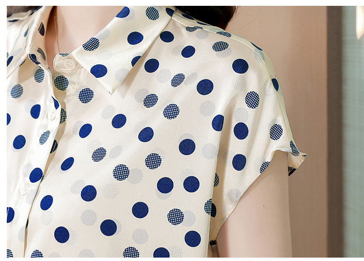 MY14575# 时尚圆点重磅真丝上衣女短袖夏装新款气质百搭桑蚕丝气质衬衫女裝貨源服裝批發