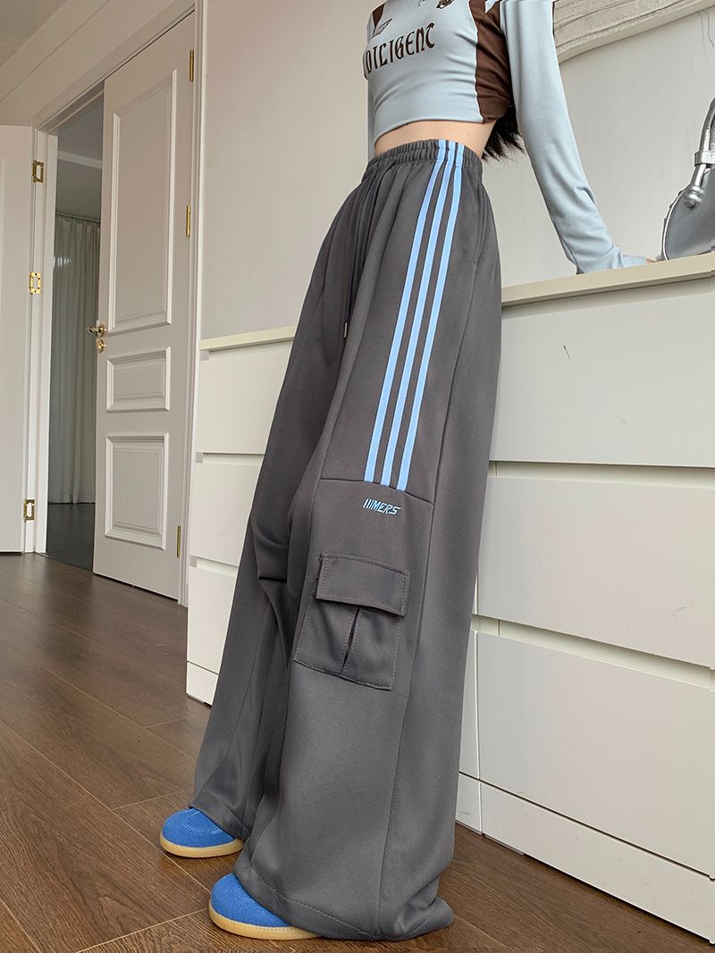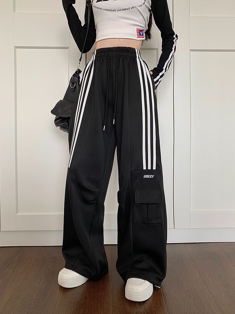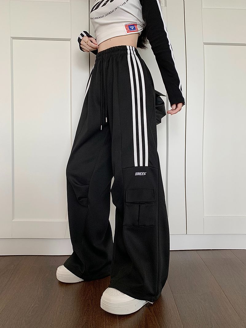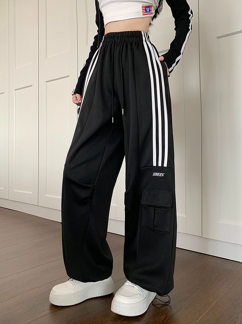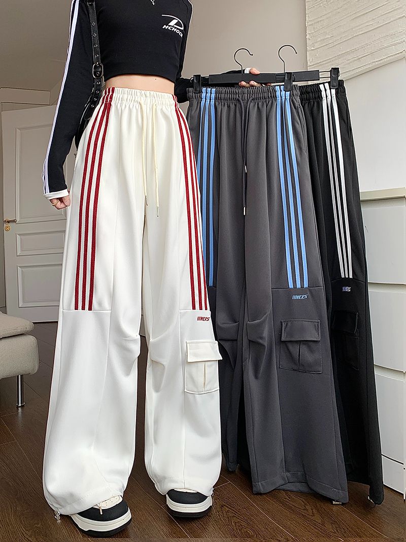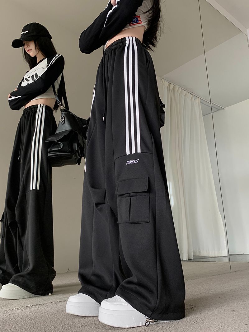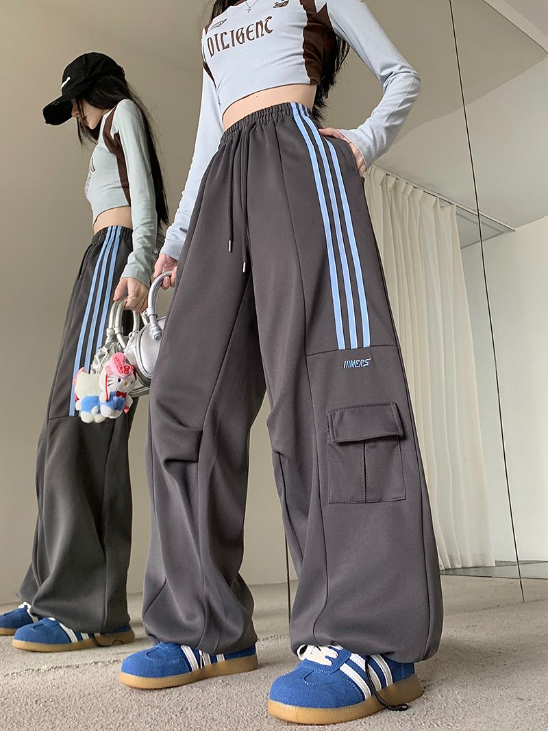 MY14965# 美式三条杠休闲运动裤男女多口袋阔腿工装卫裤女裝貨源服裝批發