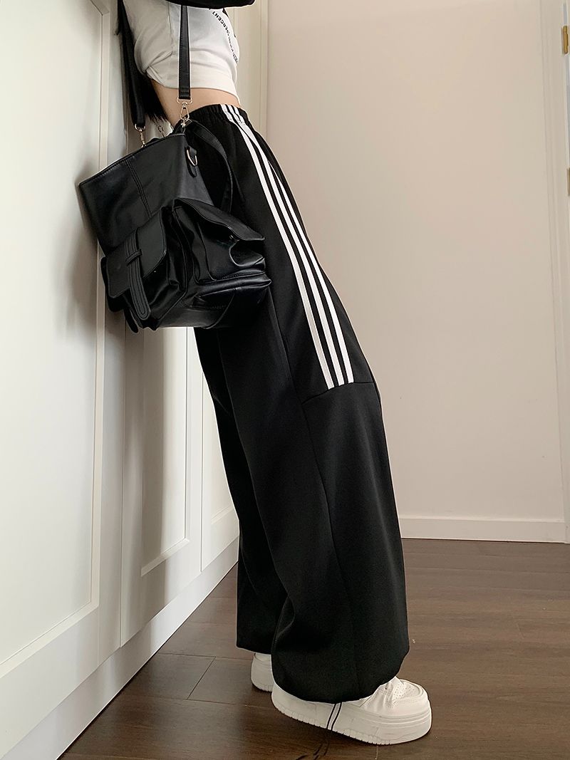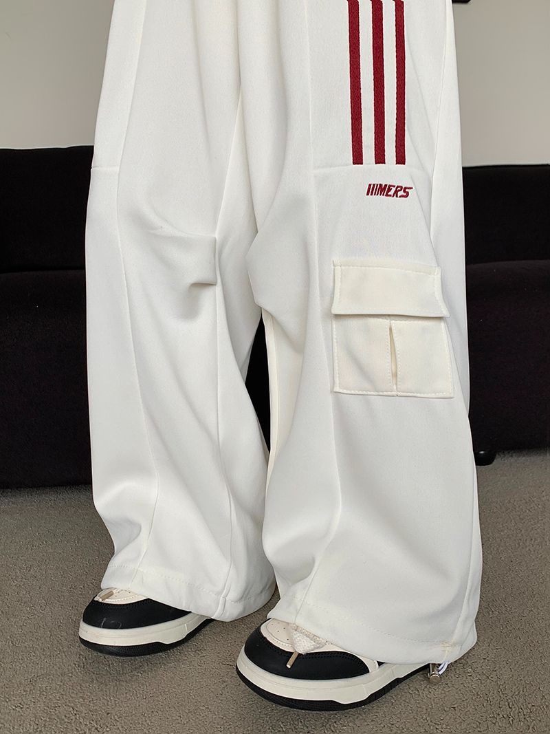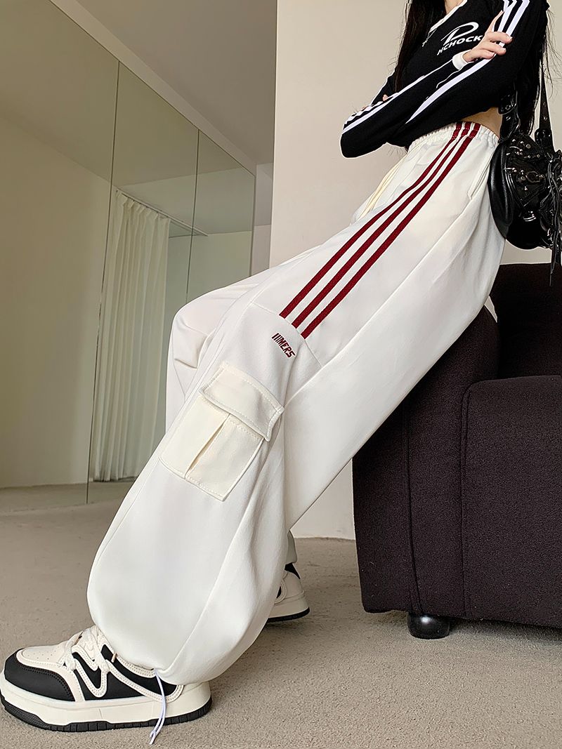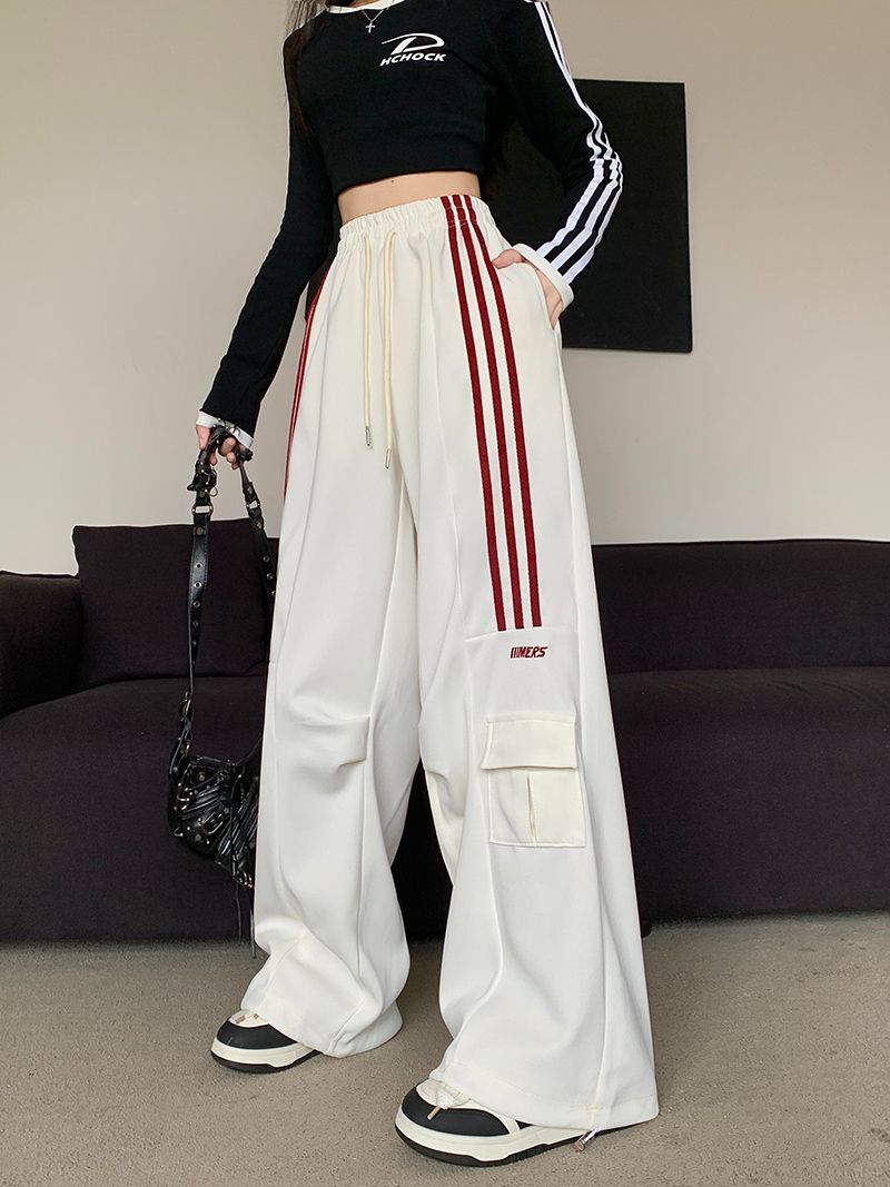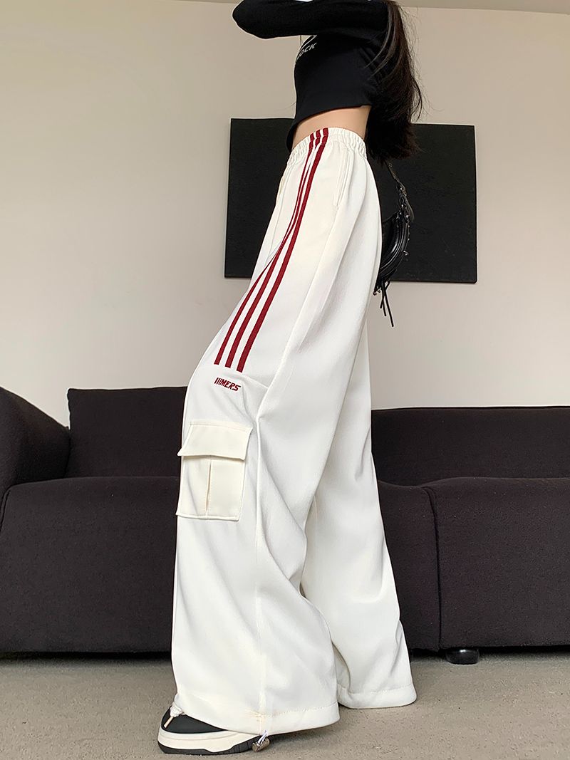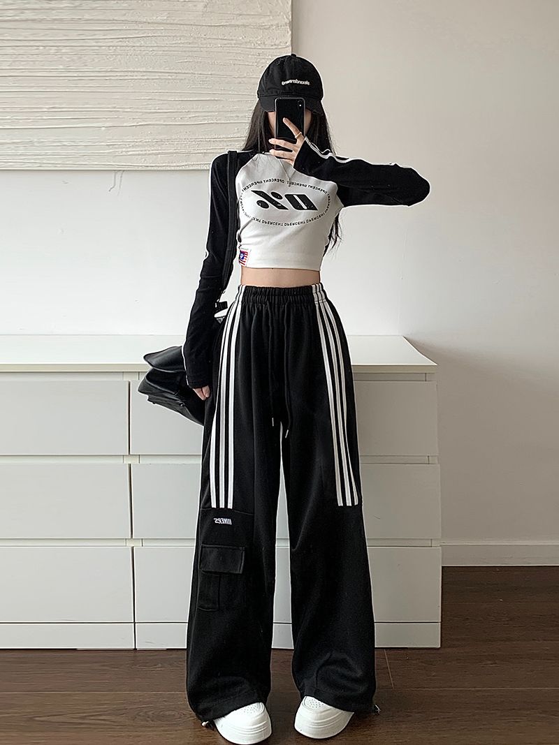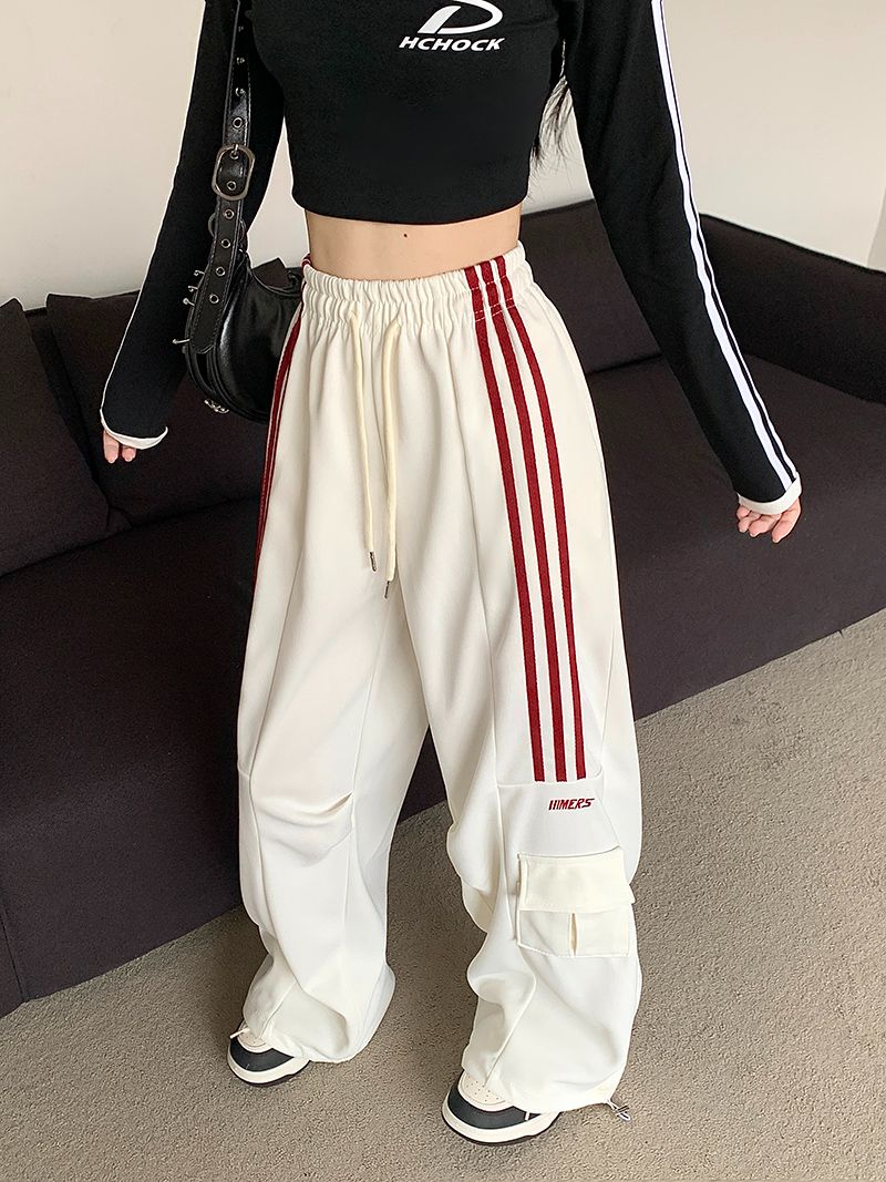 MY14965# 美式三条杠休闲运动裤男女多口袋阔腿工装卫裤女裝貨源服裝批發