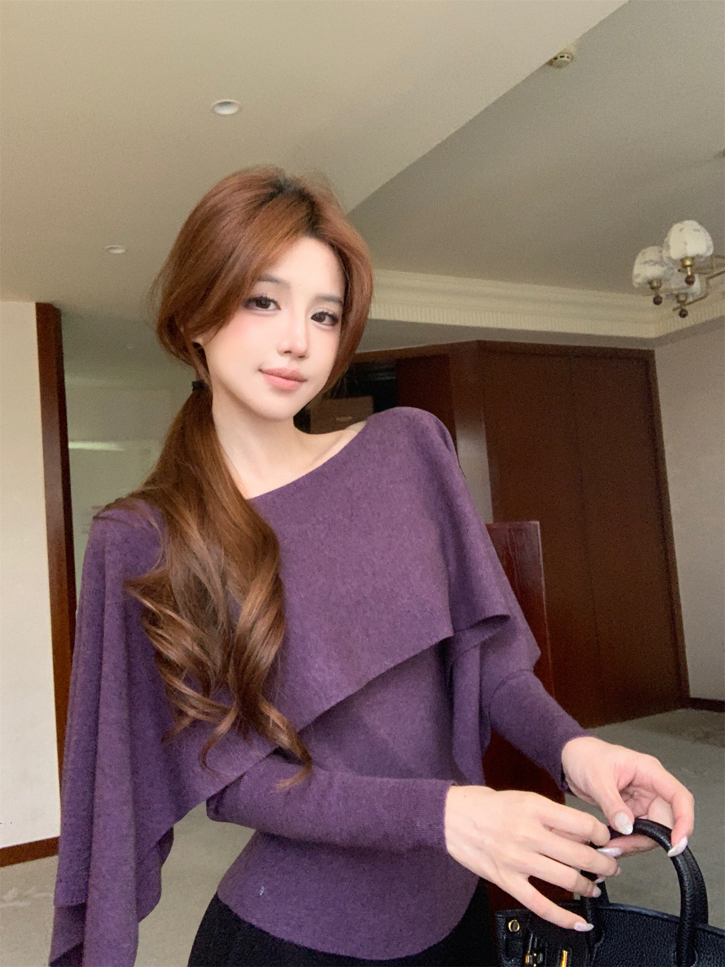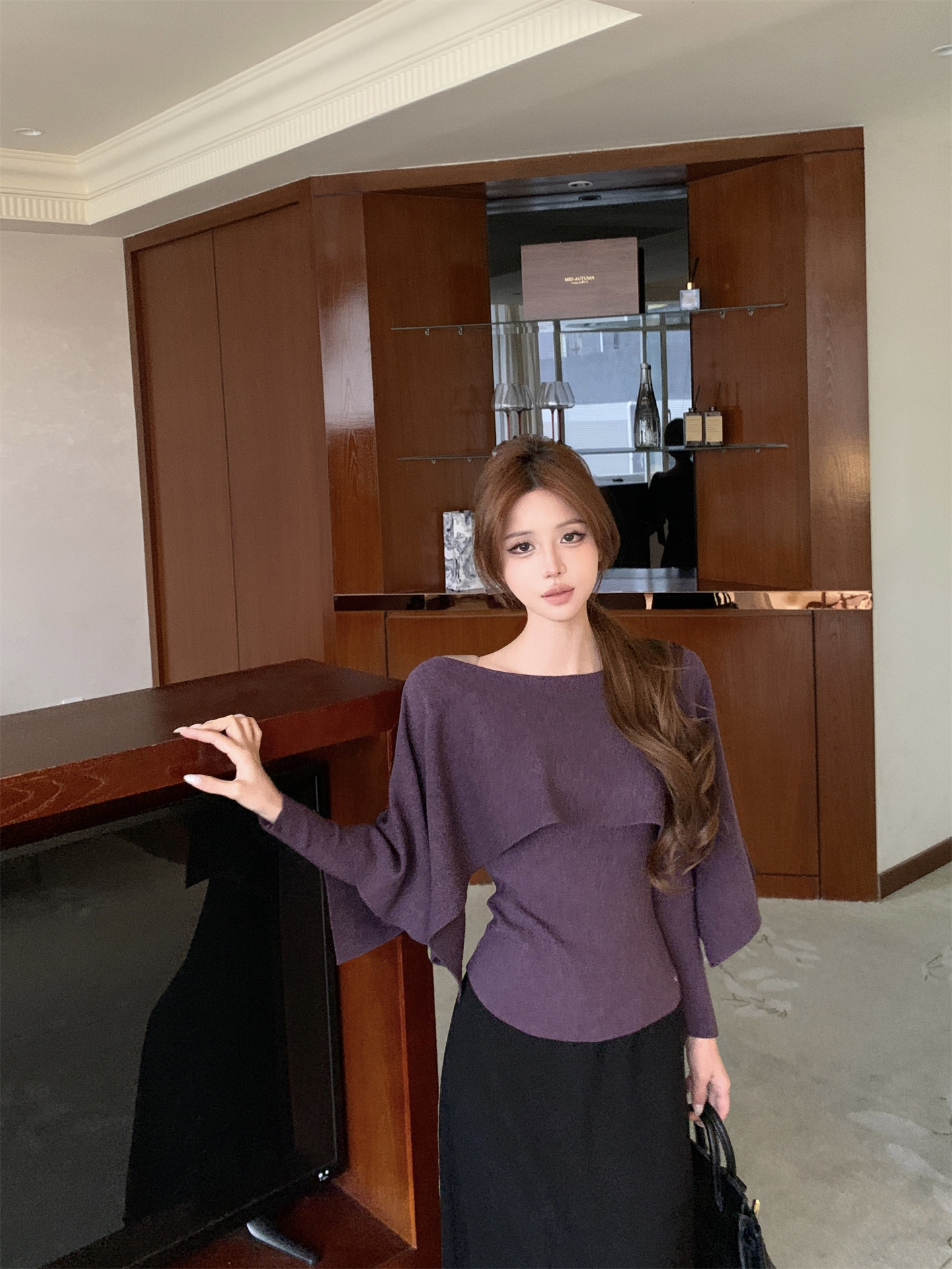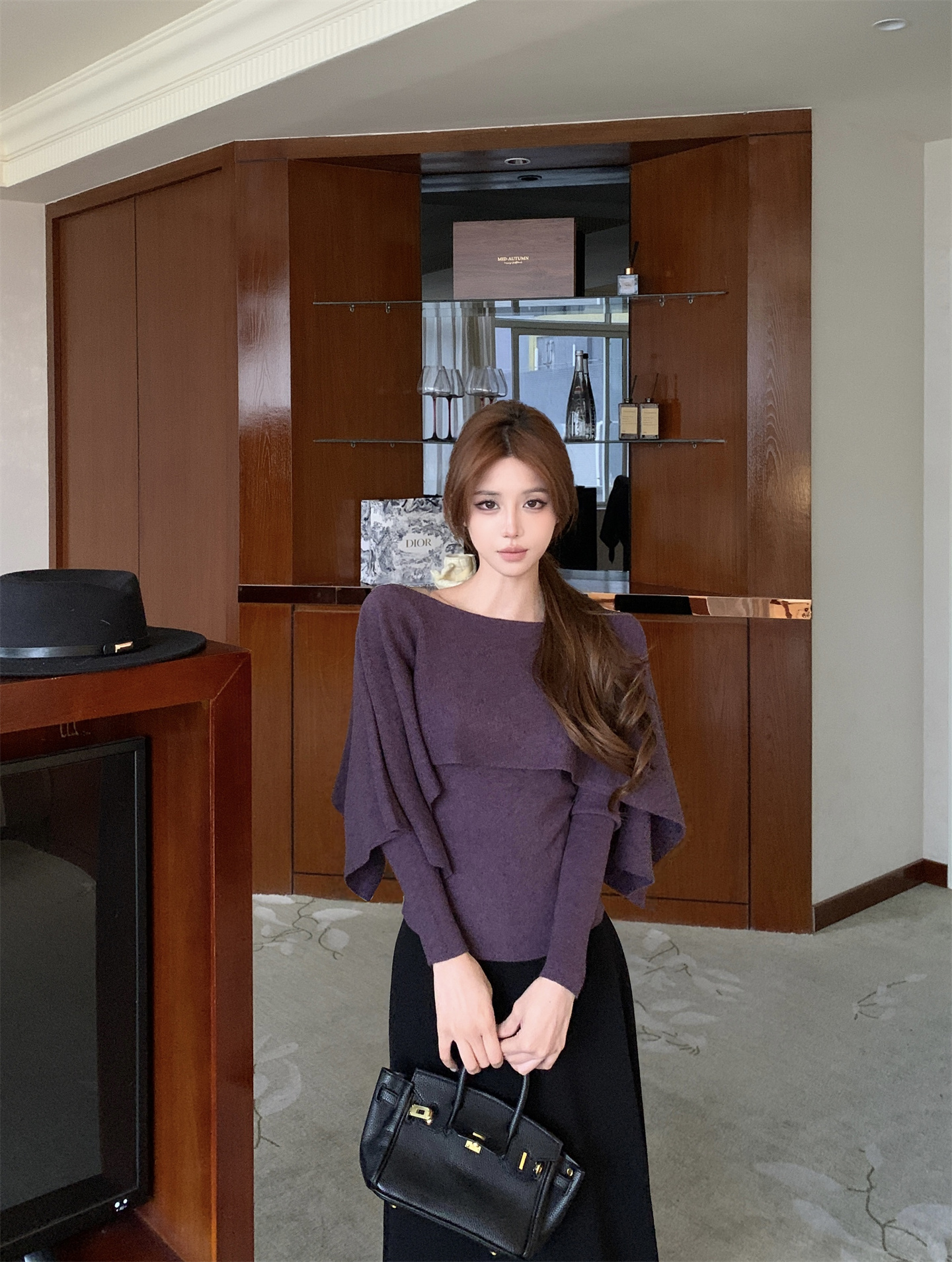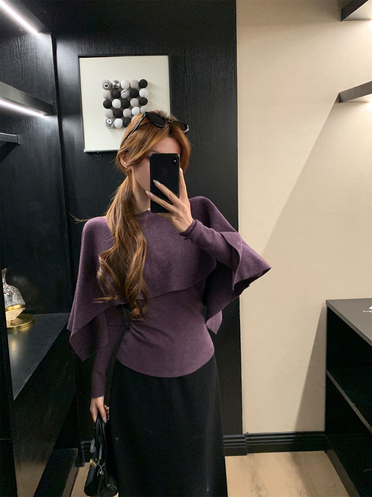 MY14970# 高级感千金斗篷披肩针织毛衣两件套+梨型身材遮肉长裙女裝貨源服裝批發