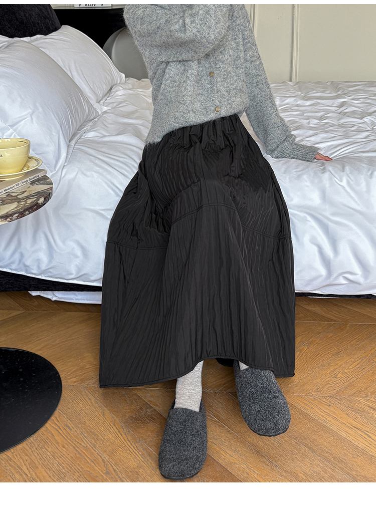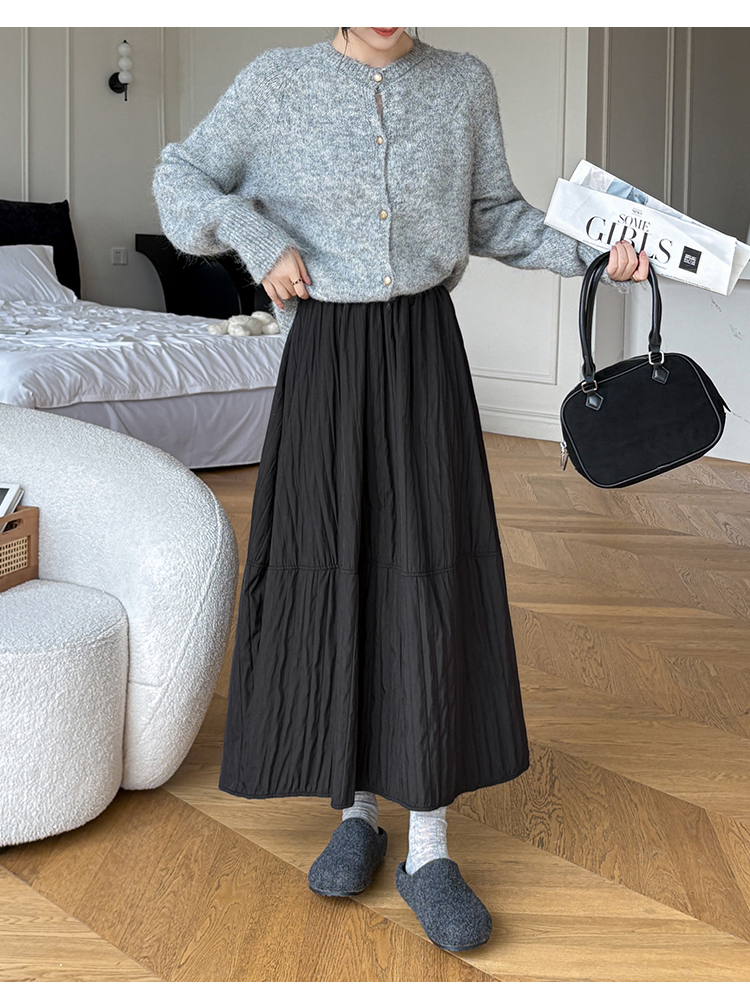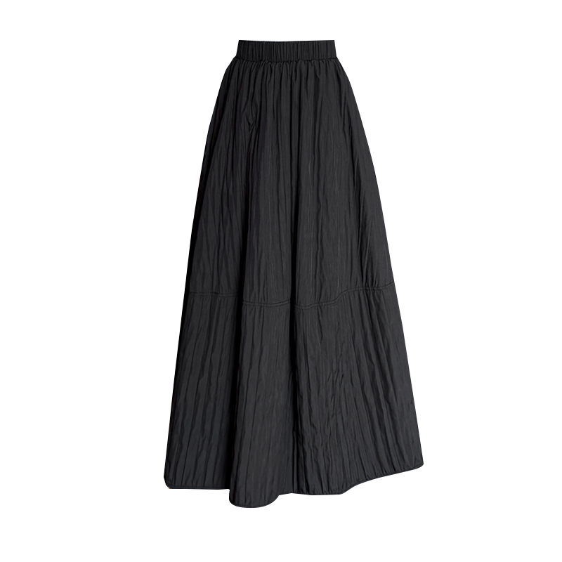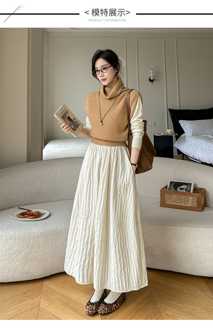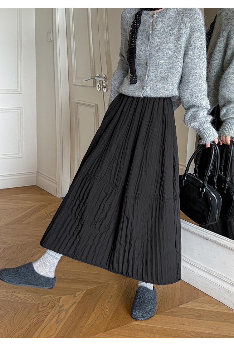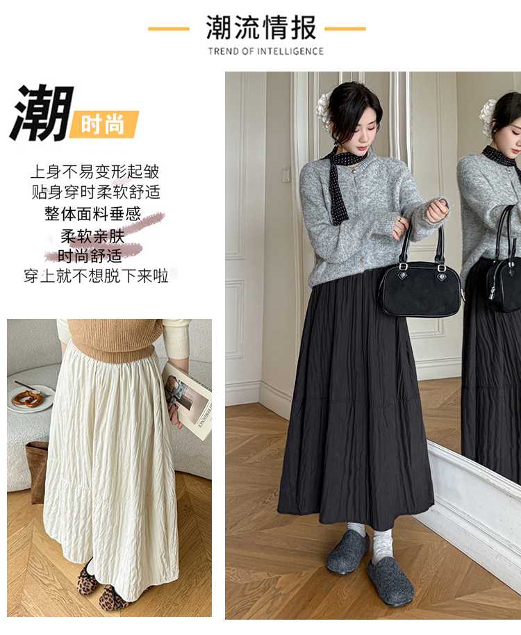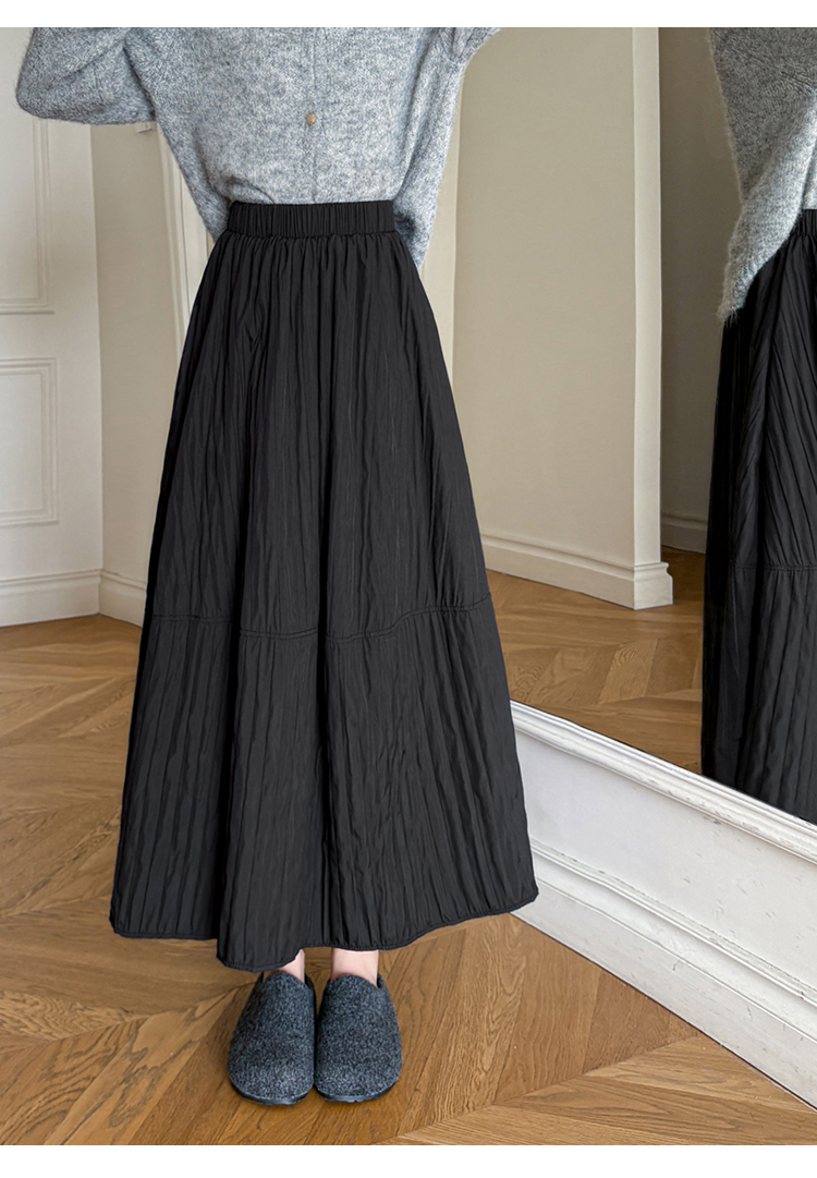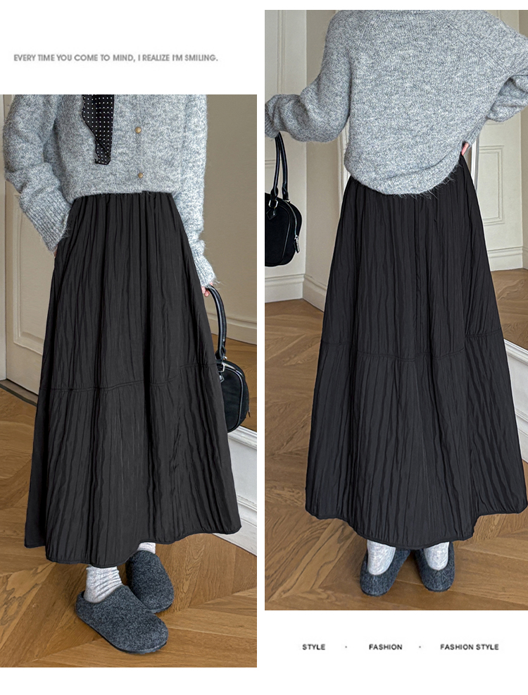 MY14991# 韩系新款白色夹棉工艺半身裙女松紧腰显瘦加绒中长裙口袋a字伞裙女裝貨源服裝批發