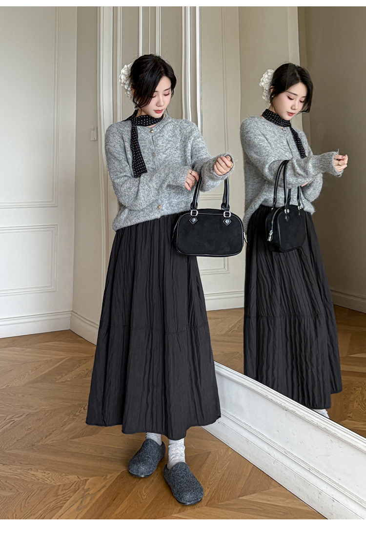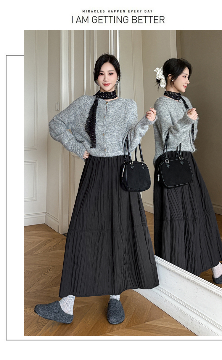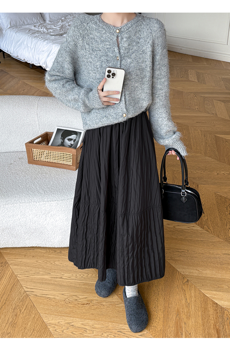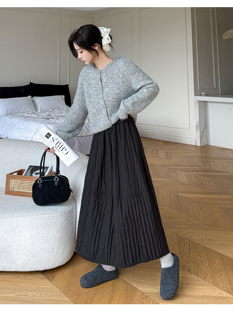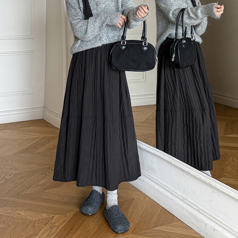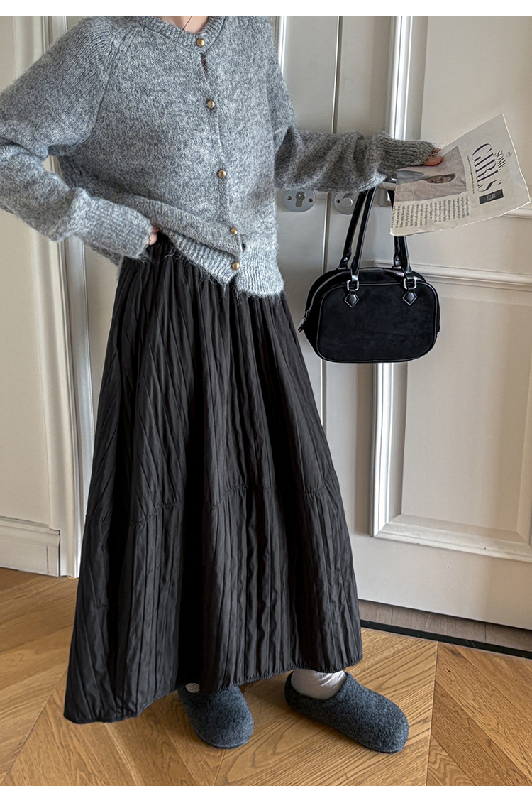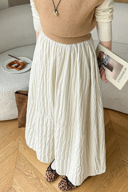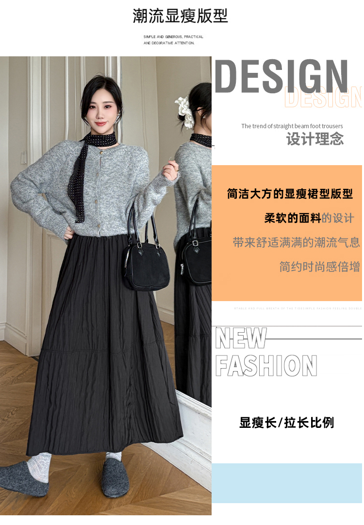 MY14991# 韩系新款白色夹棉工艺半身裙女松紧腰显瘦加绒中长裙口袋a字伞裙女裝貨源服裝批發