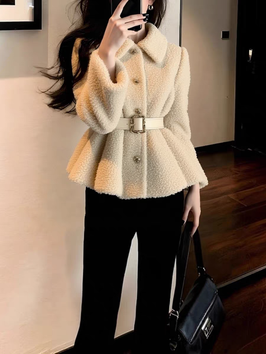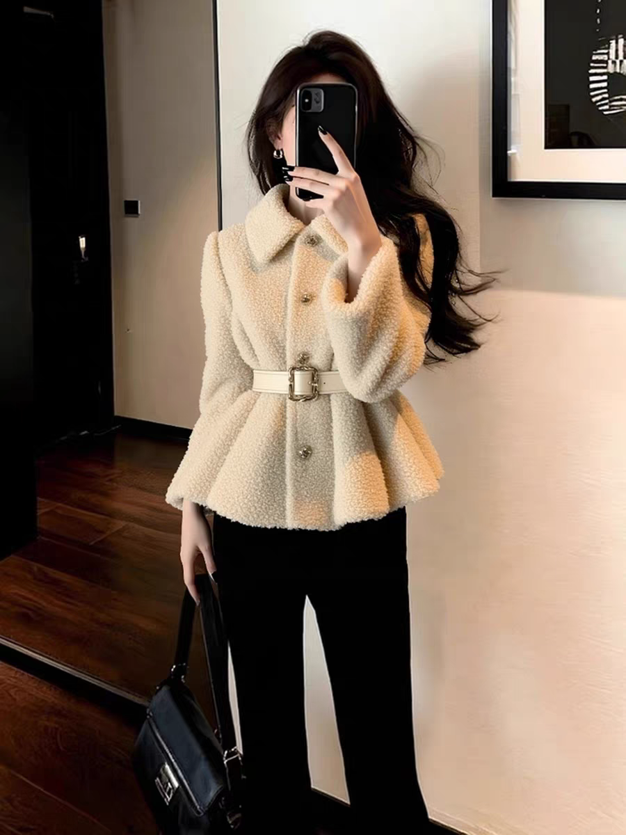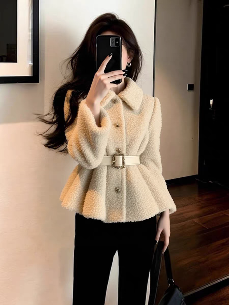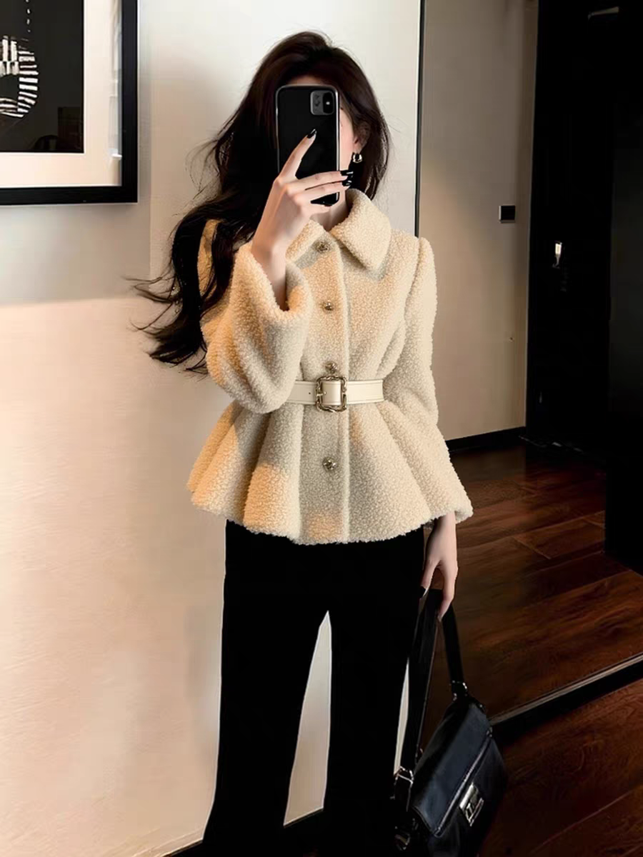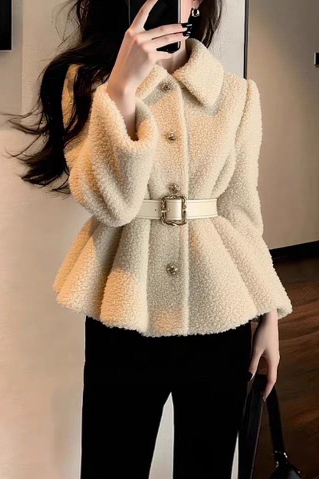 MY15008# 卡其色毛毛外套新款冬时髦洋气高端气质保暖小香风上衣厚女裝貨源服裝批發
