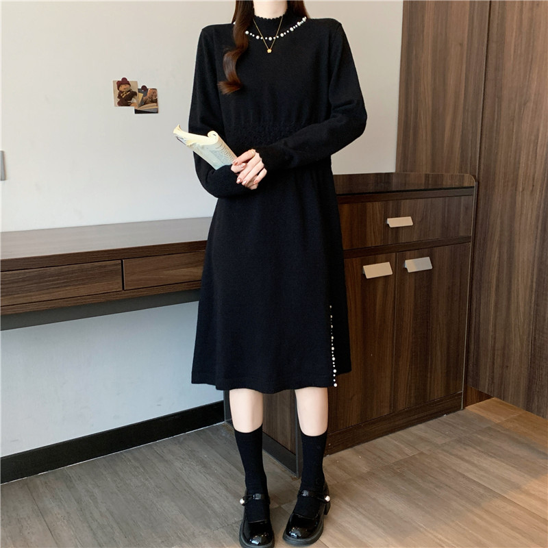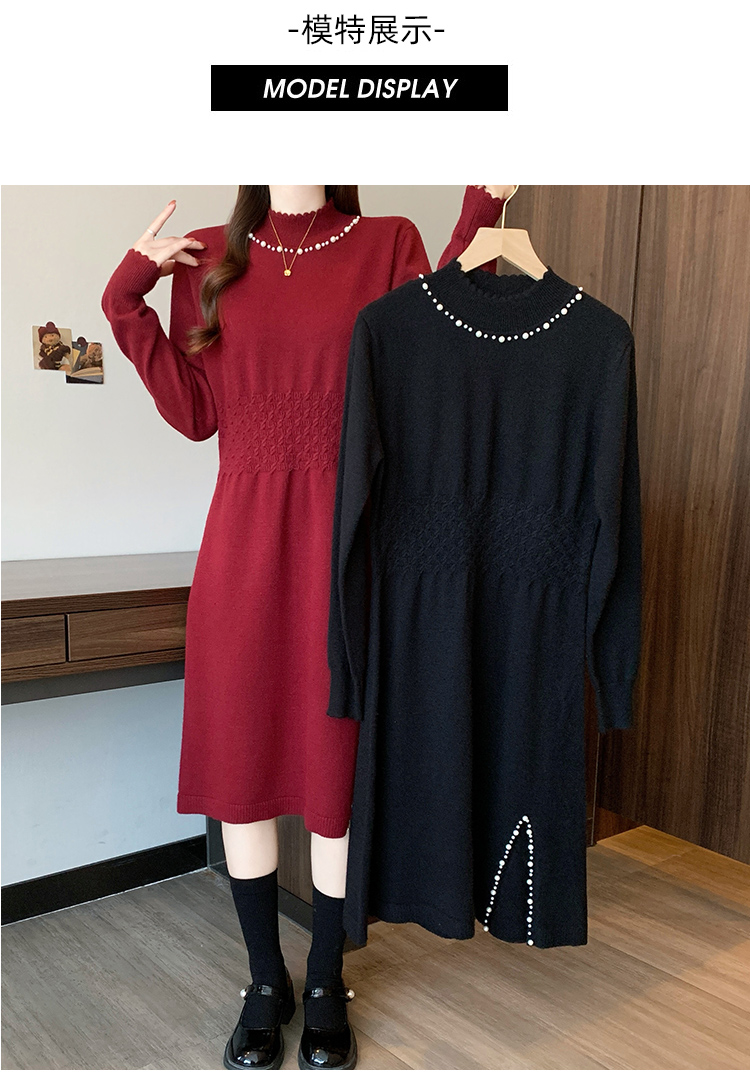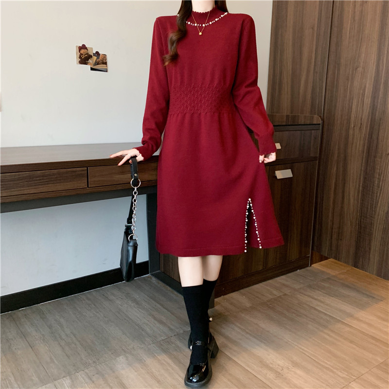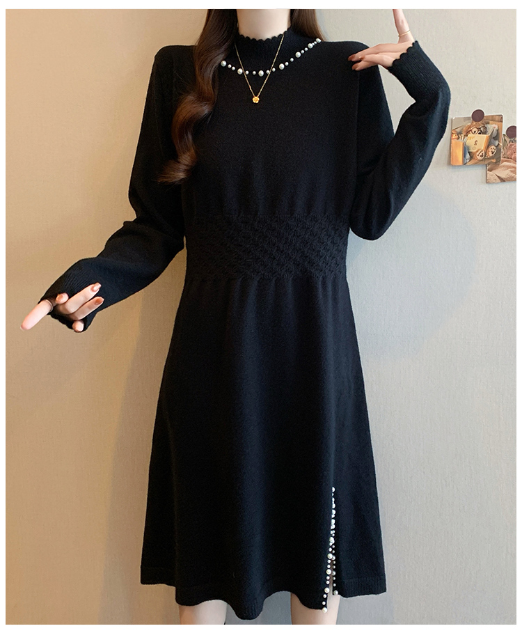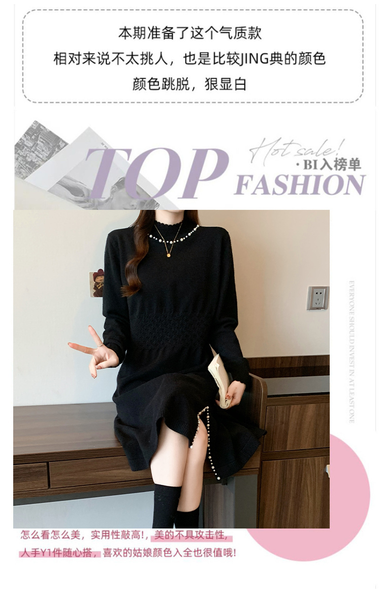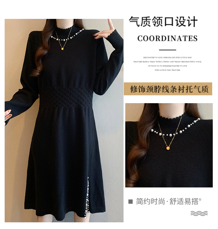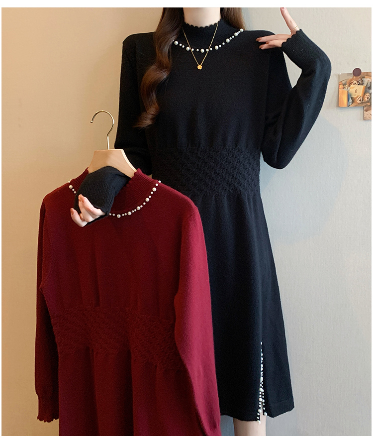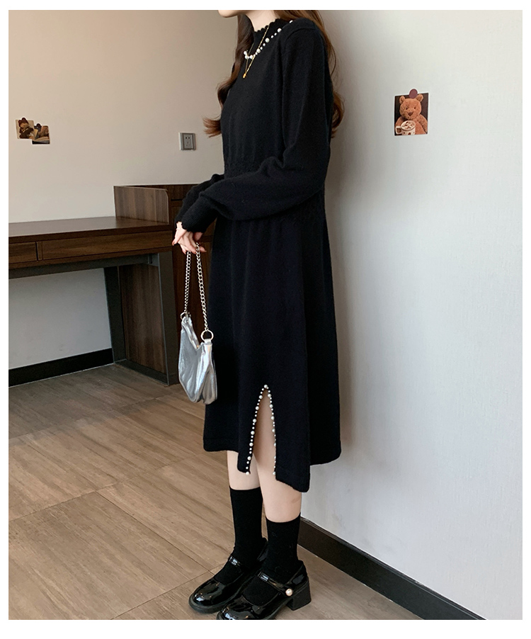 MY15038# 新款大码女装胖mm中长款针织钉珠A字打底开叉连衣裙女裝貨源服裝批發