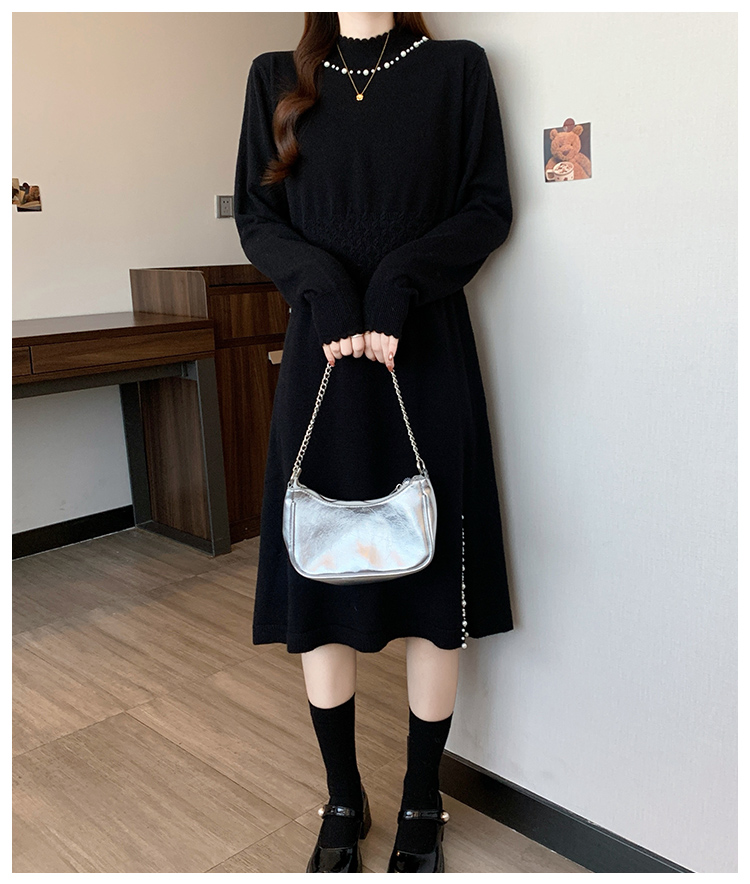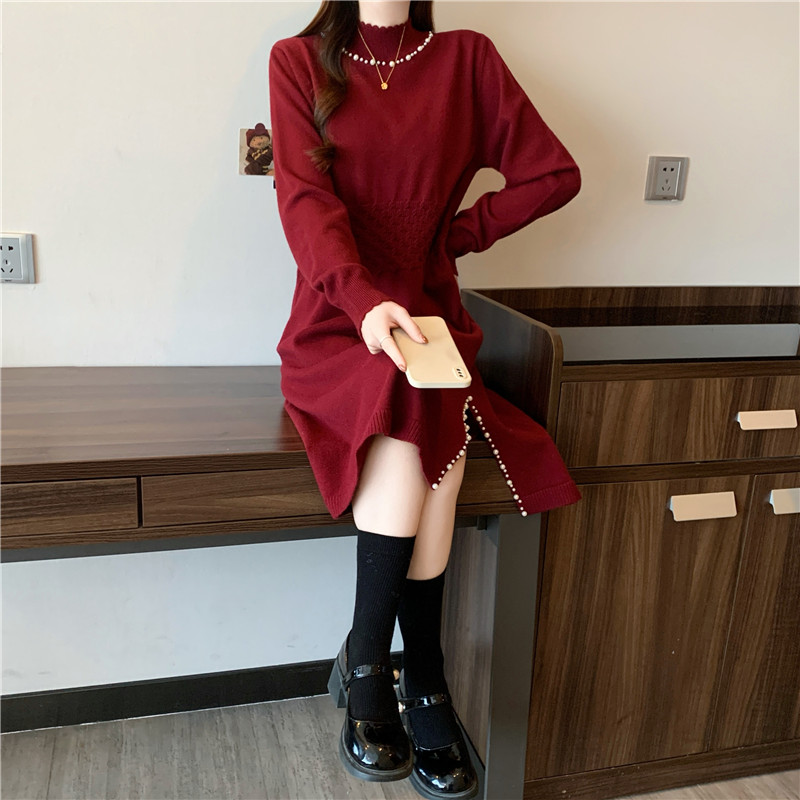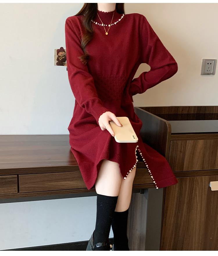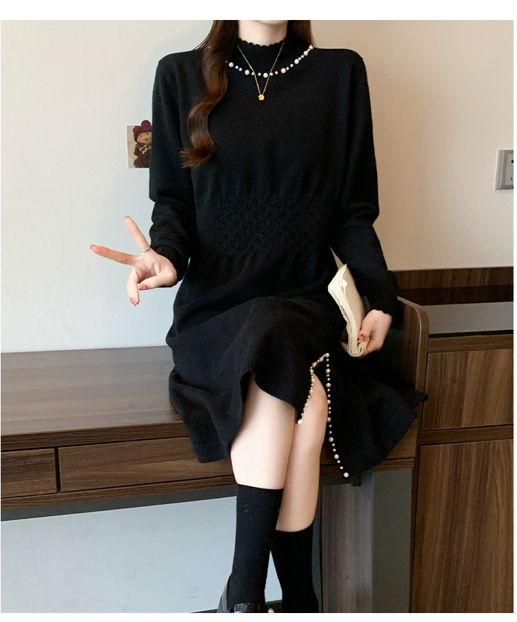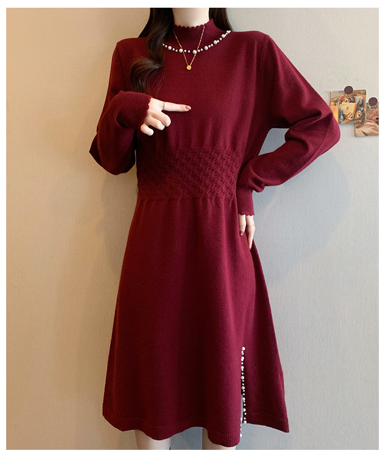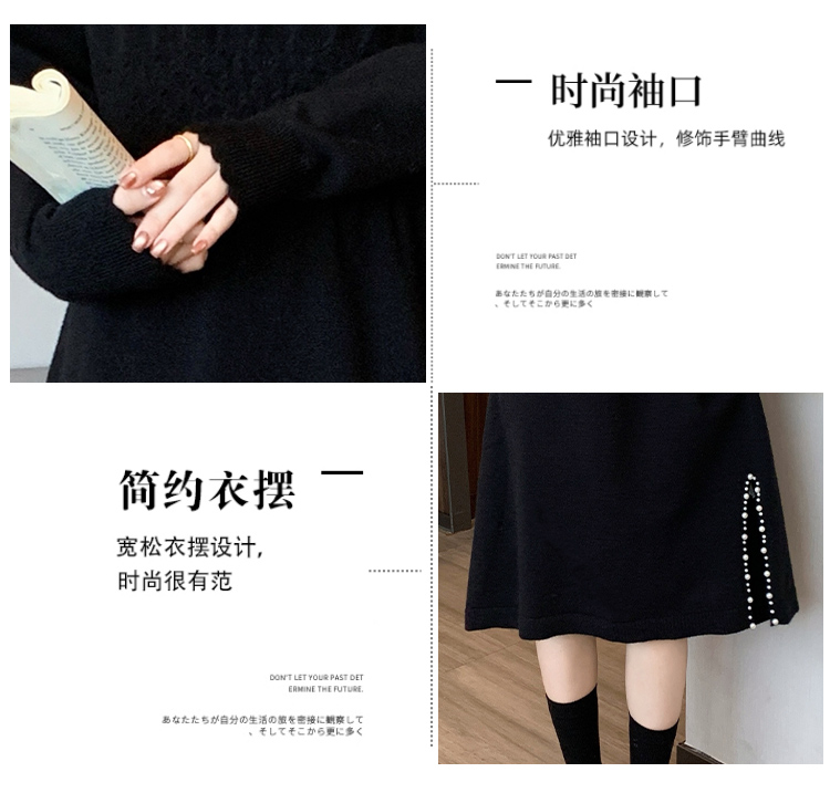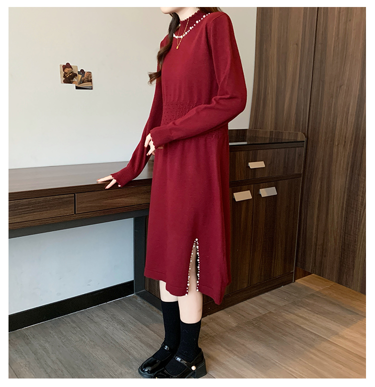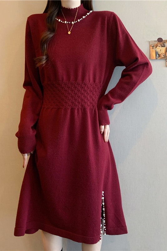 MY15038# 新款大码女装胖mm中长款针织钉珠A字打底开叉连衣裙女裝貨源服裝批發