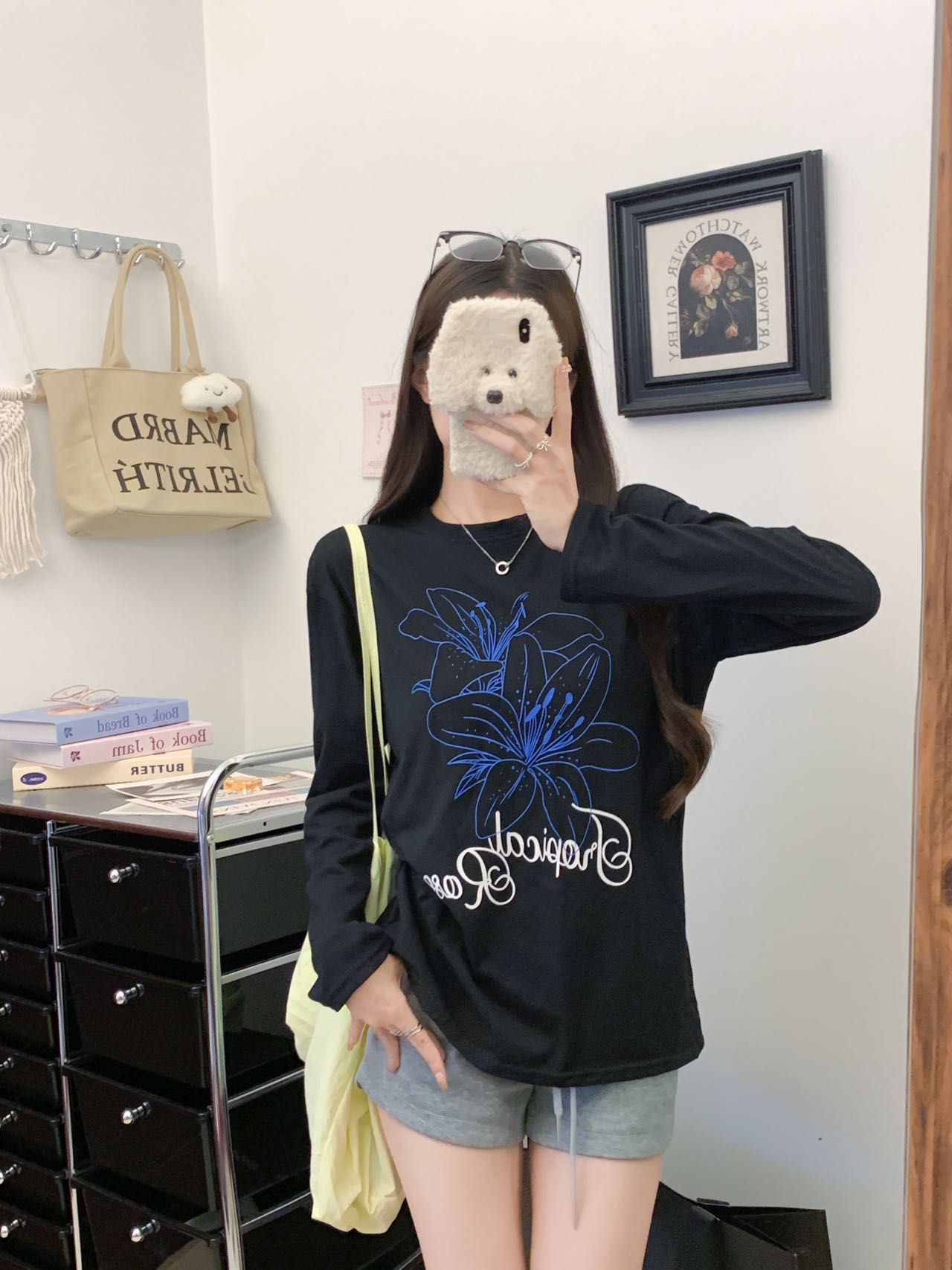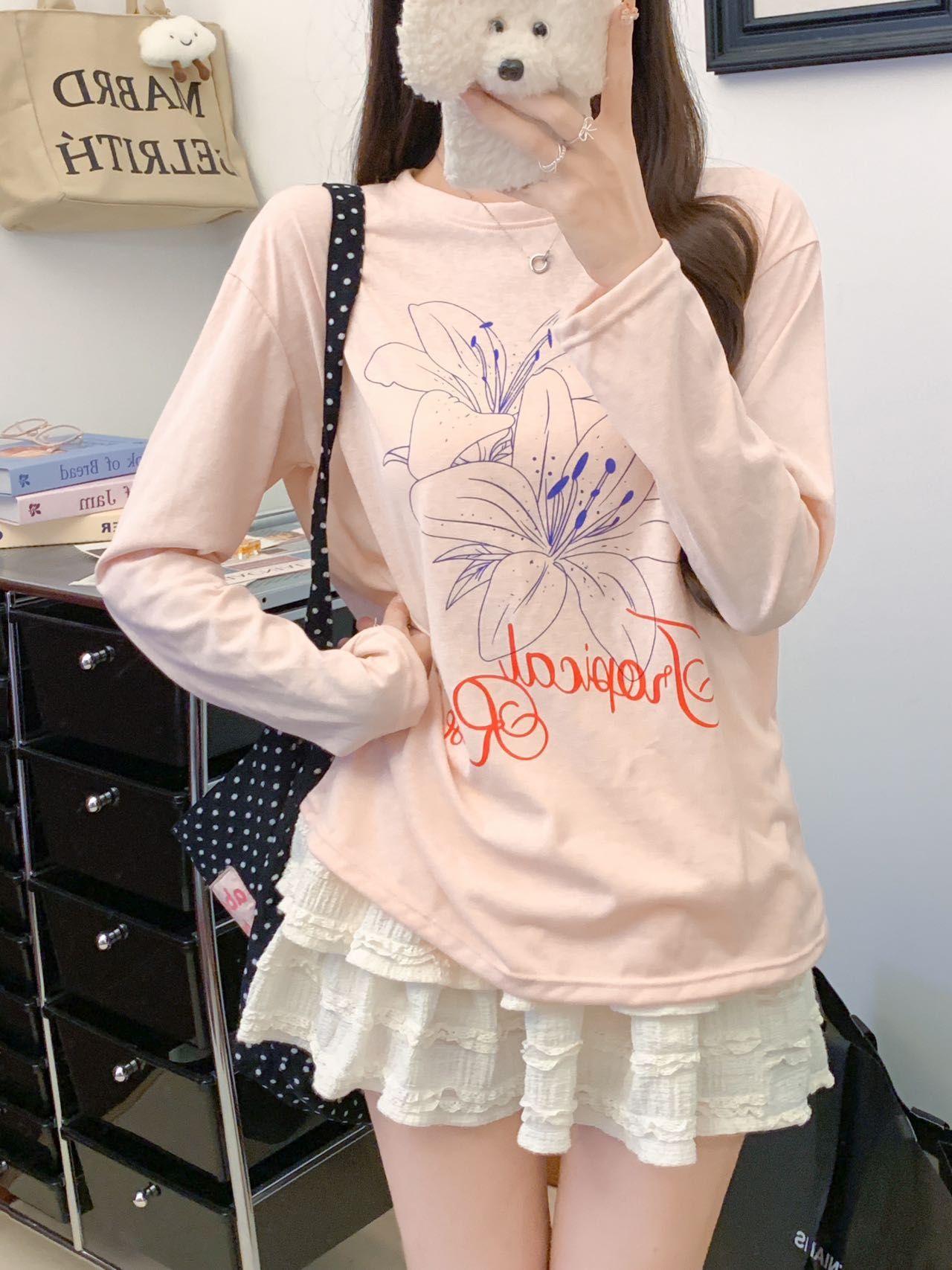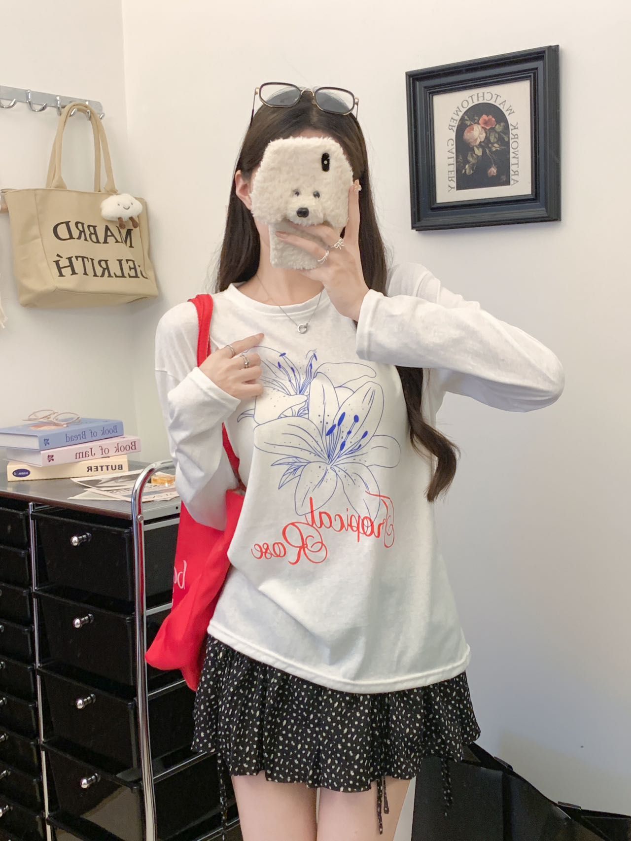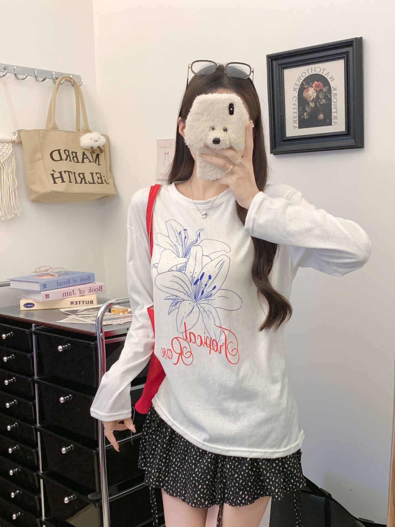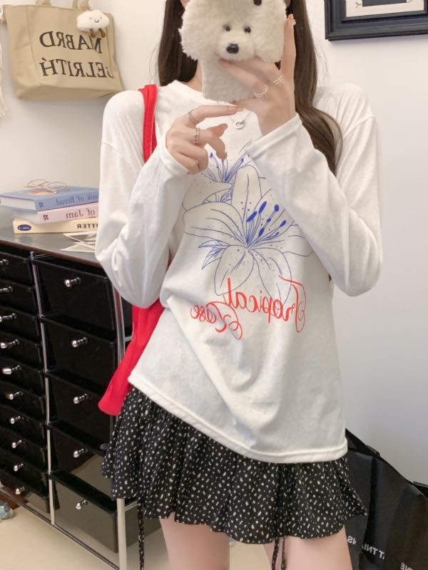 MY15040# 防晒罩衫新款白正肩长袖t恤宽松设计感chic韩系上衣女裝貨源服裝批發