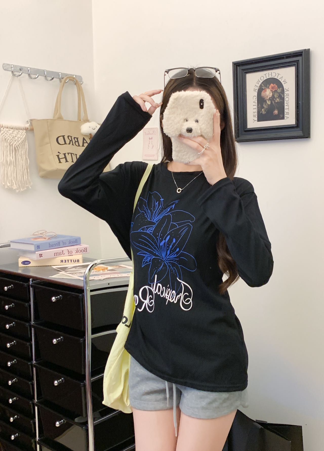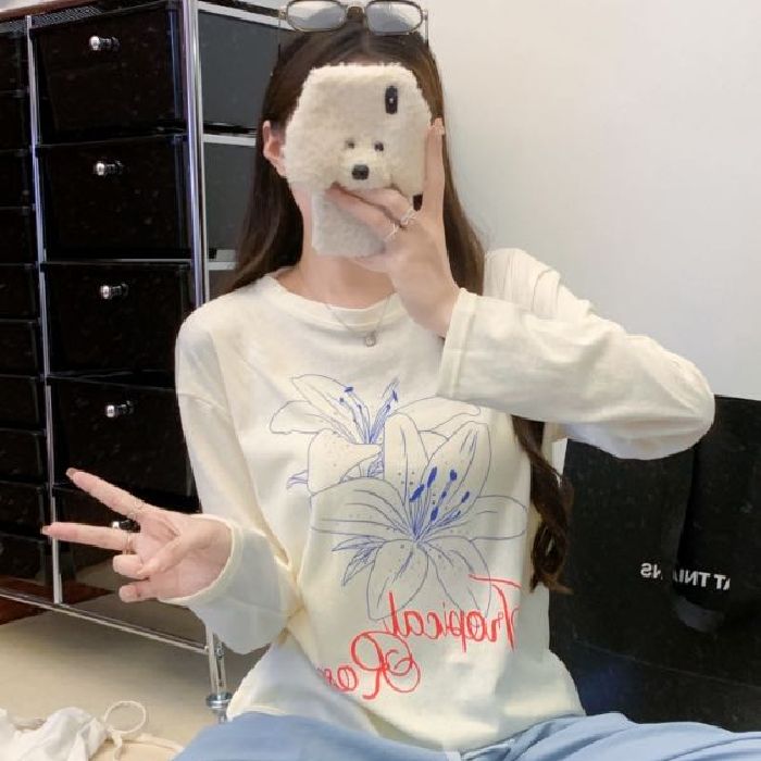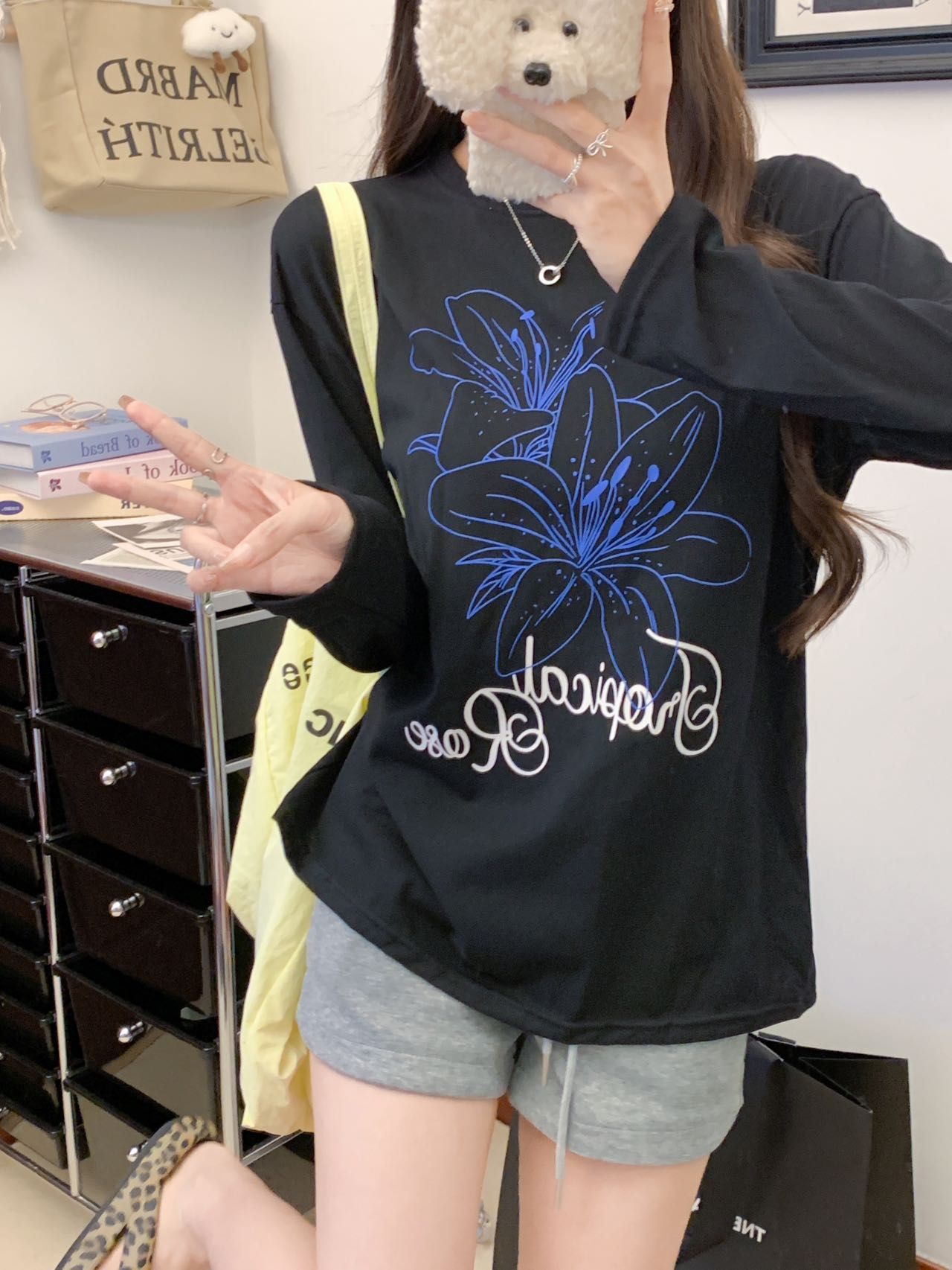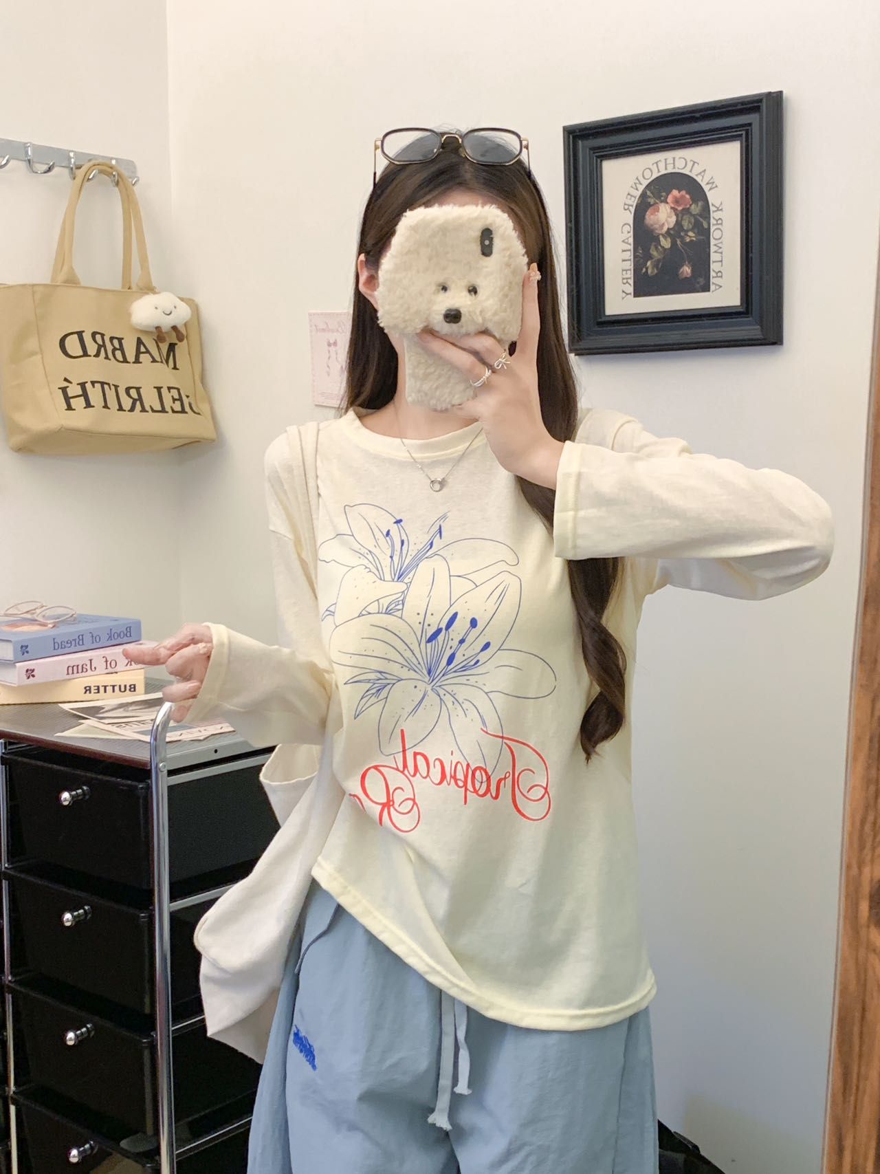 MY15040# 防晒罩衫新款白正肩长袖t恤宽松设计感chic韩系上衣女裝貨源服裝批發
