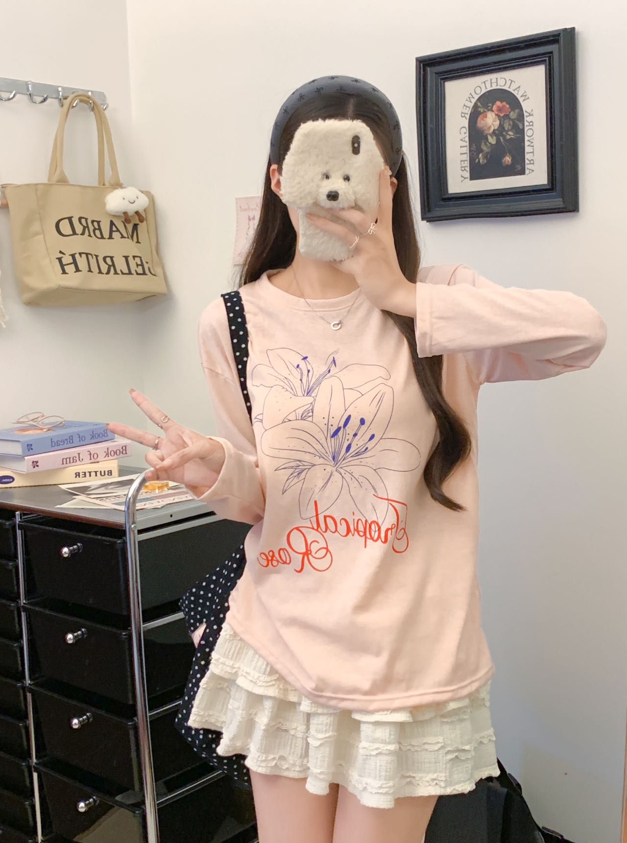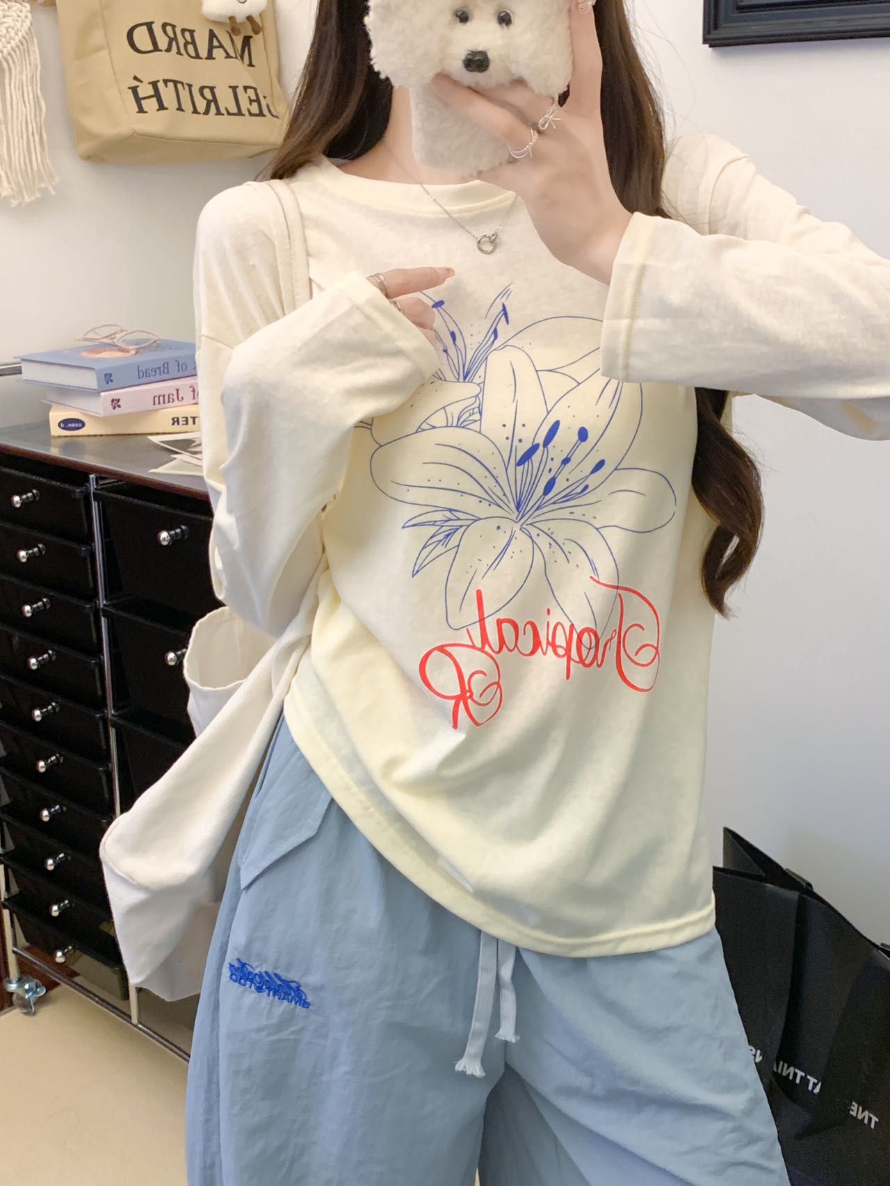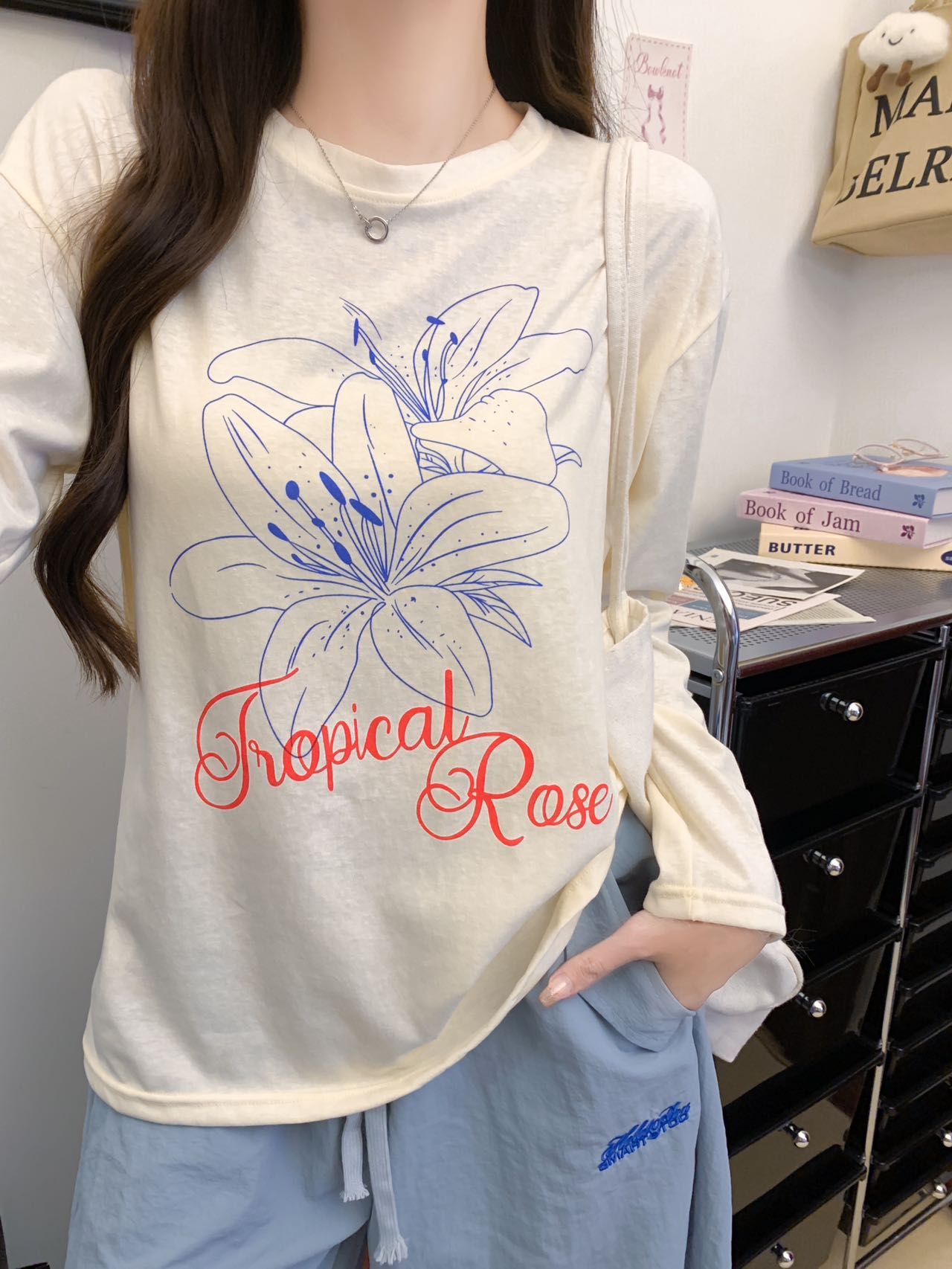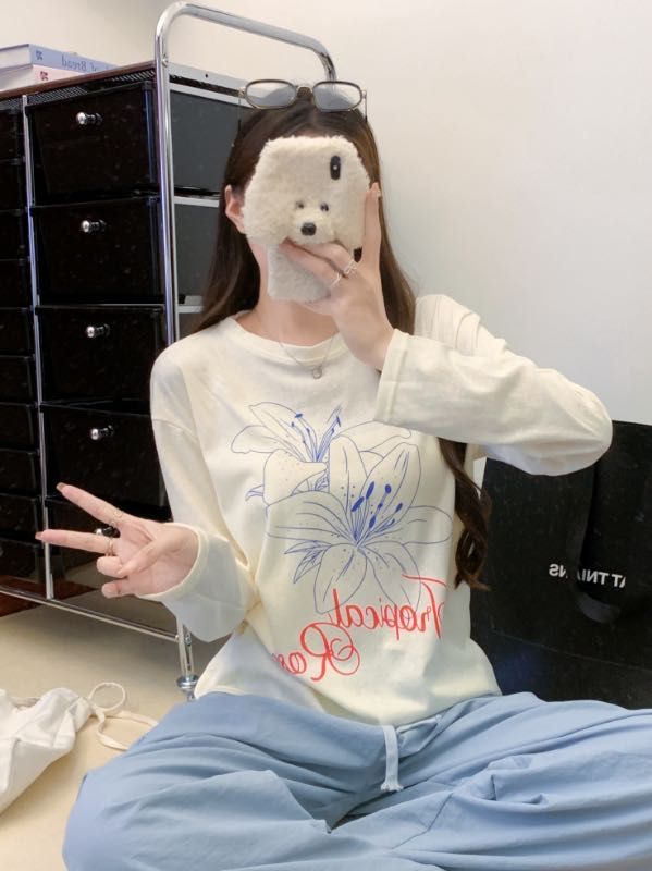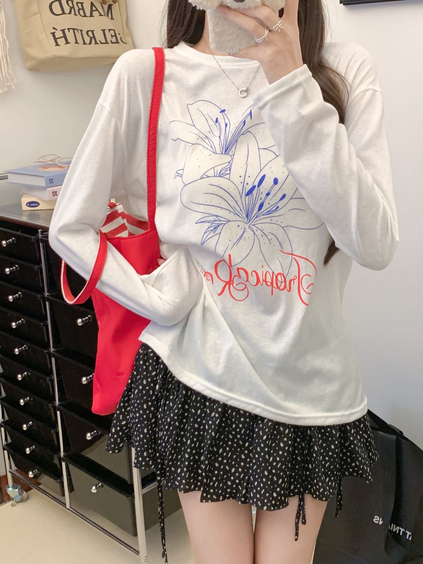 MY15040# 防晒罩衫新款白正肩长袖t恤宽松设计感chic韩系上衣女裝貨源服裝批發