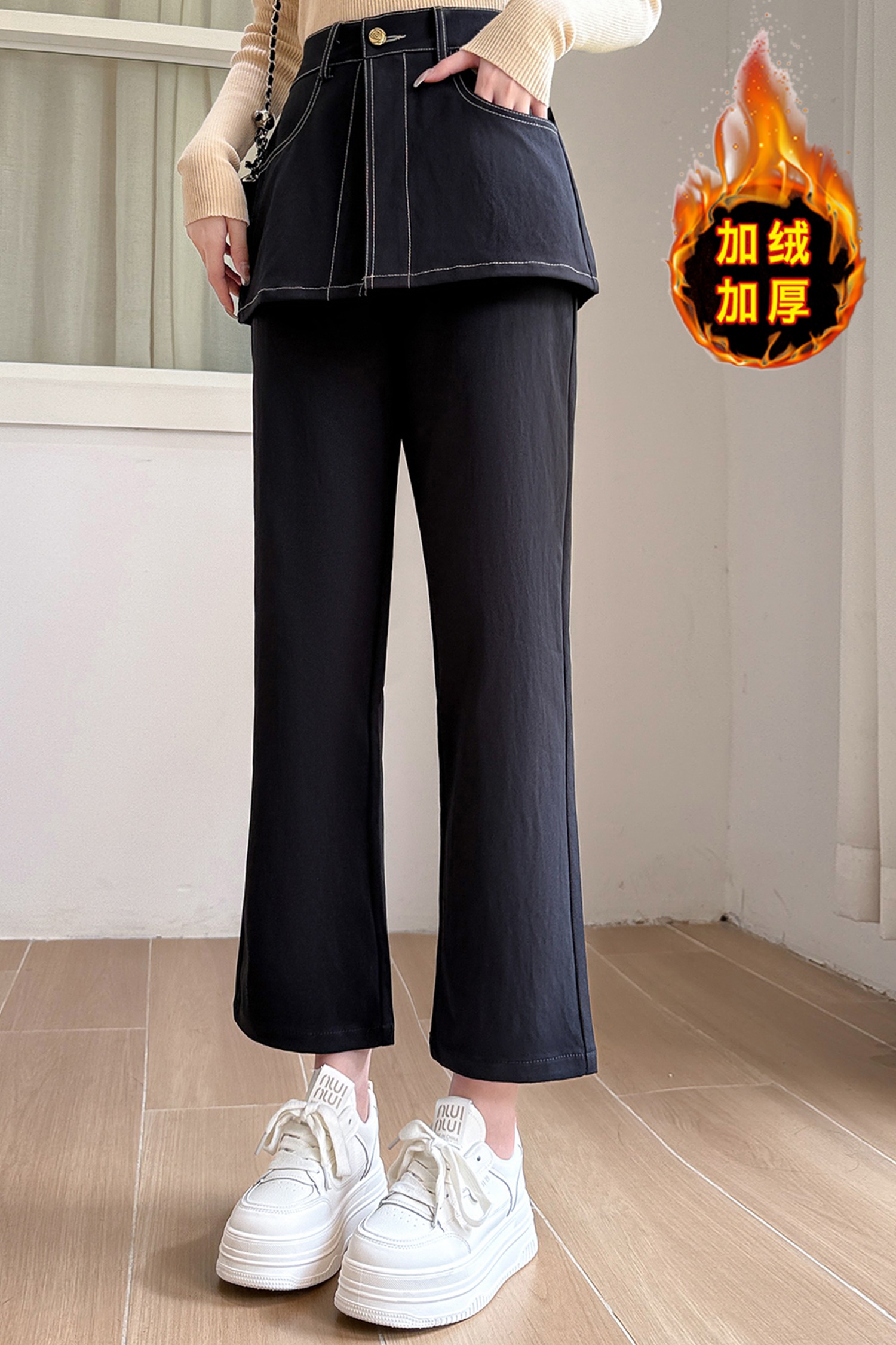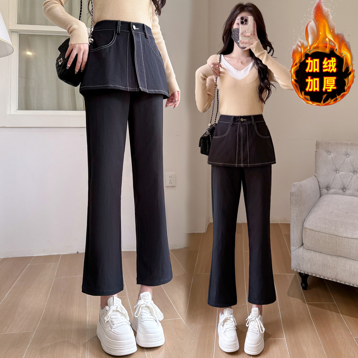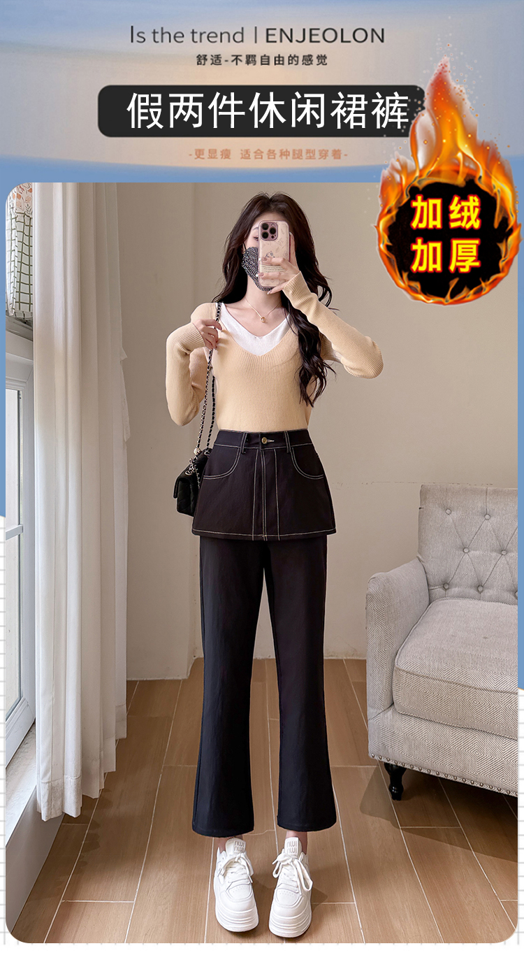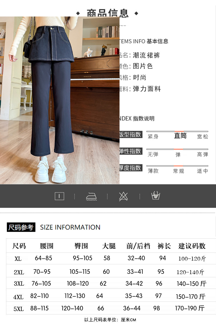 MY15047# 新款大码加绒加厚假二件高腰休闲裙裤胖MM松紧腰遮肚女长裤女裝貨源服裝批發