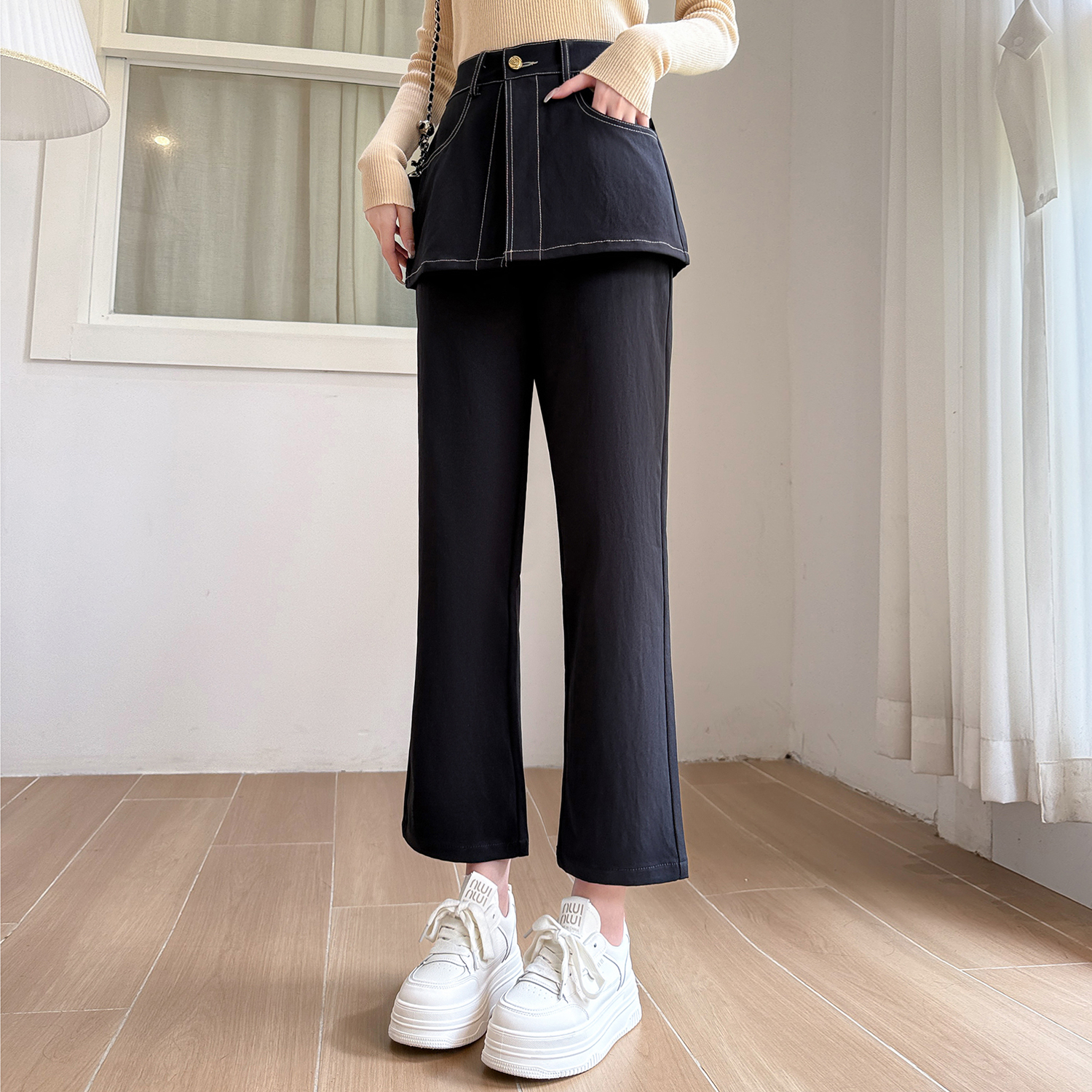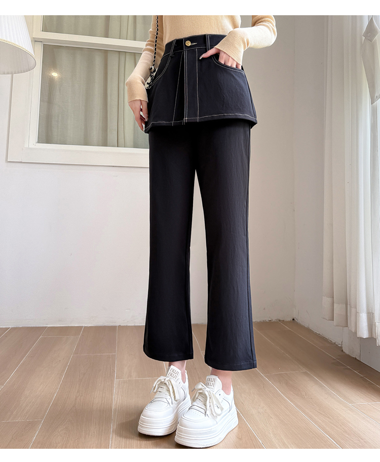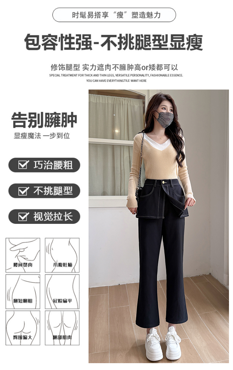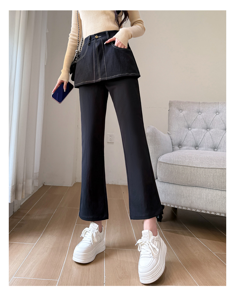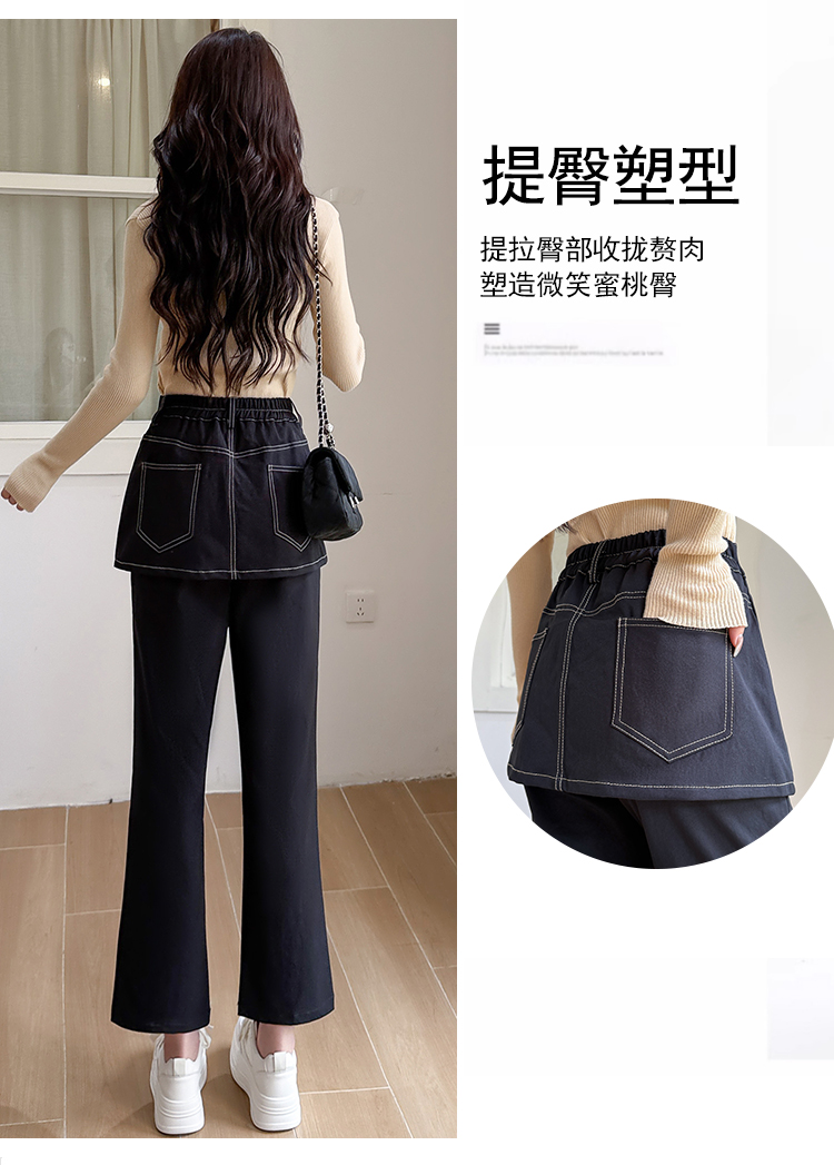 MY15047# 新款大码加绒加厚假二件高腰休闲裙裤胖MM松紧腰遮肚女长裤女裝貨源服裝批發