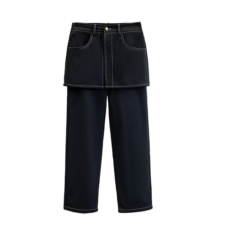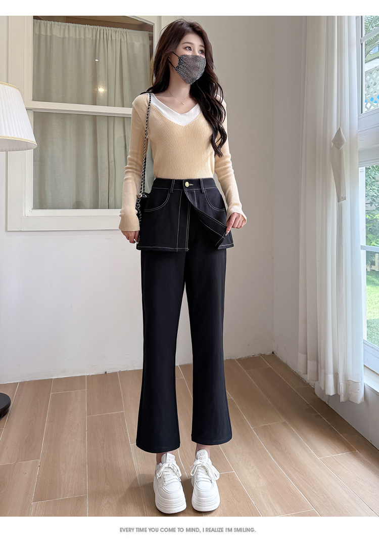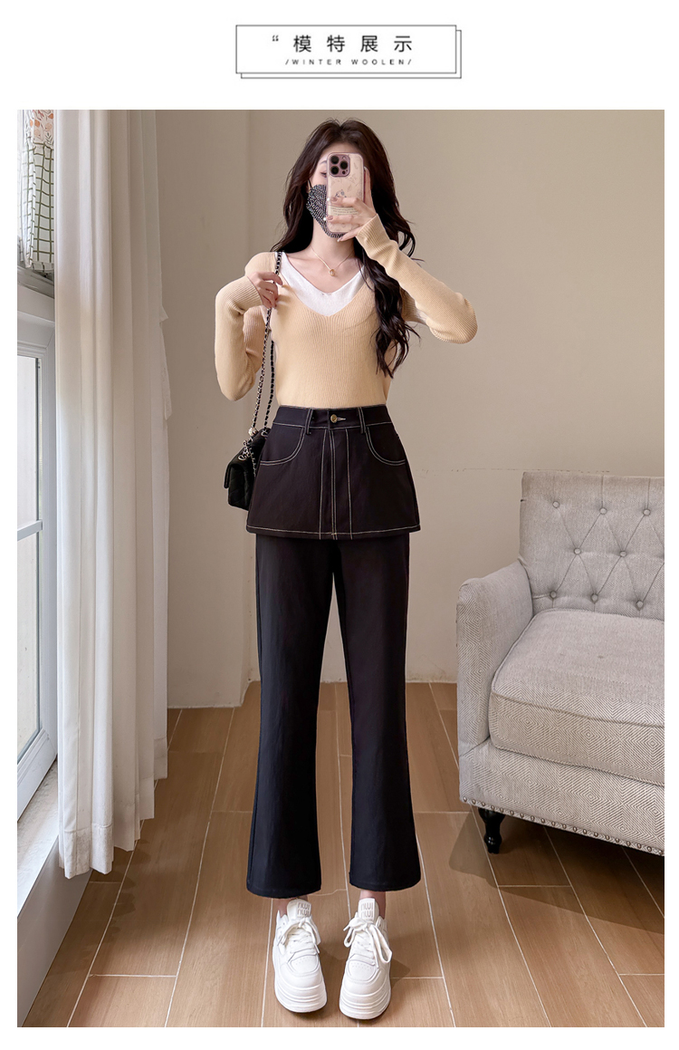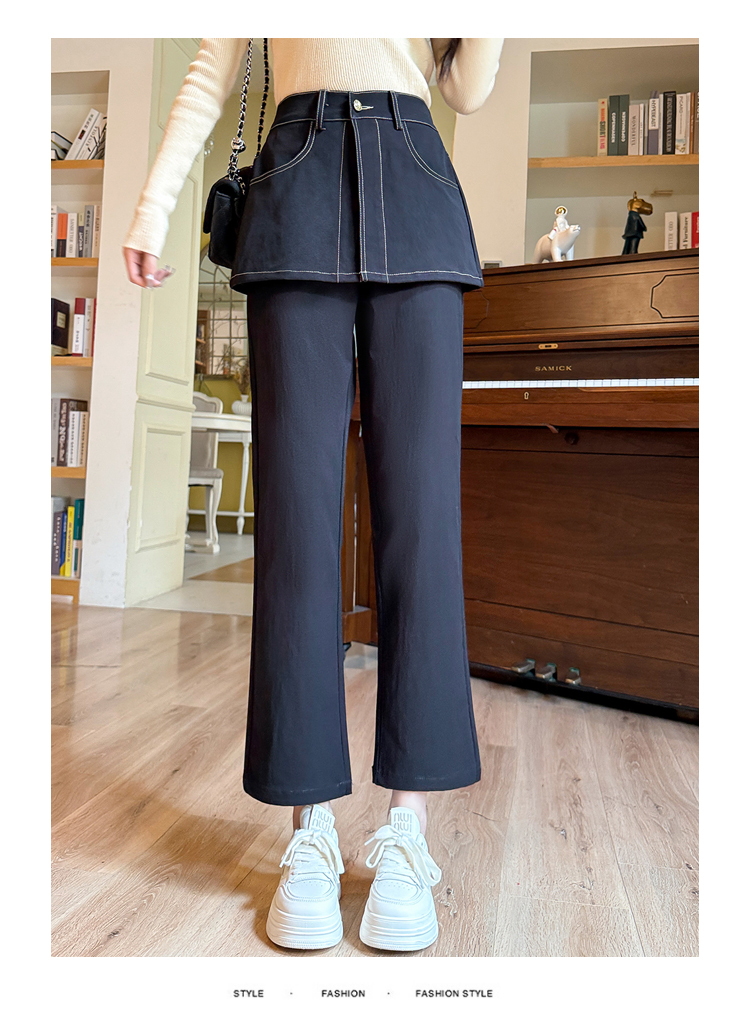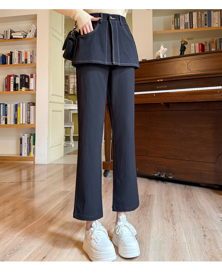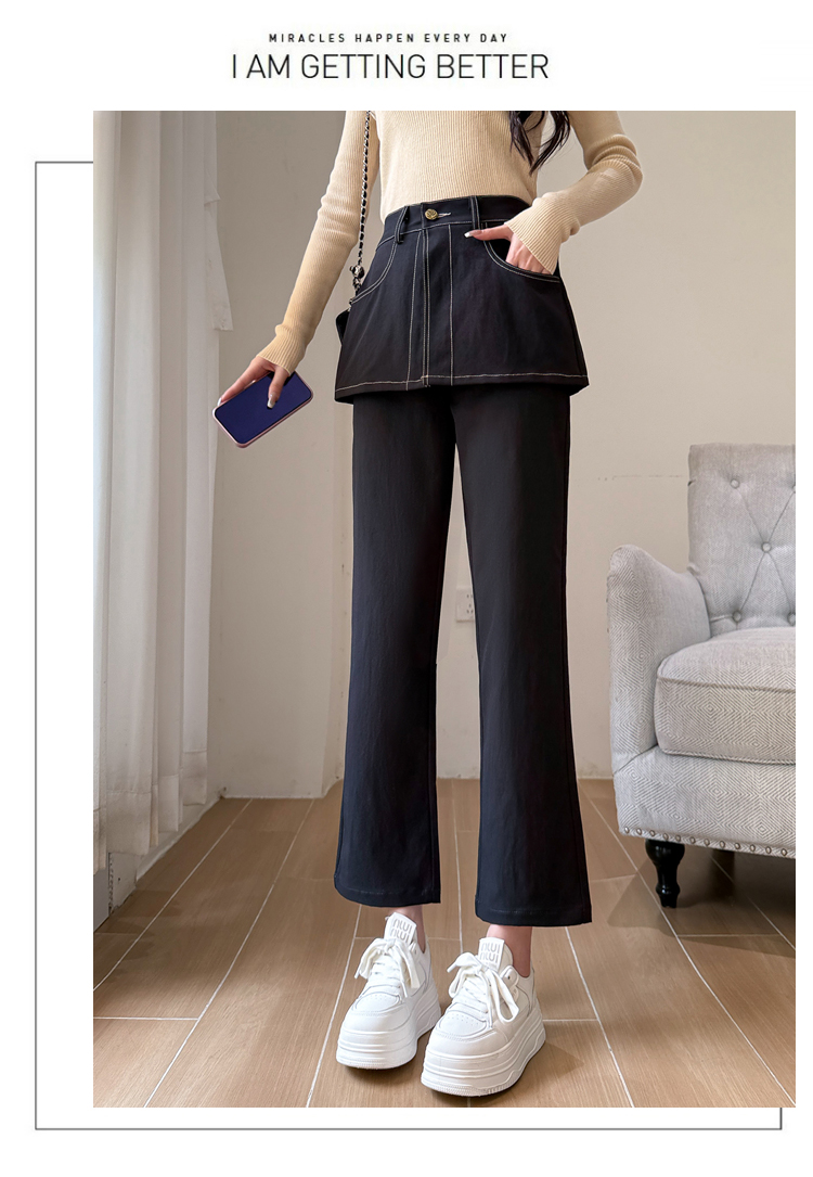 MY15047# 新款大码加绒加厚假二件高腰休闲裙裤胖MM松紧腰遮肚女长裤女裝貨源服裝批發