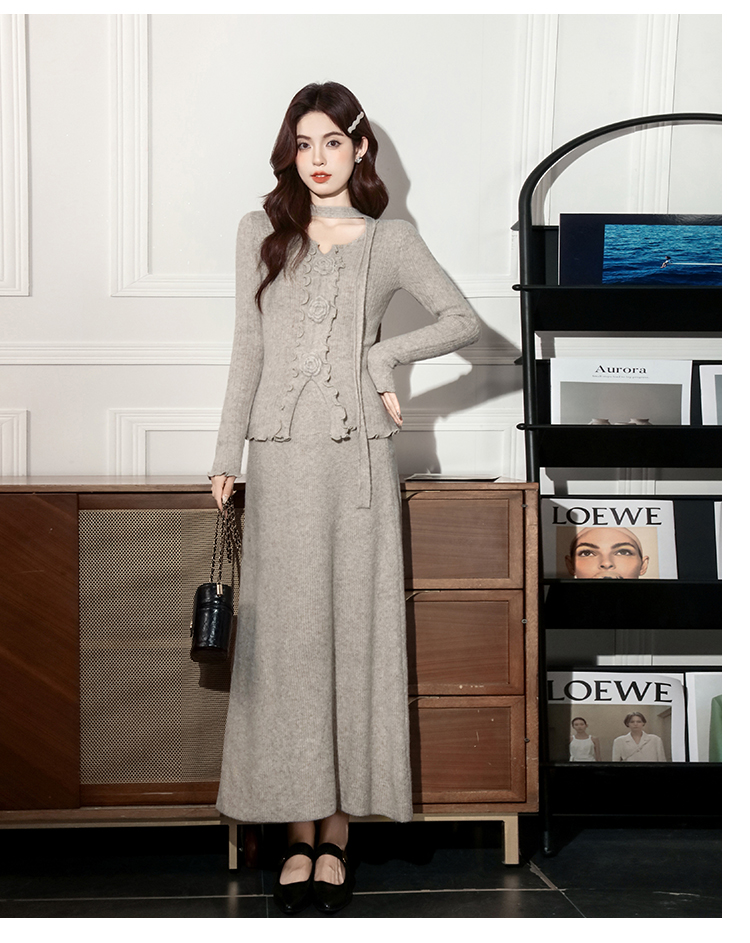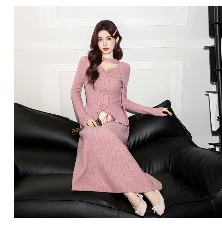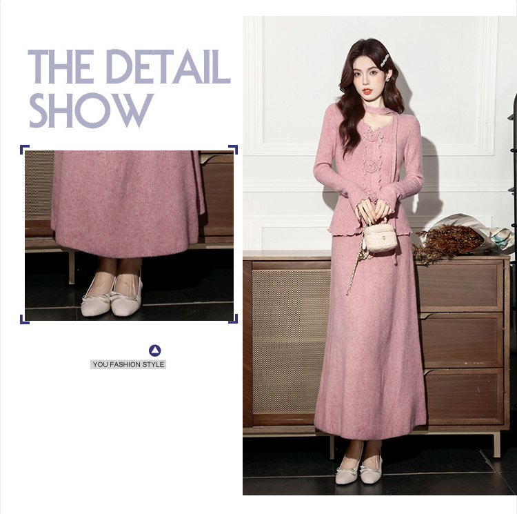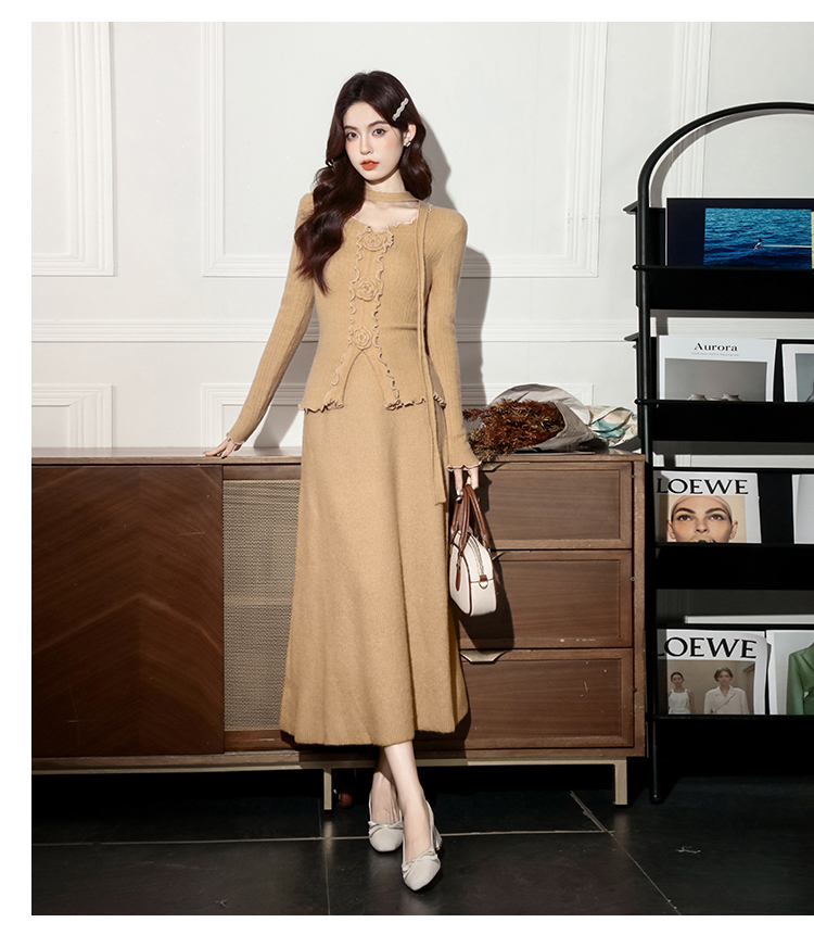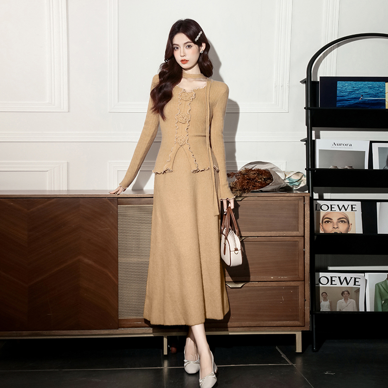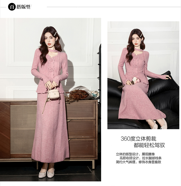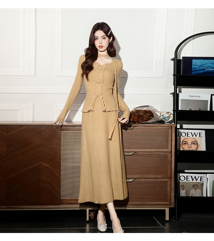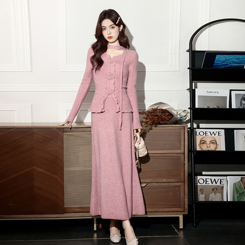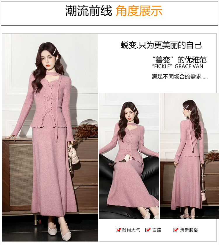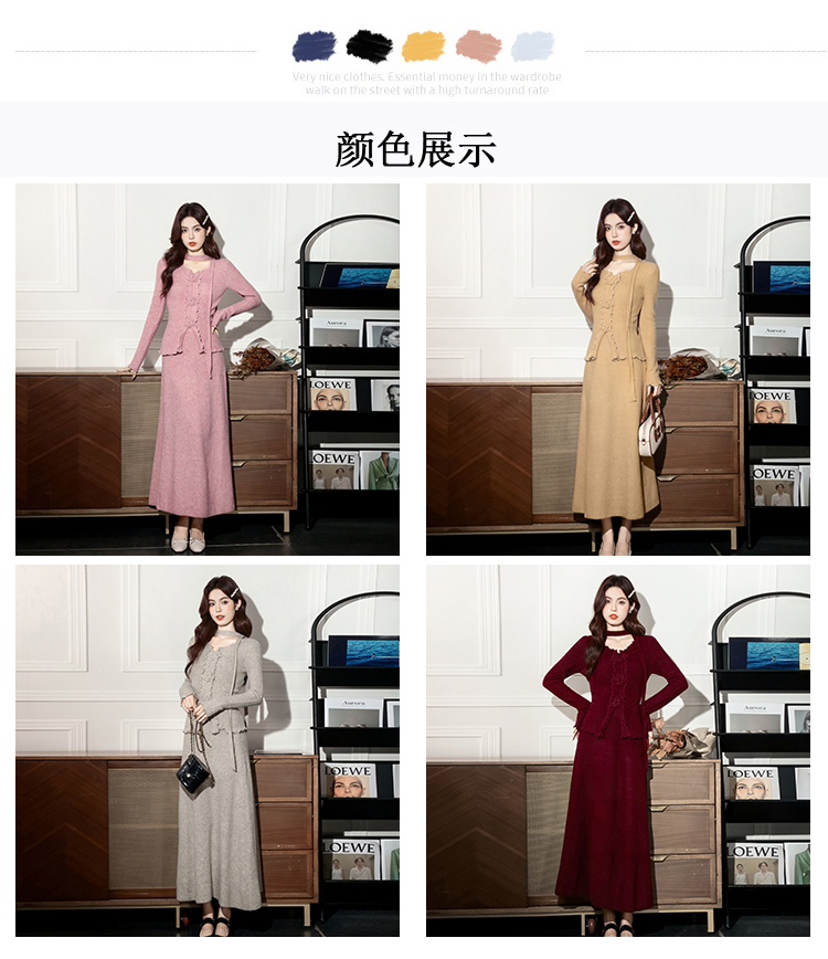MY15063# 新款温柔优雅气质小女人长款显瘦针织两件套装裙女裝貨源服裝批發