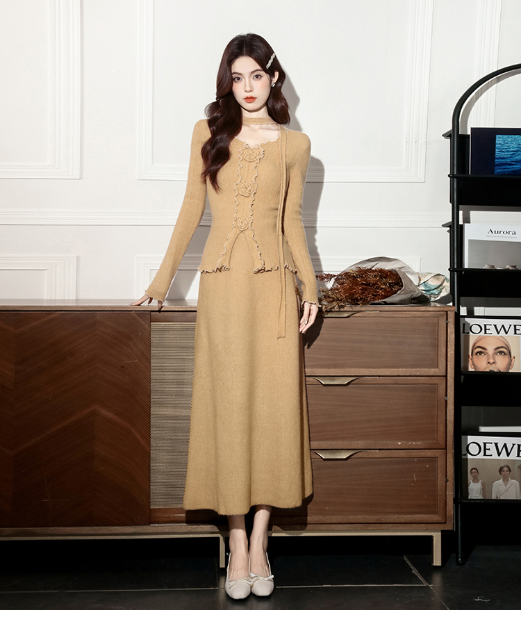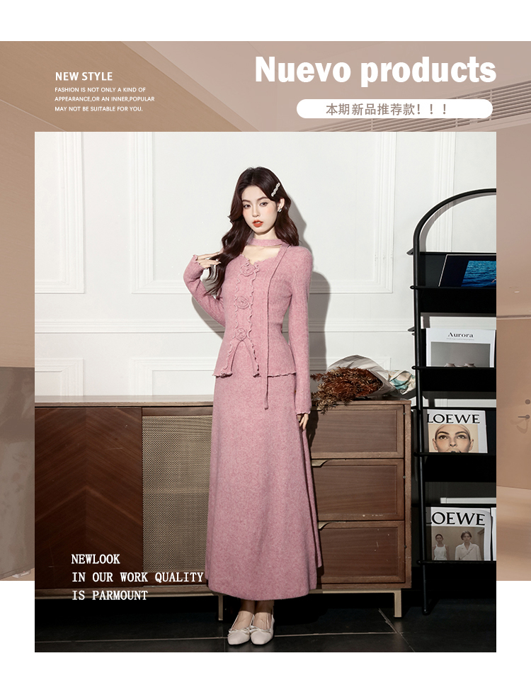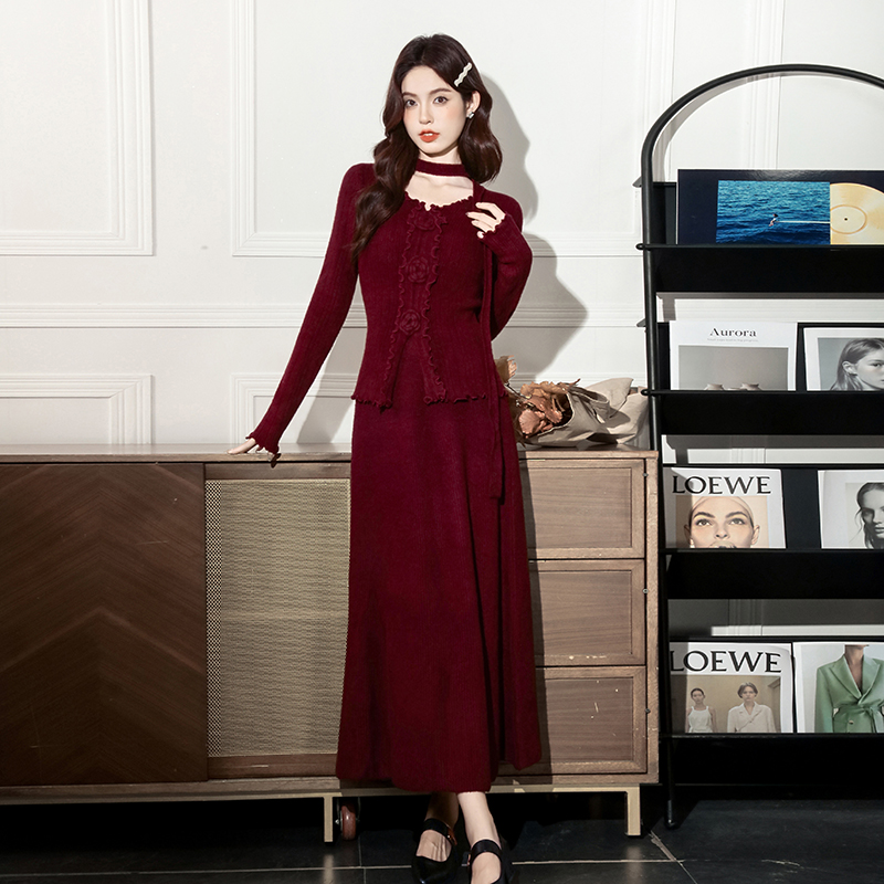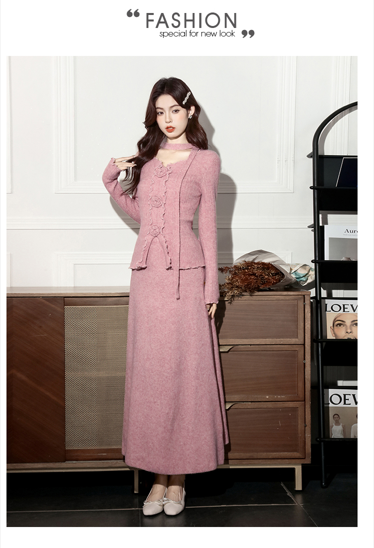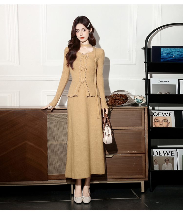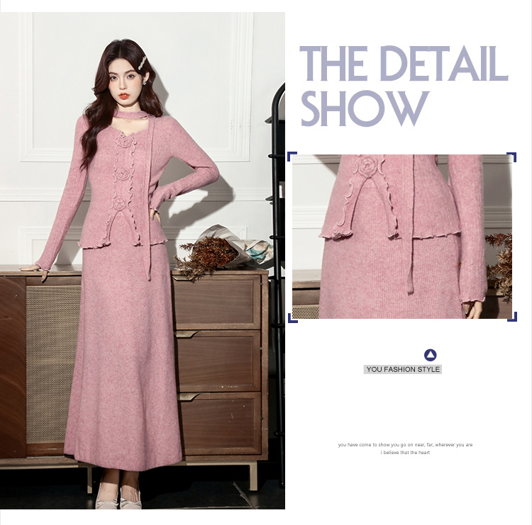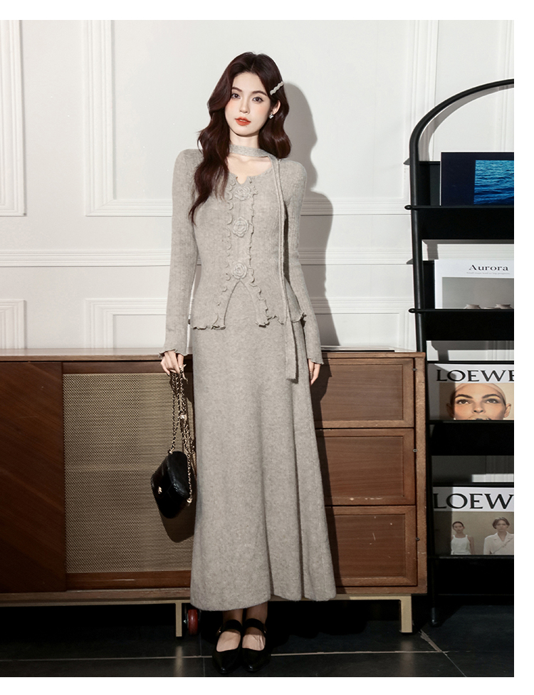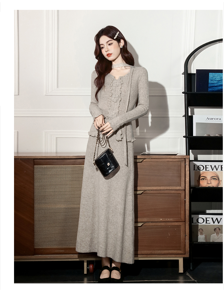 MY15063# 新款温柔优雅气质小女人长款显瘦针织两件套装裙女裝貨源服裝批發