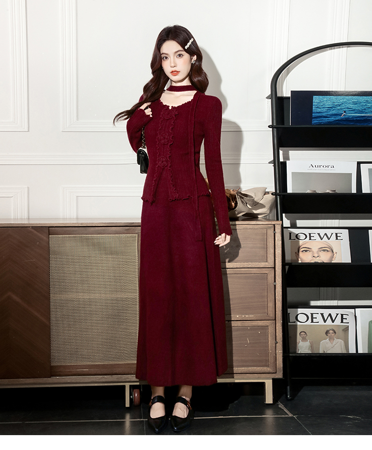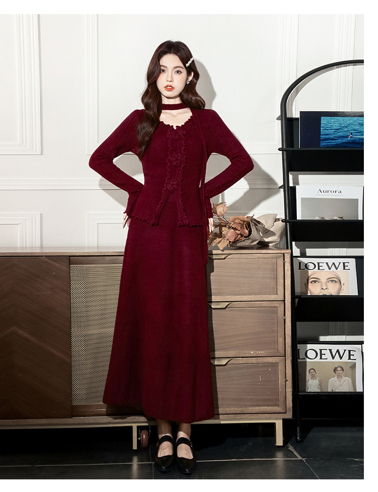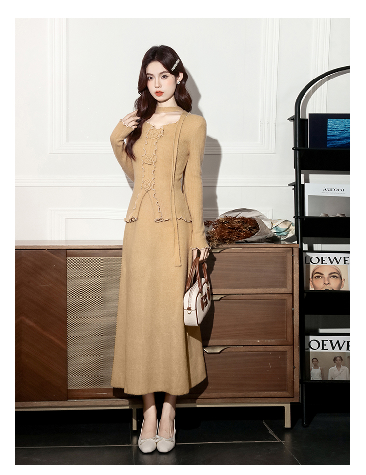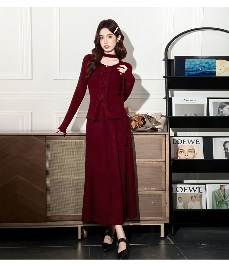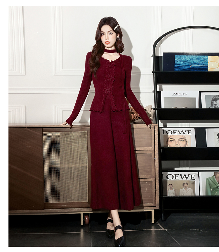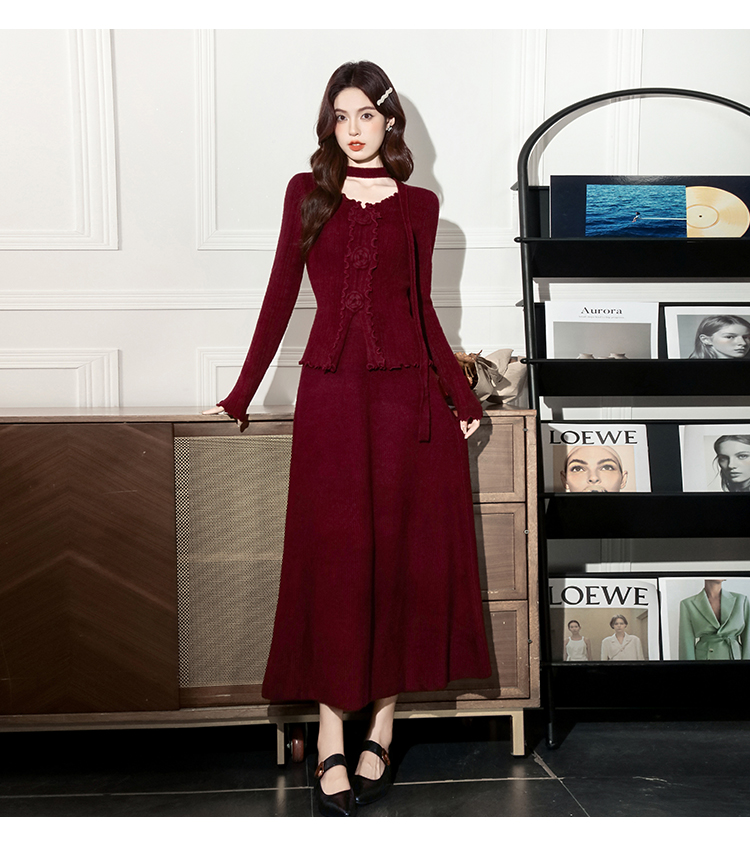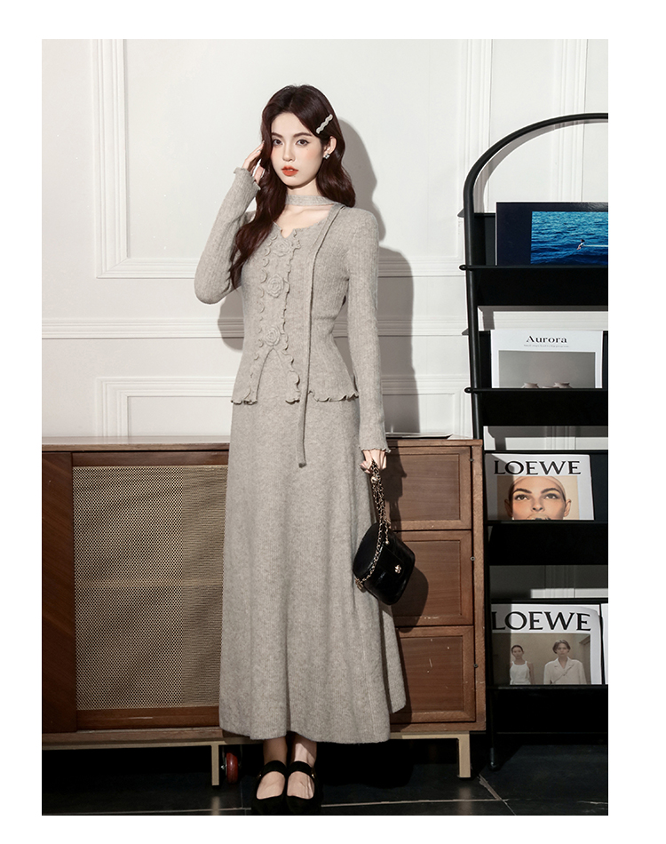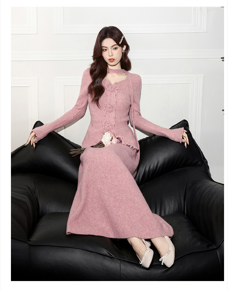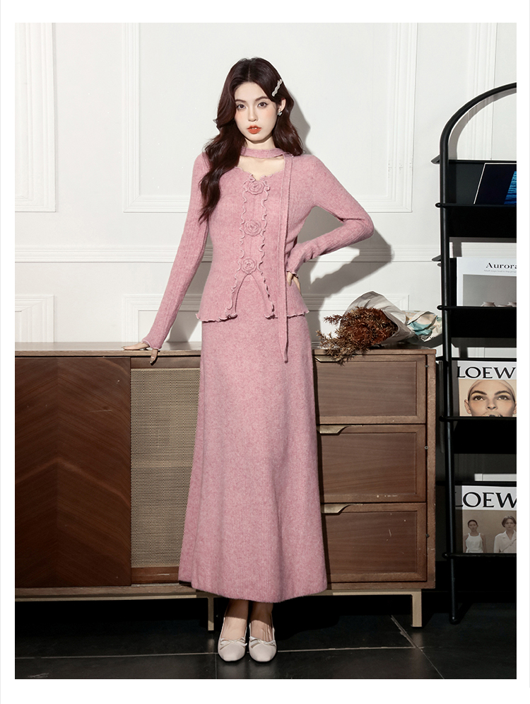 MY15063# 新款温柔优雅气质小女人长款显瘦针织两件套装裙女裝貨源服裝批發