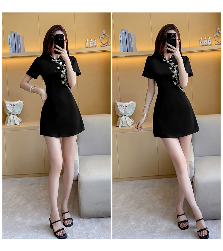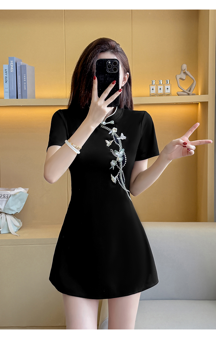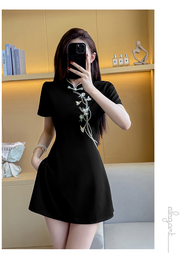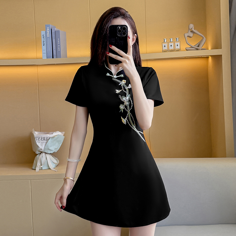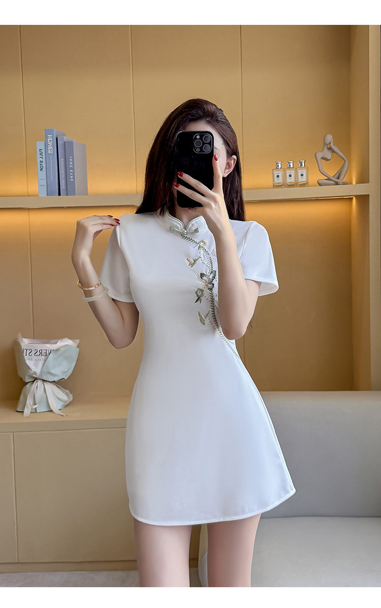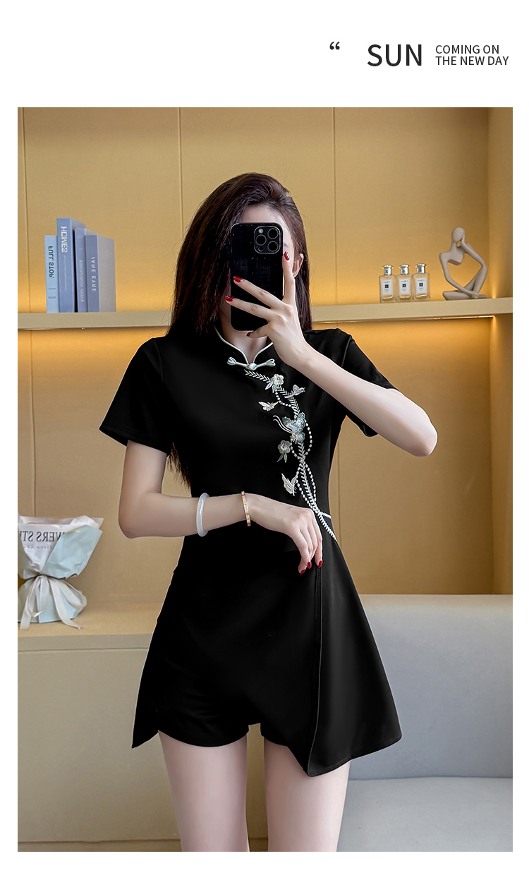 MY15083# 夏季新款新中式绣花改良旗袍收腰显瘦性感时尚套装两件套女裝貨源服裝批發
