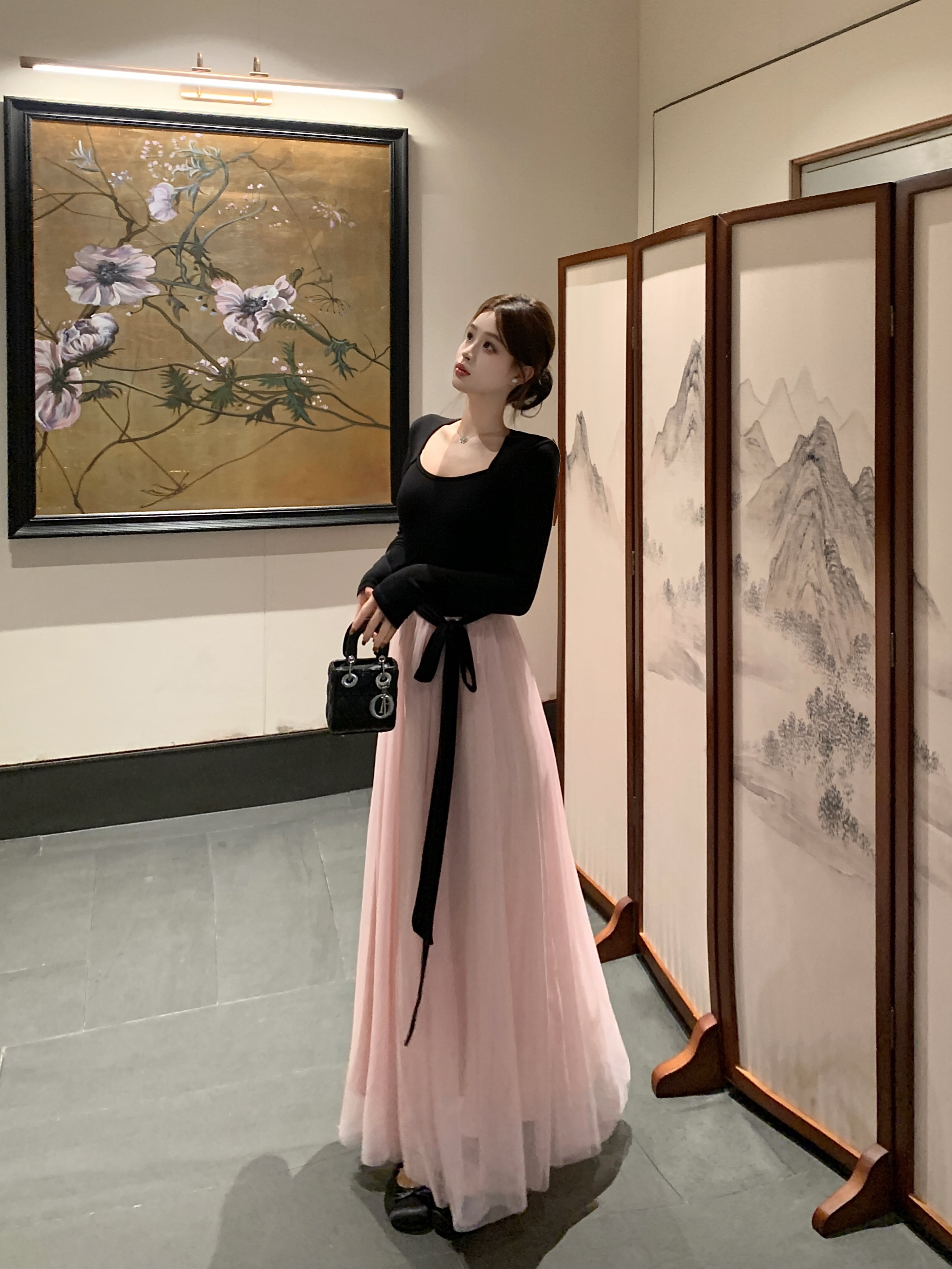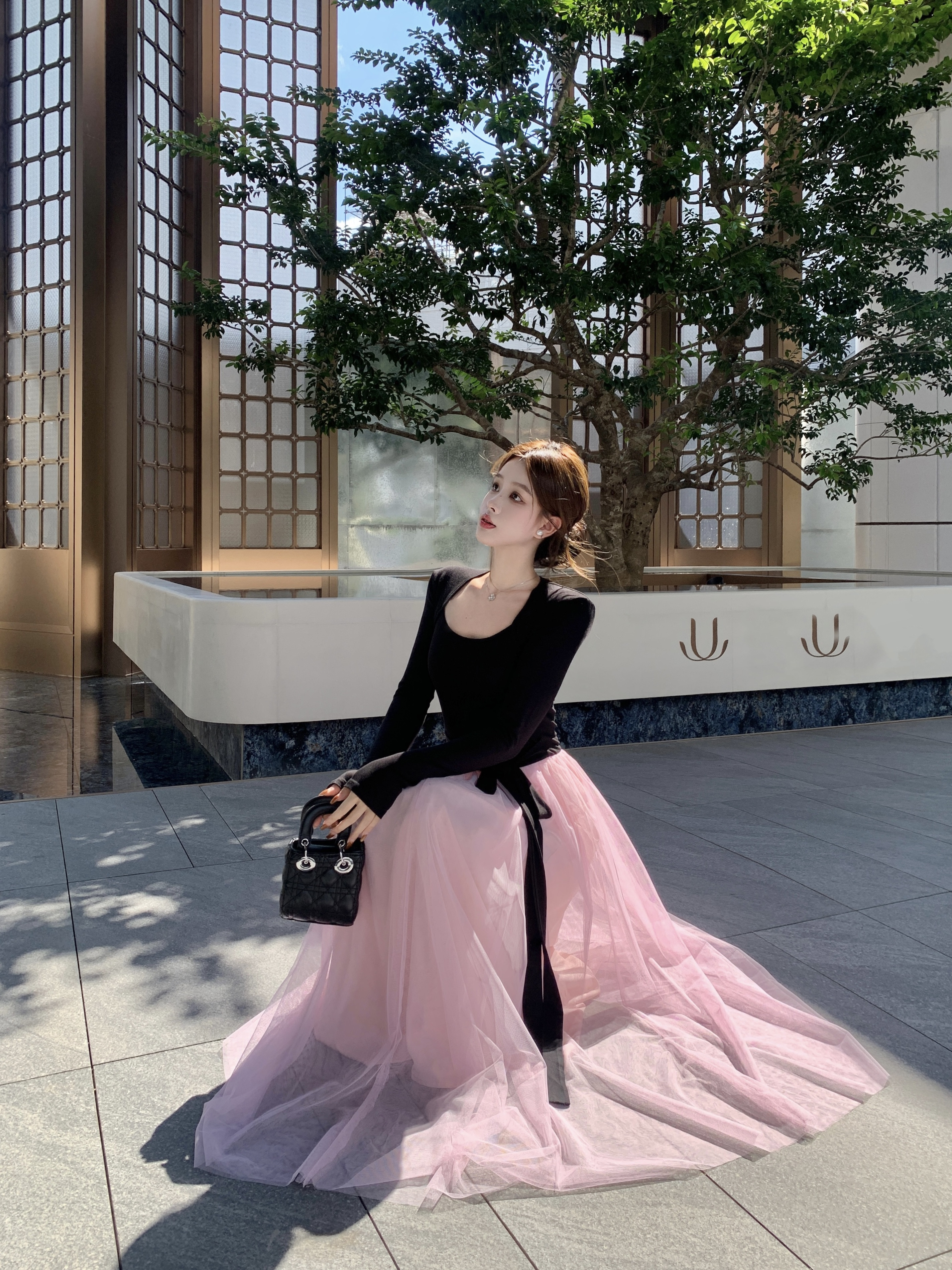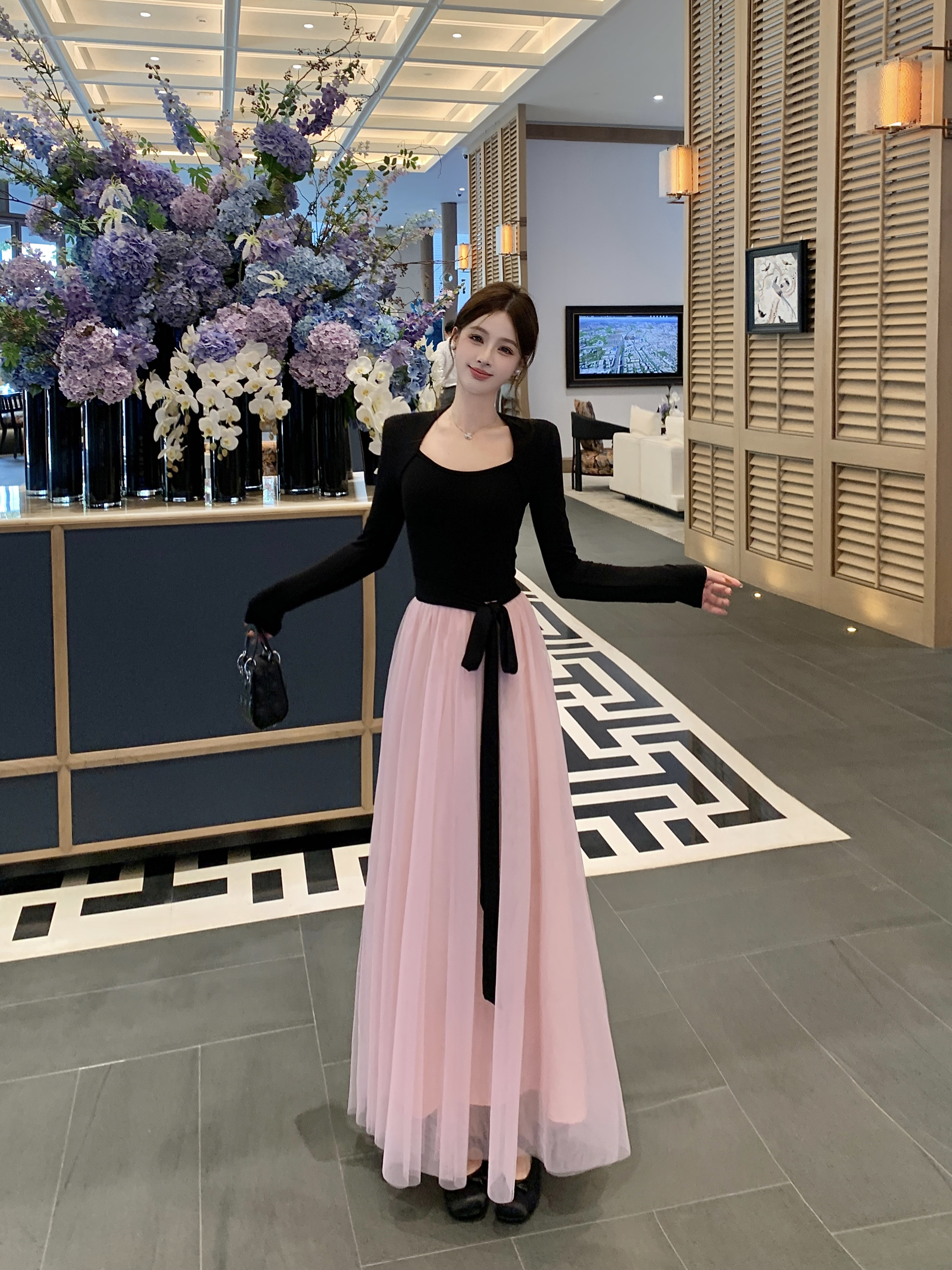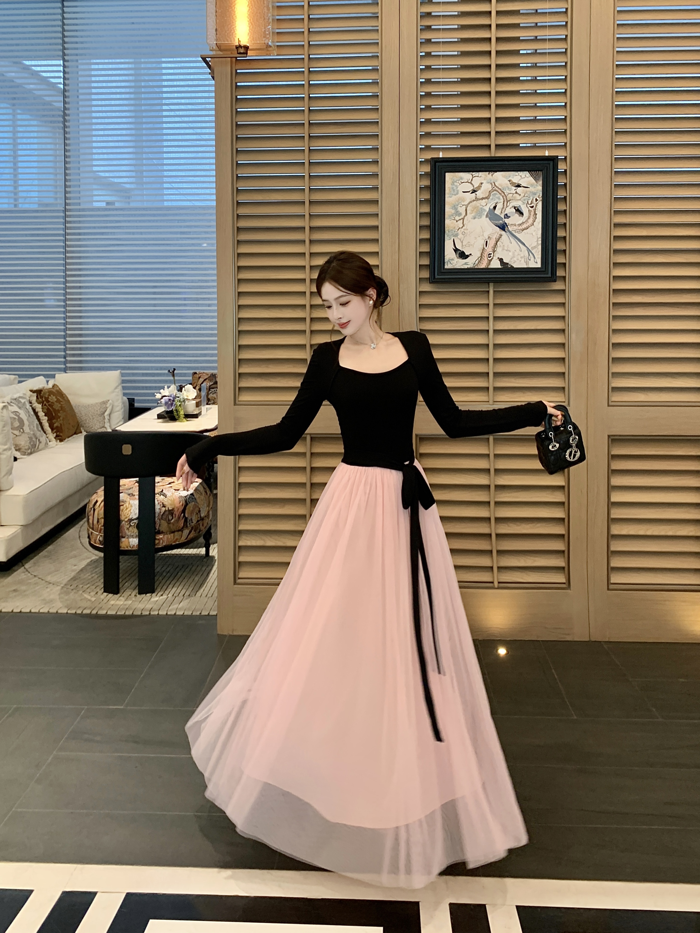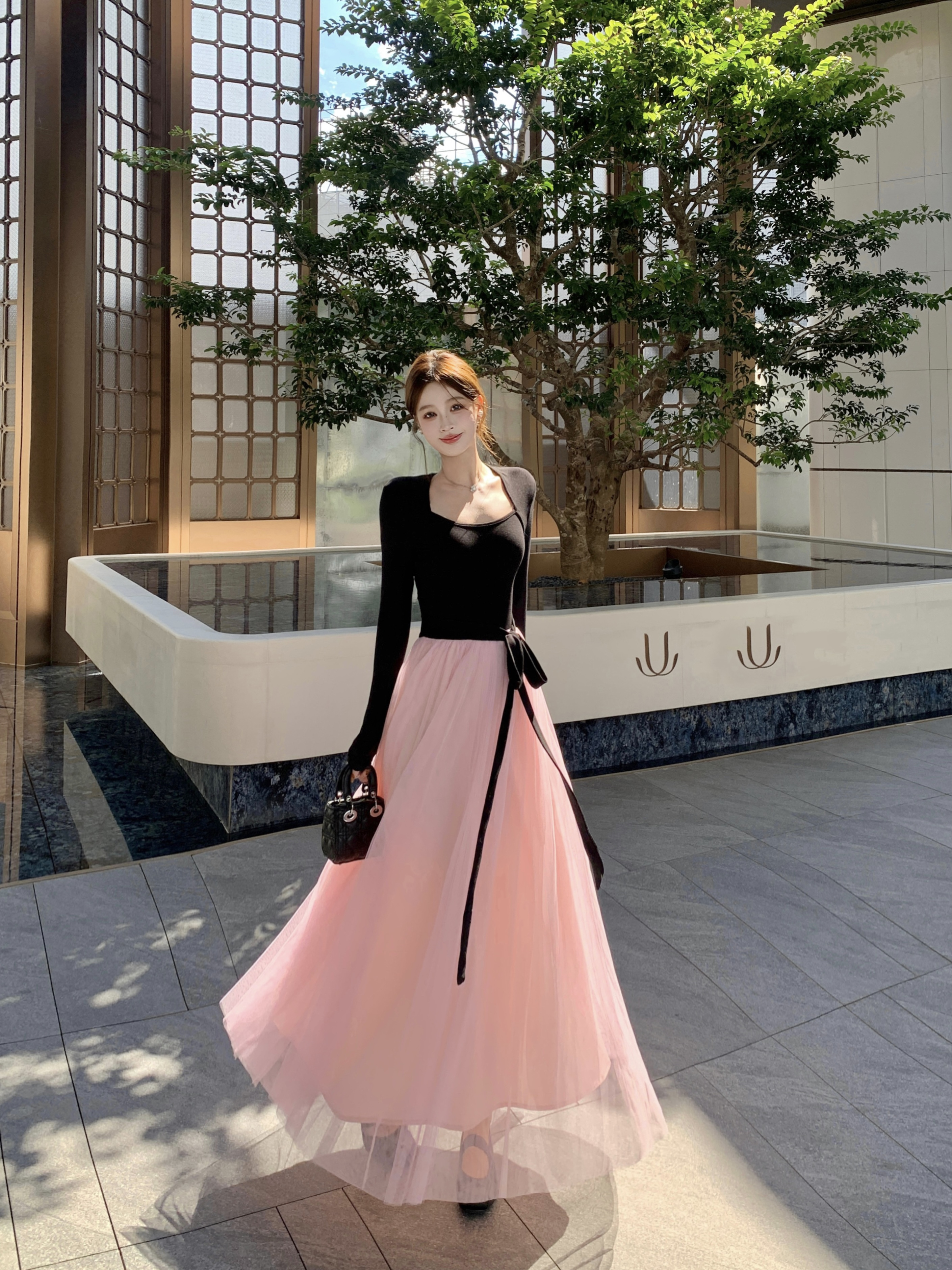 MY15054# 法式黑色海军领针织连衣裙新款名媛高端小洋装毛衣裙子女裝貨...