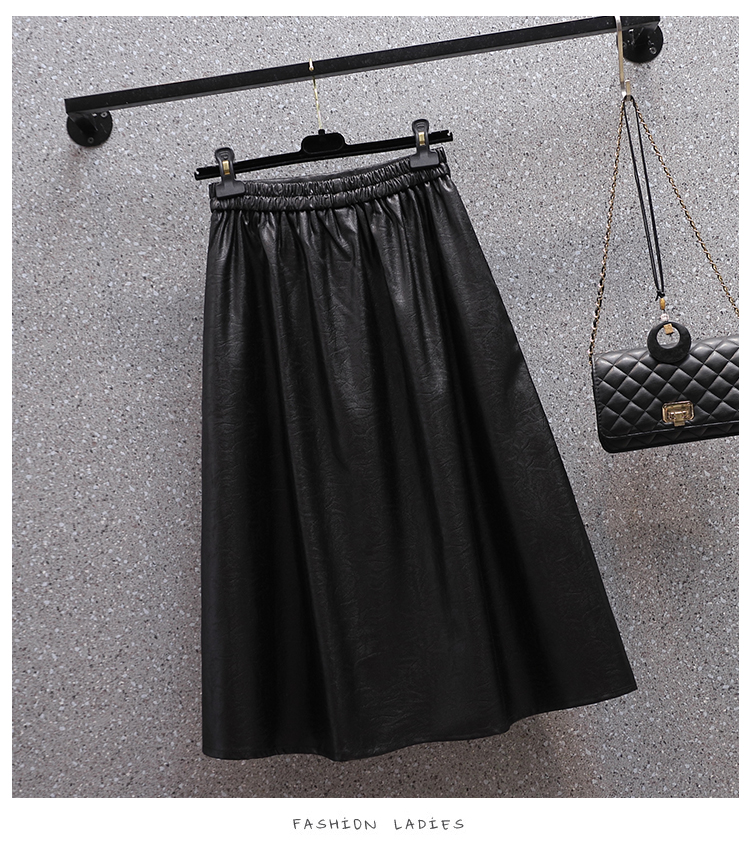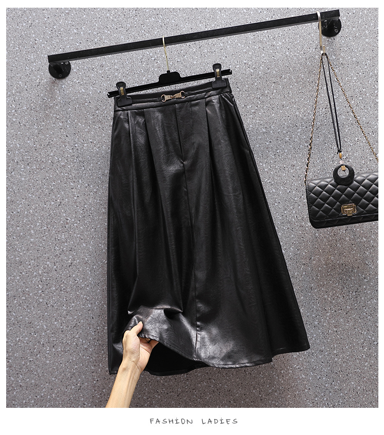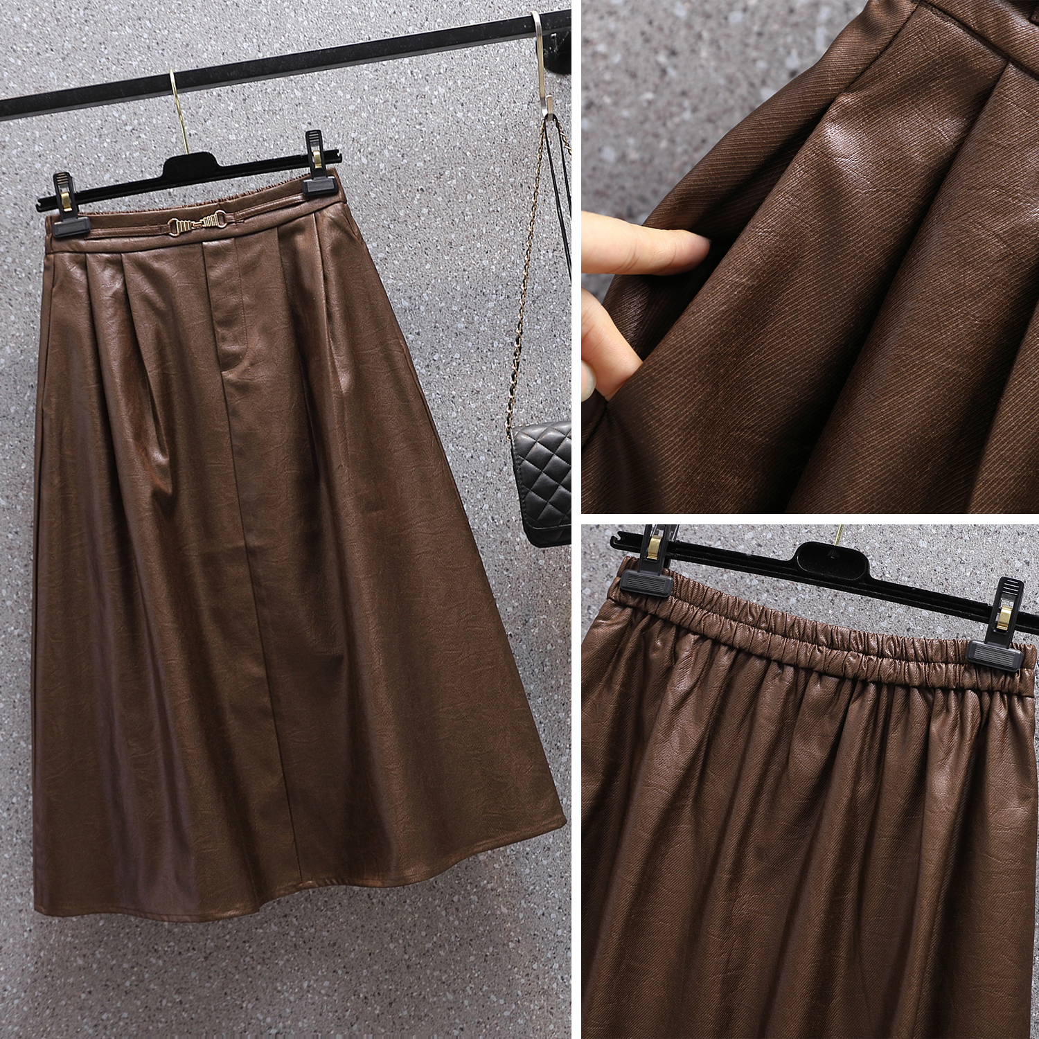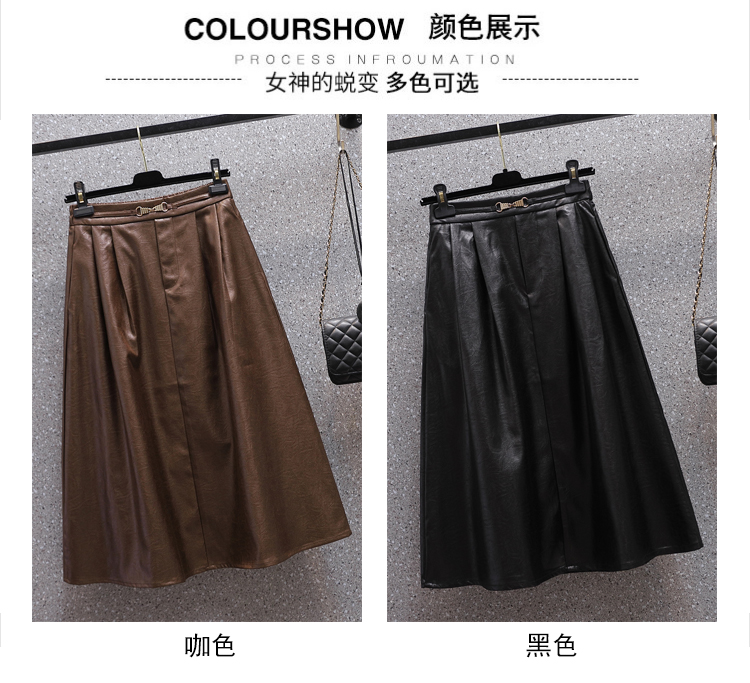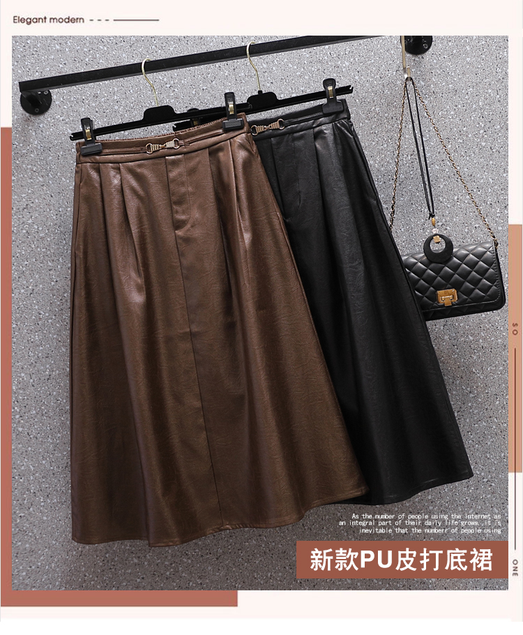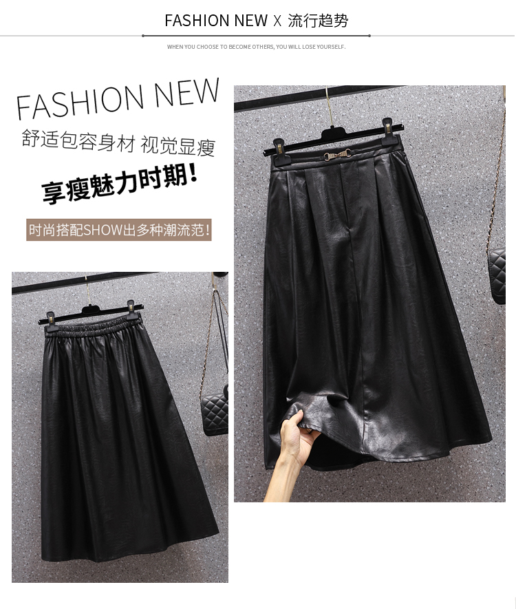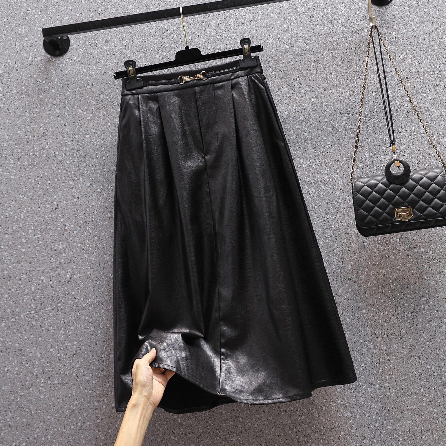 MY15235# 大码垂坠感pu皮裙胖MM高腰半身裙显瘦百搭软皮a字皮伞裙女裝貨源服裝批發