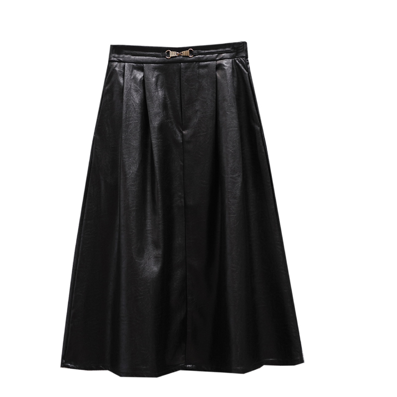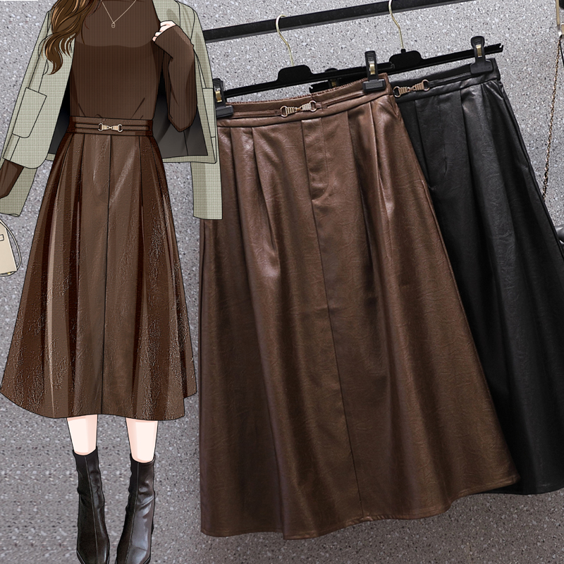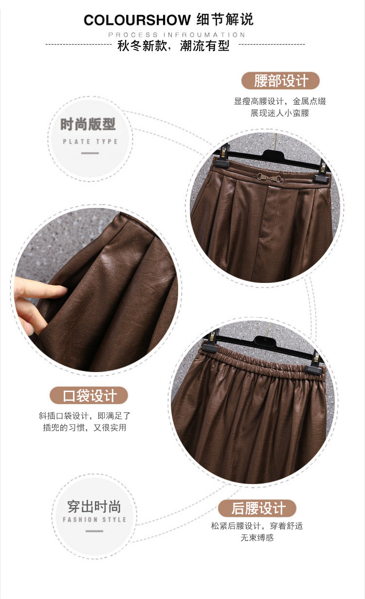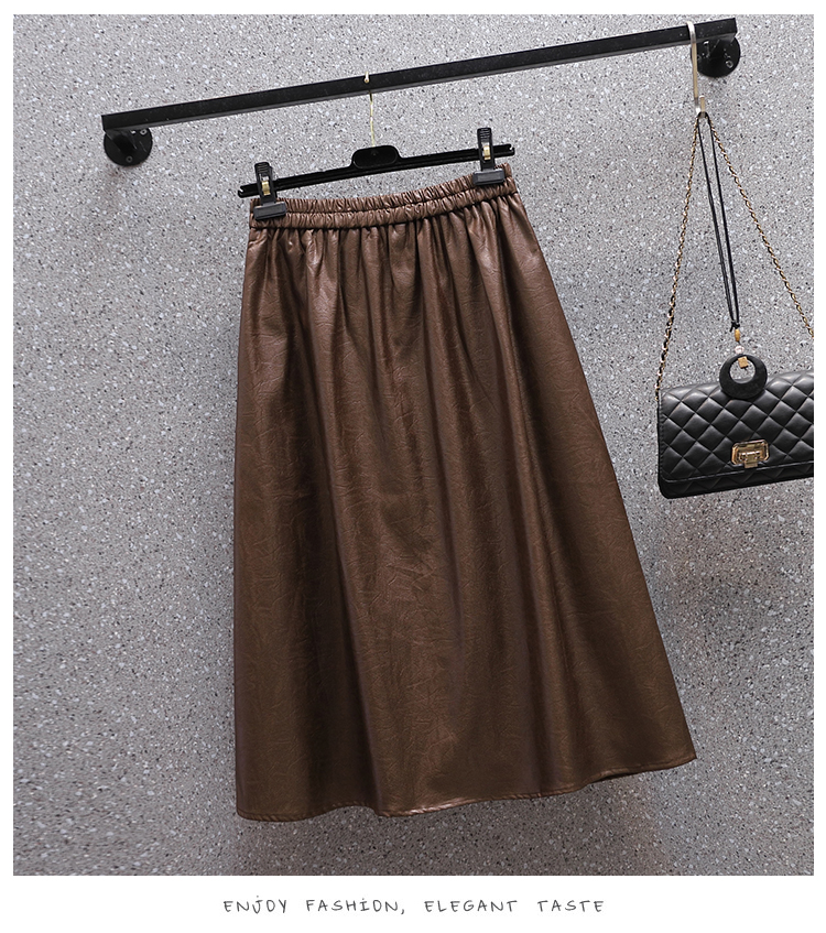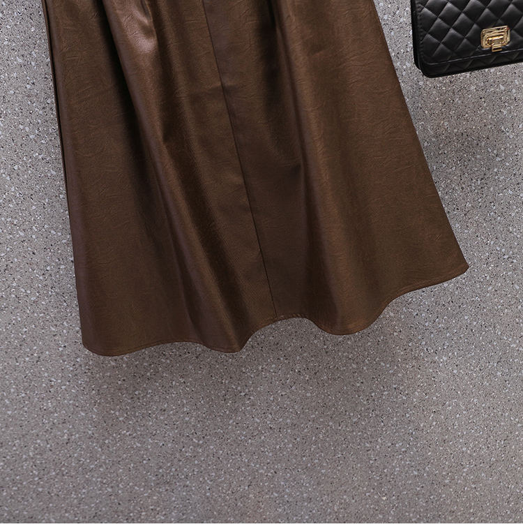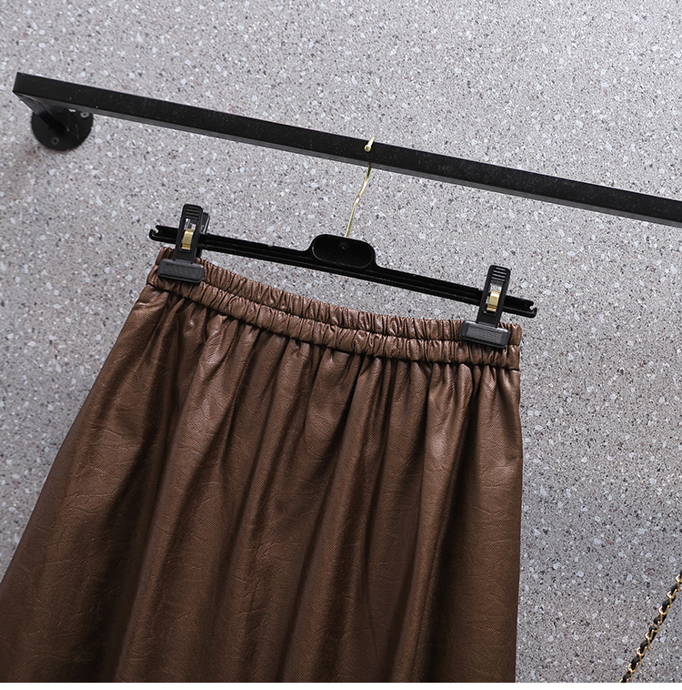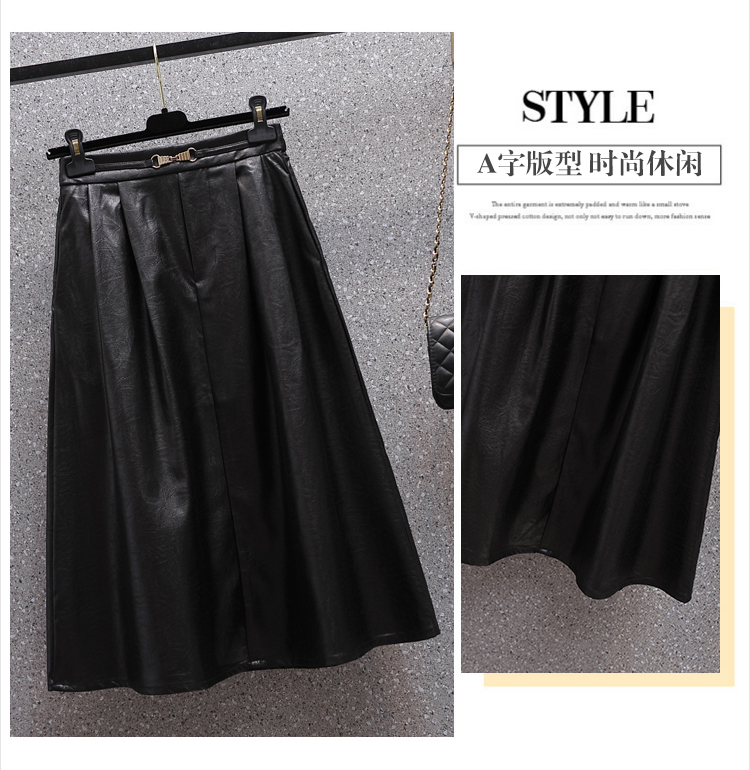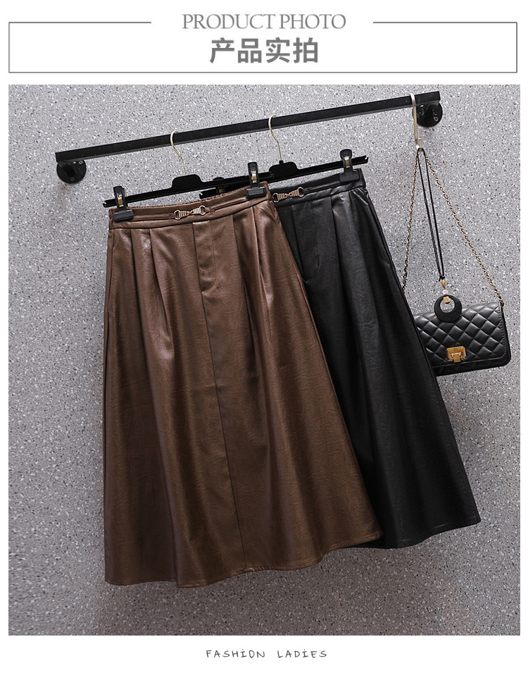 MY15235# 大码垂坠感pu皮裙胖MM高腰半身裙显瘦百搭软皮a字皮伞裙女裝貨源服裝批發
