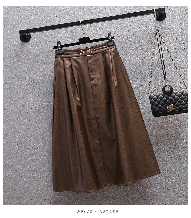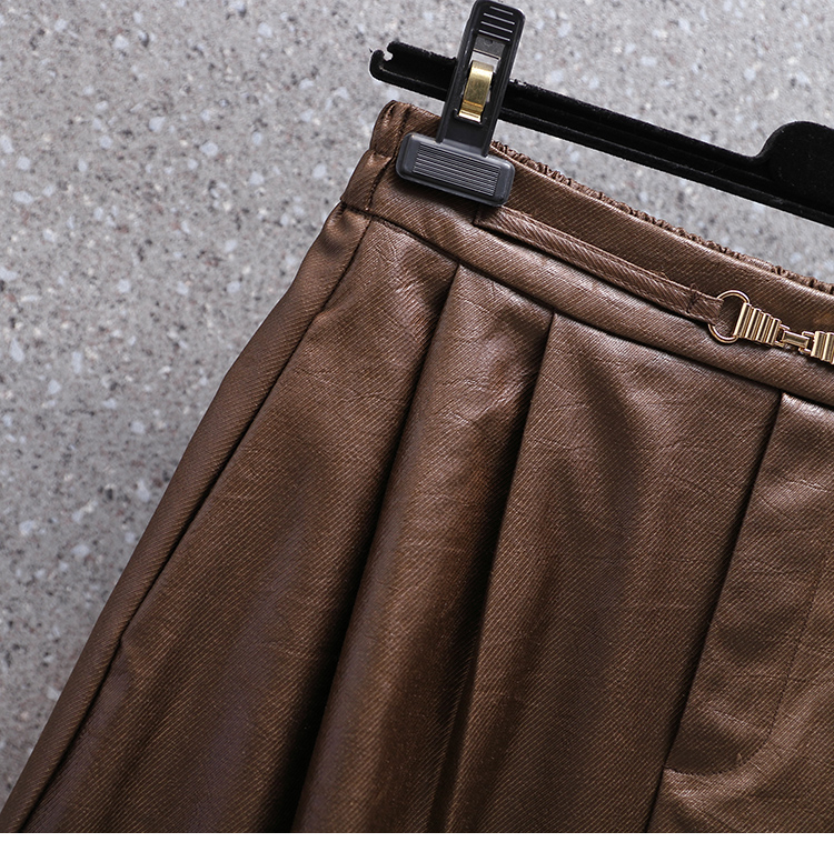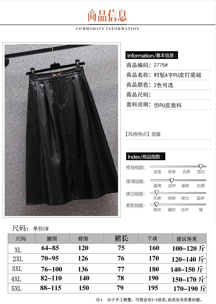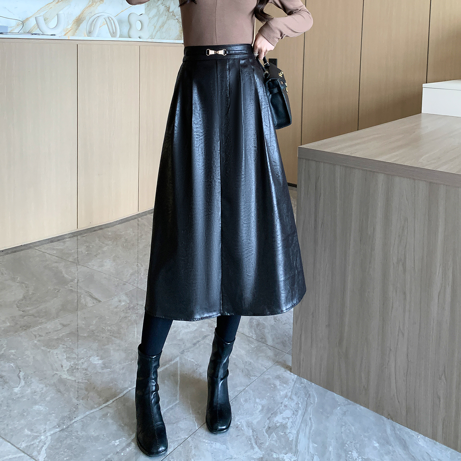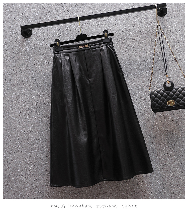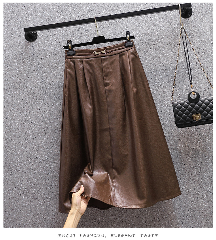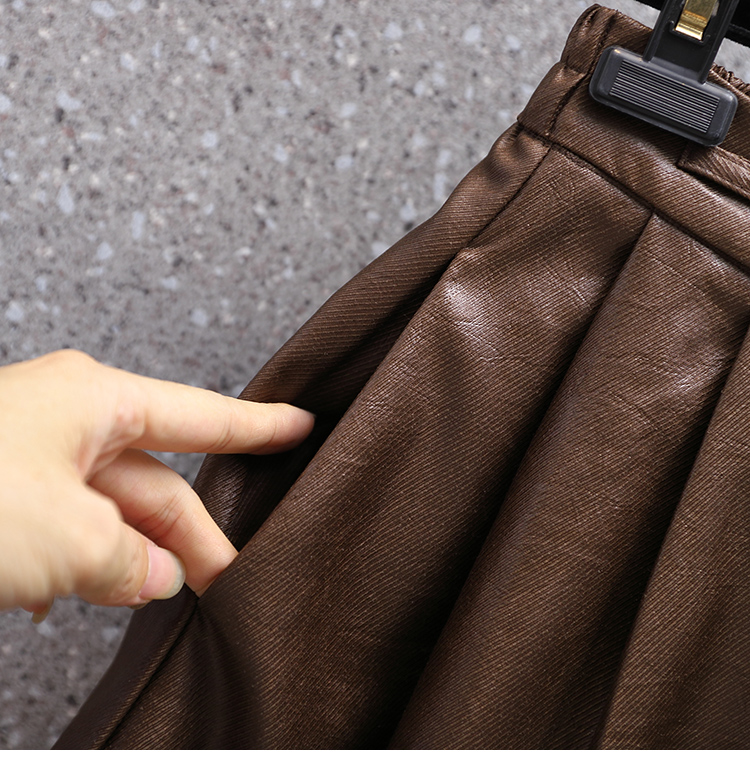 MY15235# 大码垂坠感pu皮裙胖MM高腰半身裙显瘦百搭软皮a字皮伞裙女裝貨源服裝批發