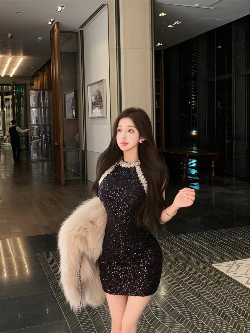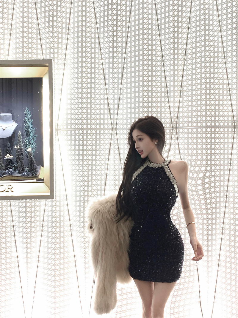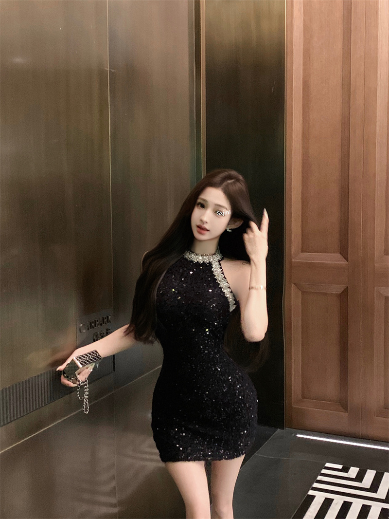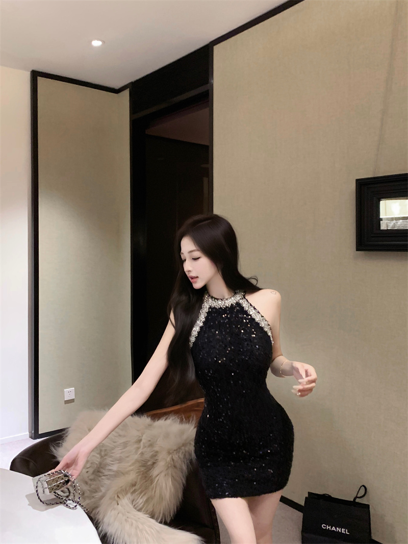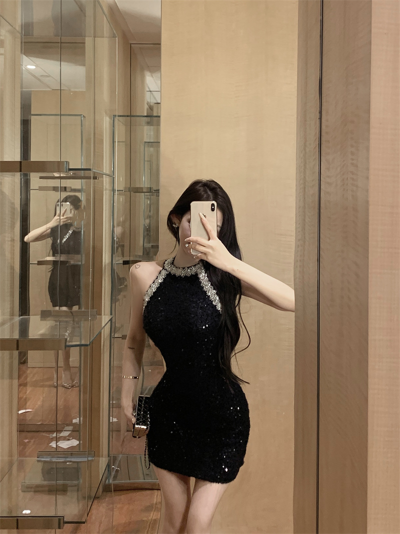 MY15253# 烫钻亮片丝绒宴会高级感生日party小礼裙修身显瘦连衣裙女裝貨源服裝批發