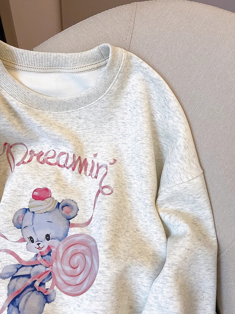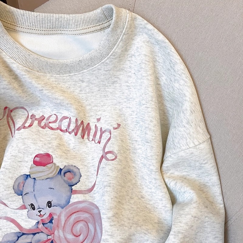 MY15254# 华棉复合-薄款/加绒 秋冬装加绒圆领卫衣女印花宝宝绒女裝貨源服裝批發