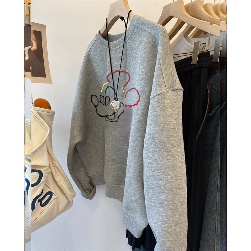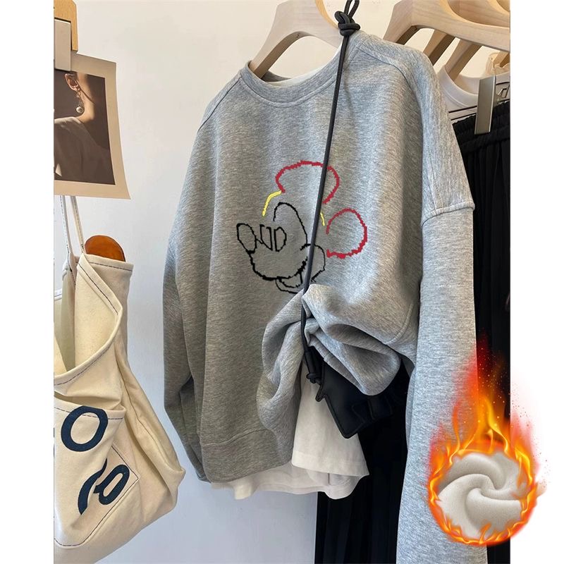 MY15263# 华棉复合-薄款/加绒 秋冬装加绒圆领卫衣女印花宝宝绒女裝貨源服裝批發