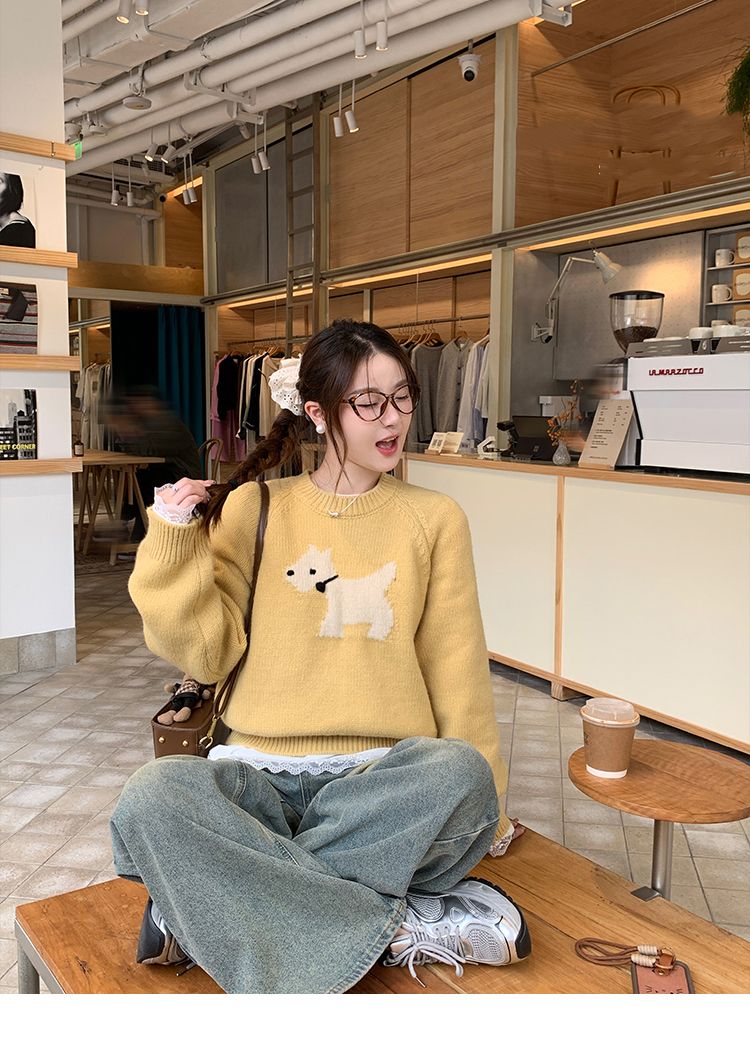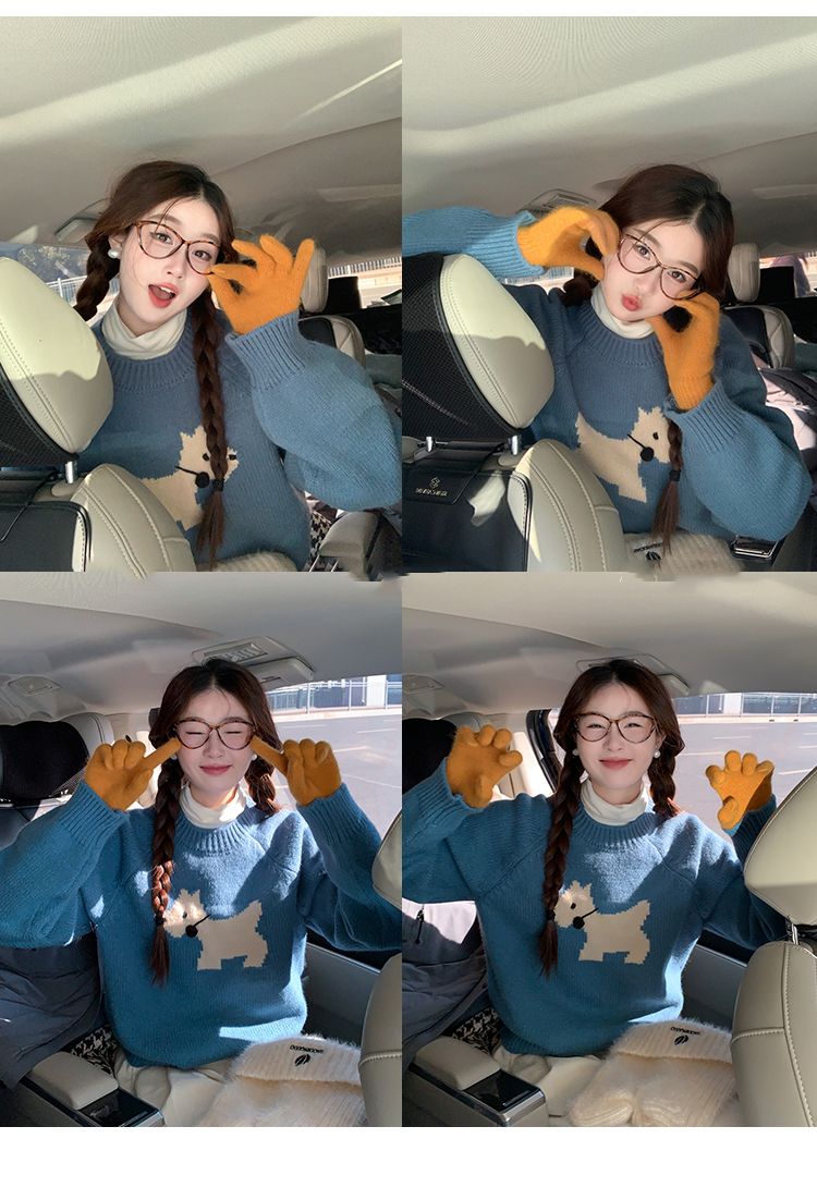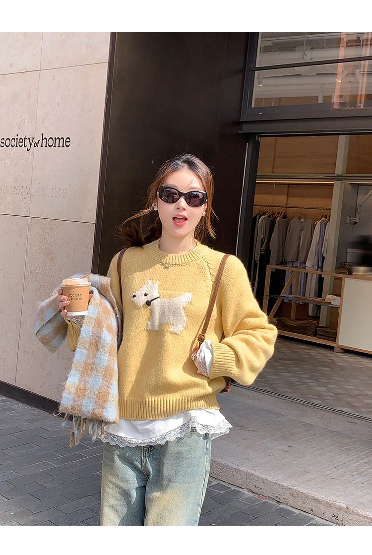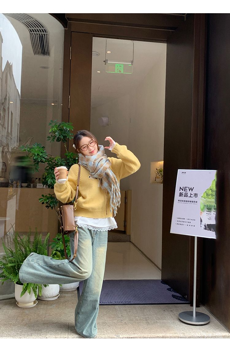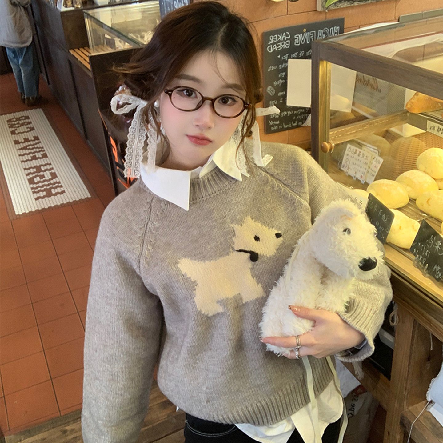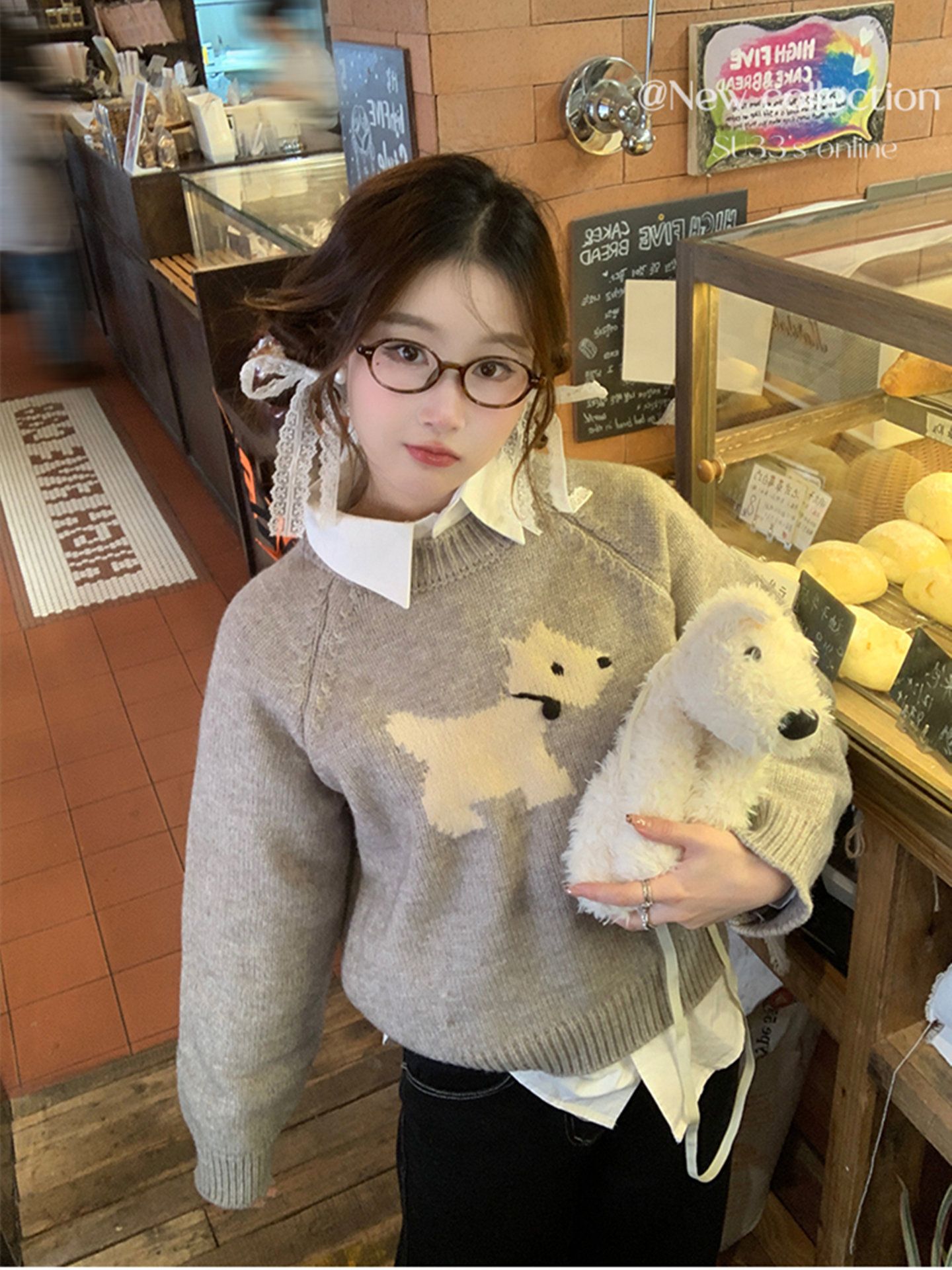 MY15383# 北极绒洗水 韩系翻领刺绣针织毛衣女女裝貨源服裝批發