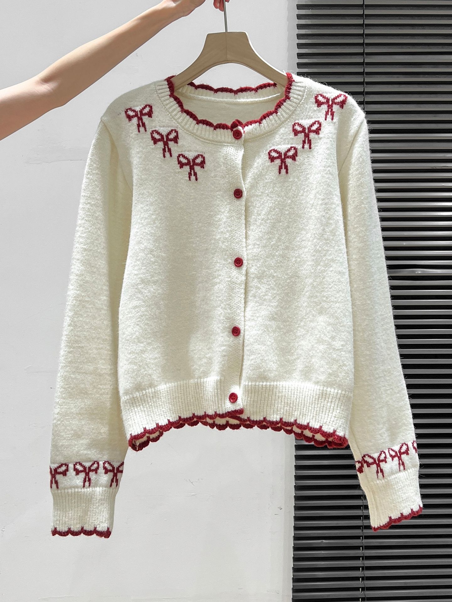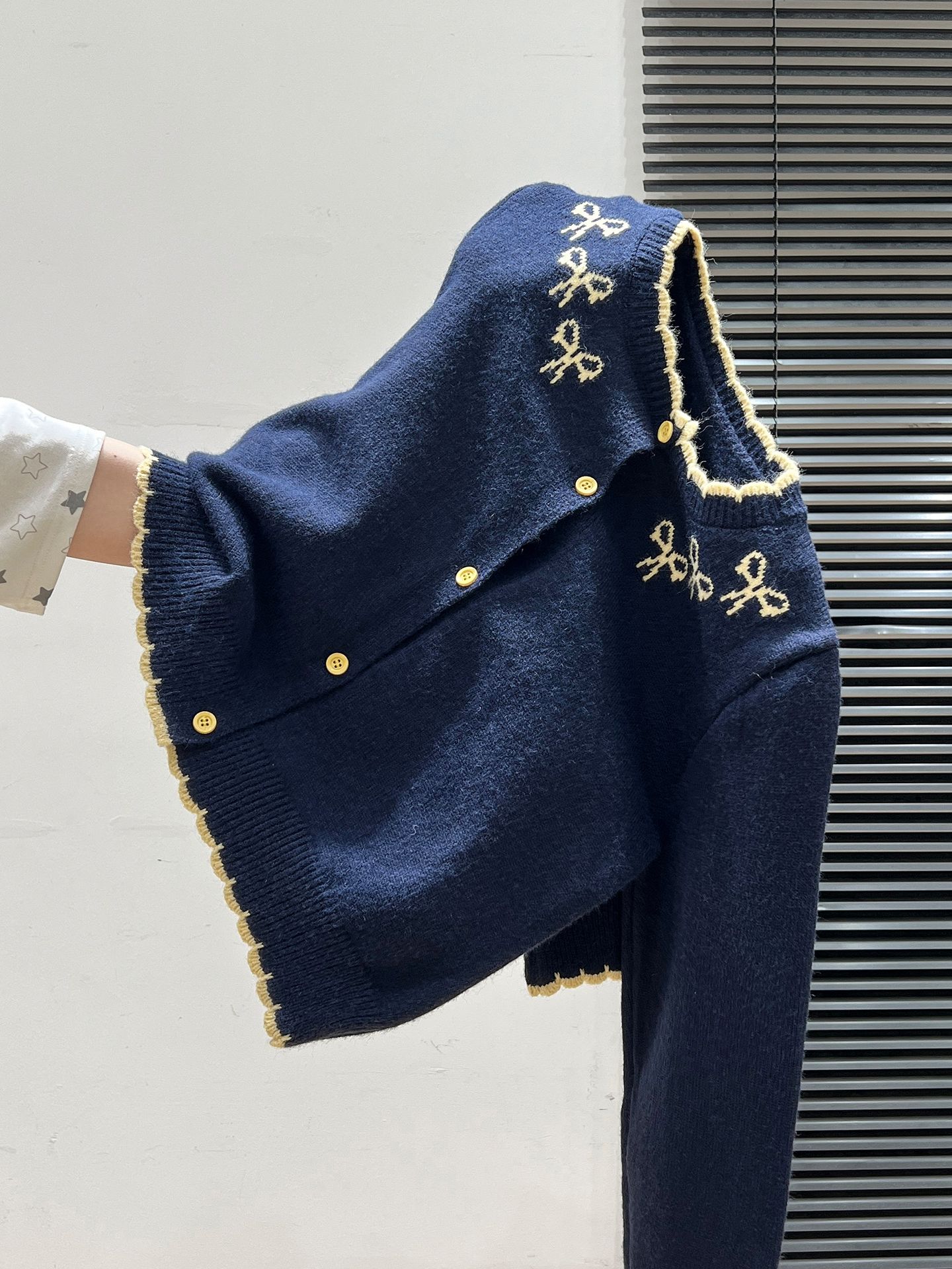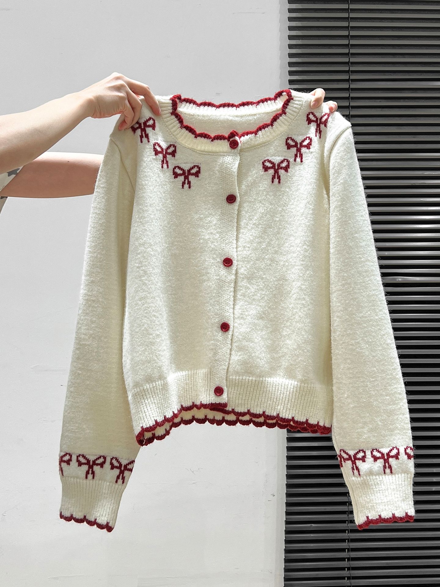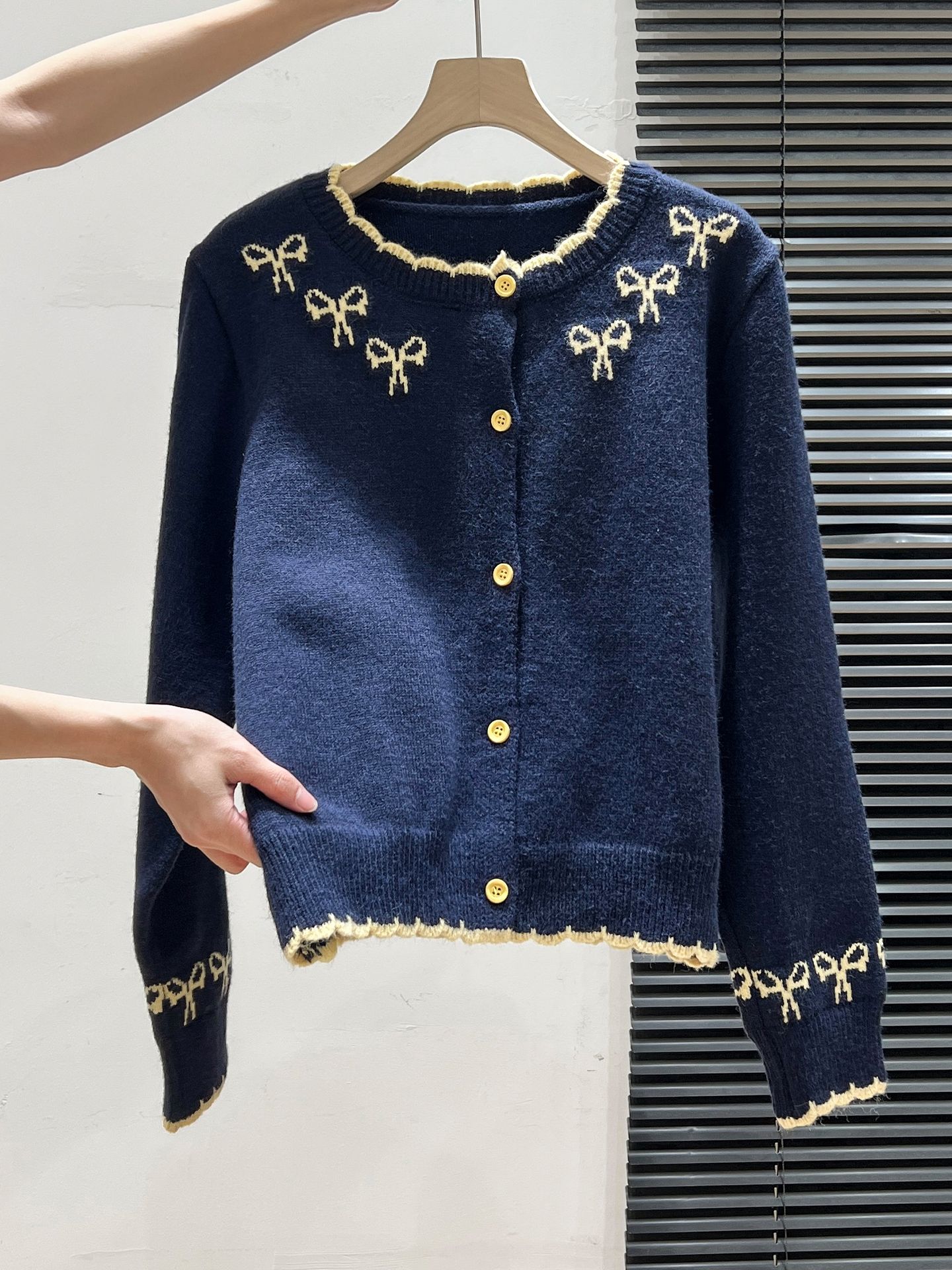 MY15384# 安迪绒洗水 韩系翻领刺绣针织开衫女女裝貨源服裝批發
