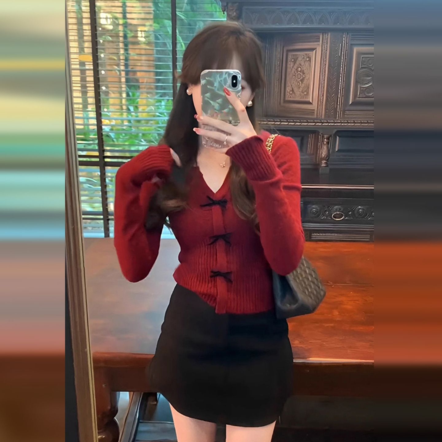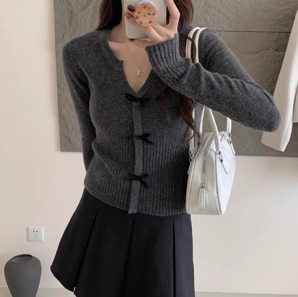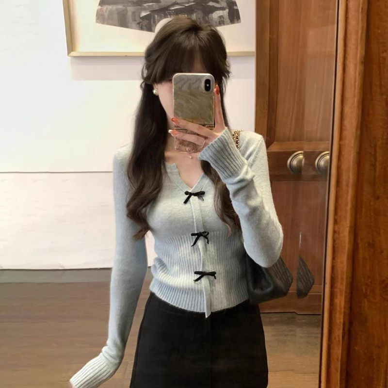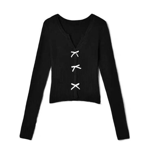 MY15385# 包芯纱洗水 纯欲风蝴蝶结针织毛衣女女裝貨源服裝批發