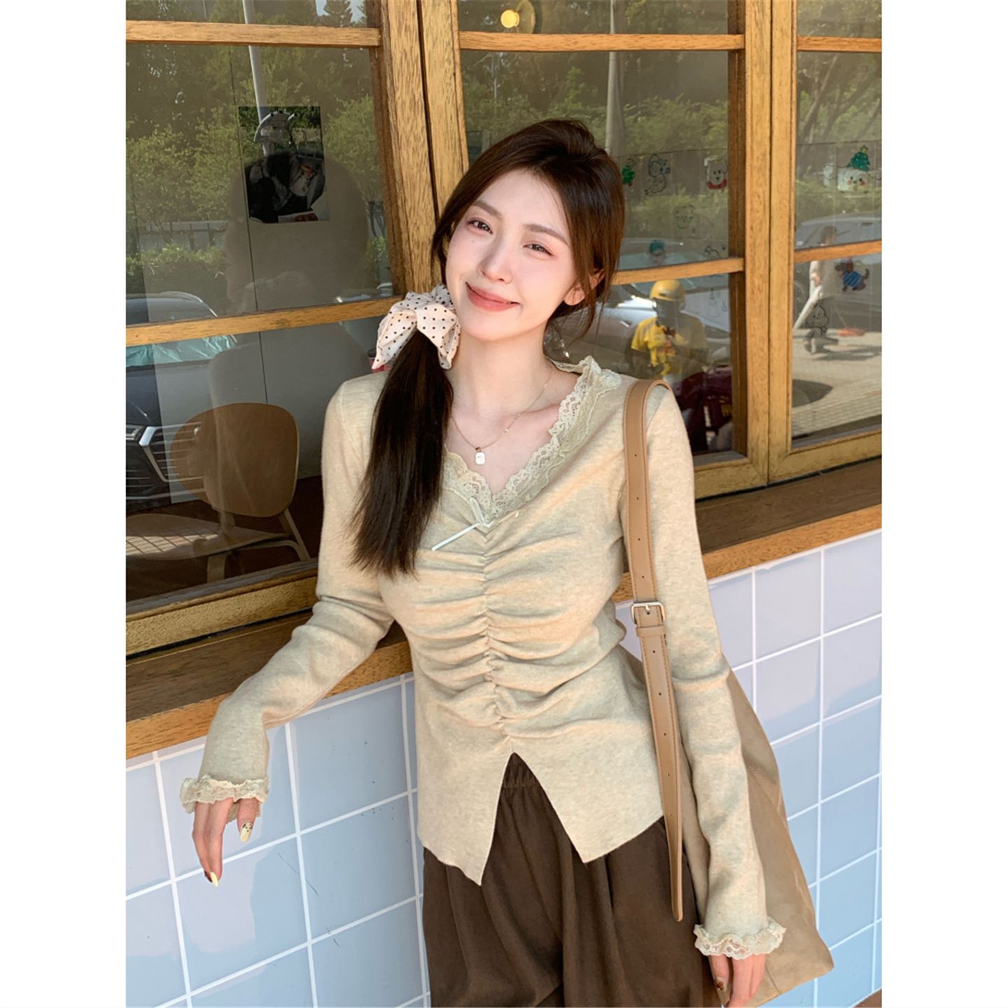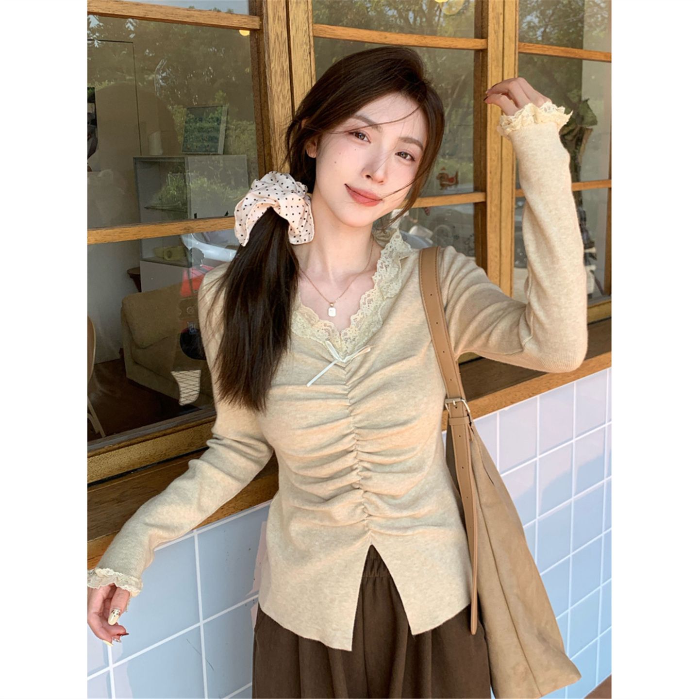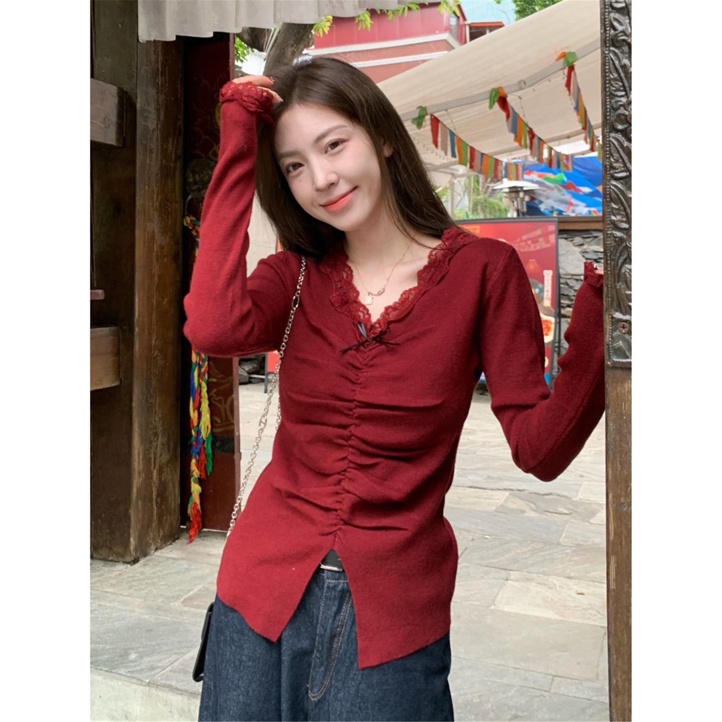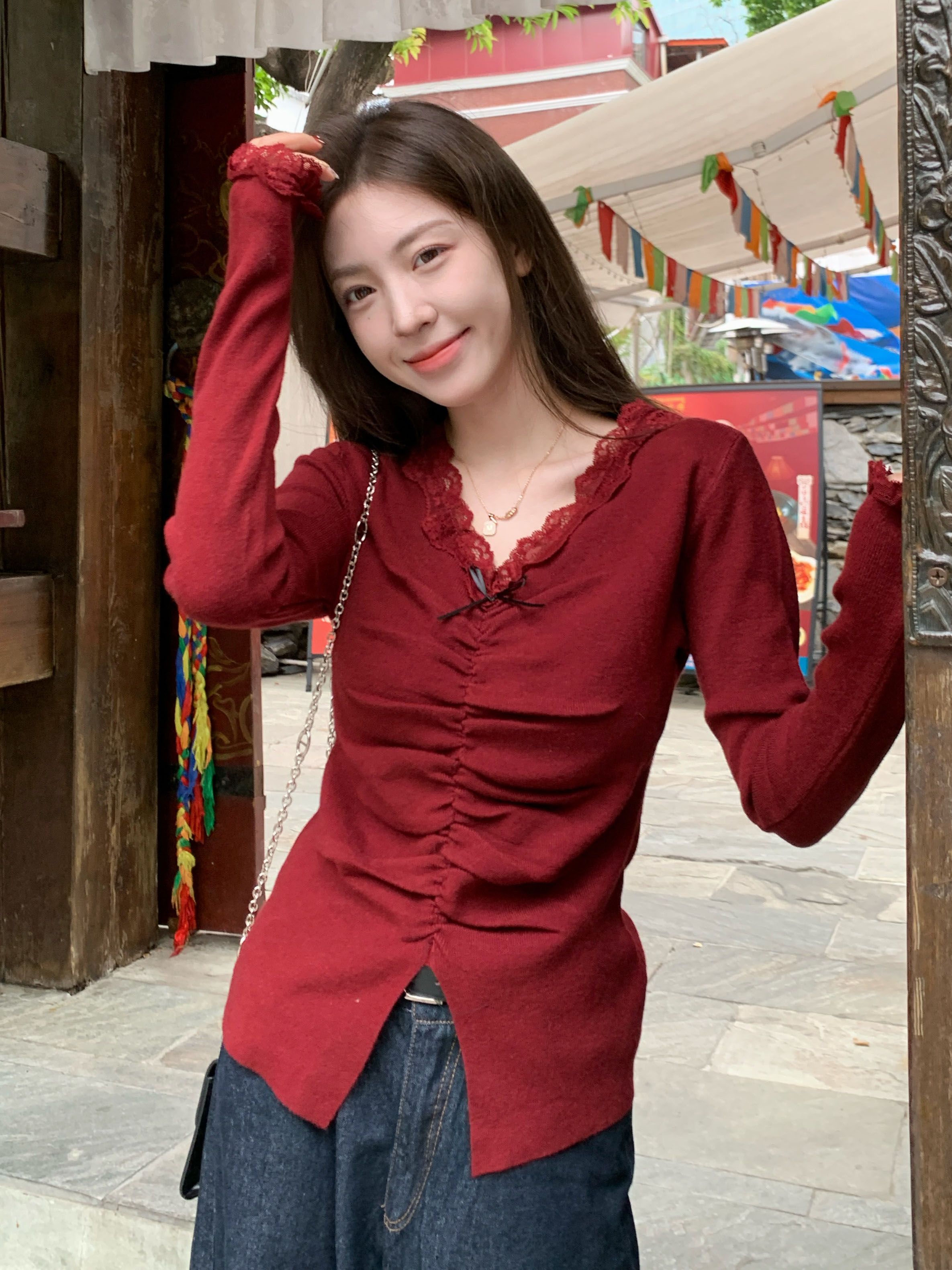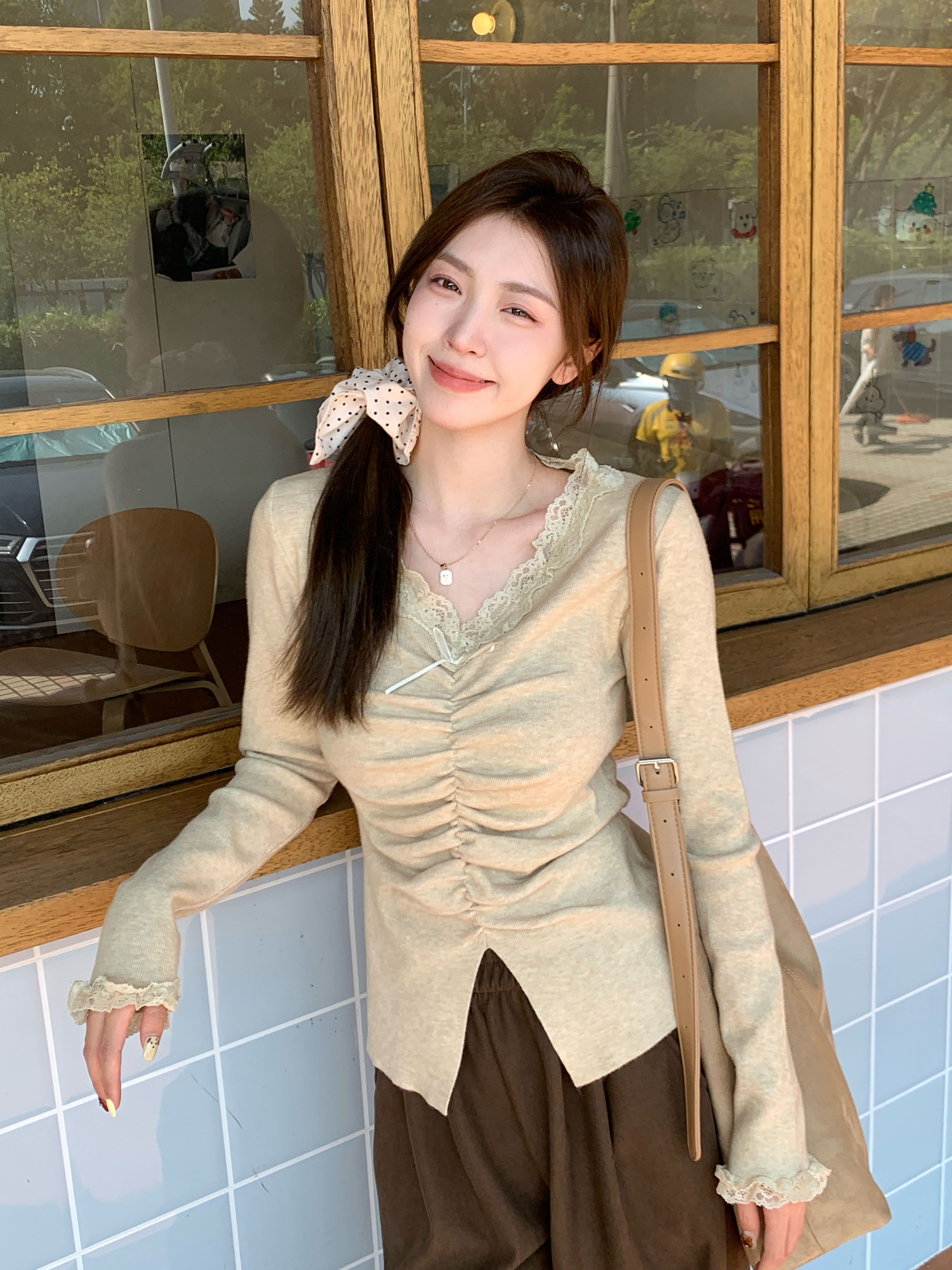 MY15386# 设计感小众深v领蕾丝打底针织毛衣女女裝貨源服裝批發