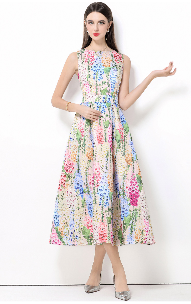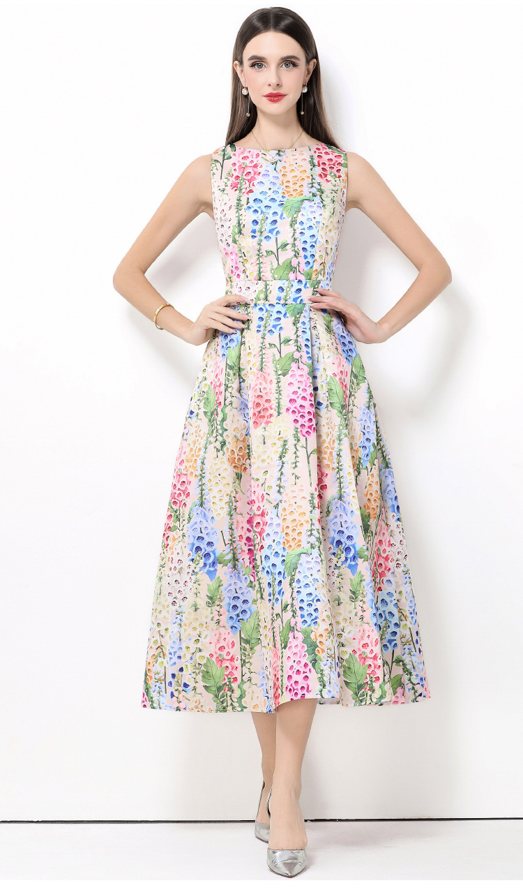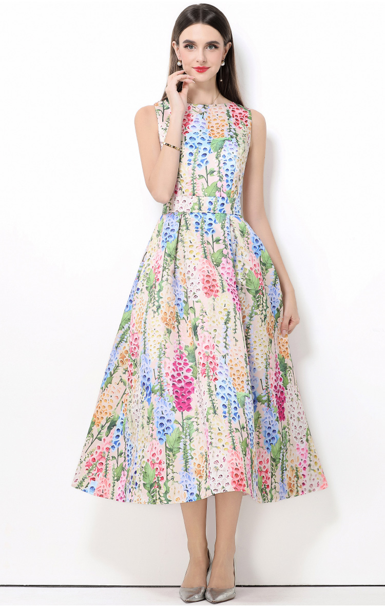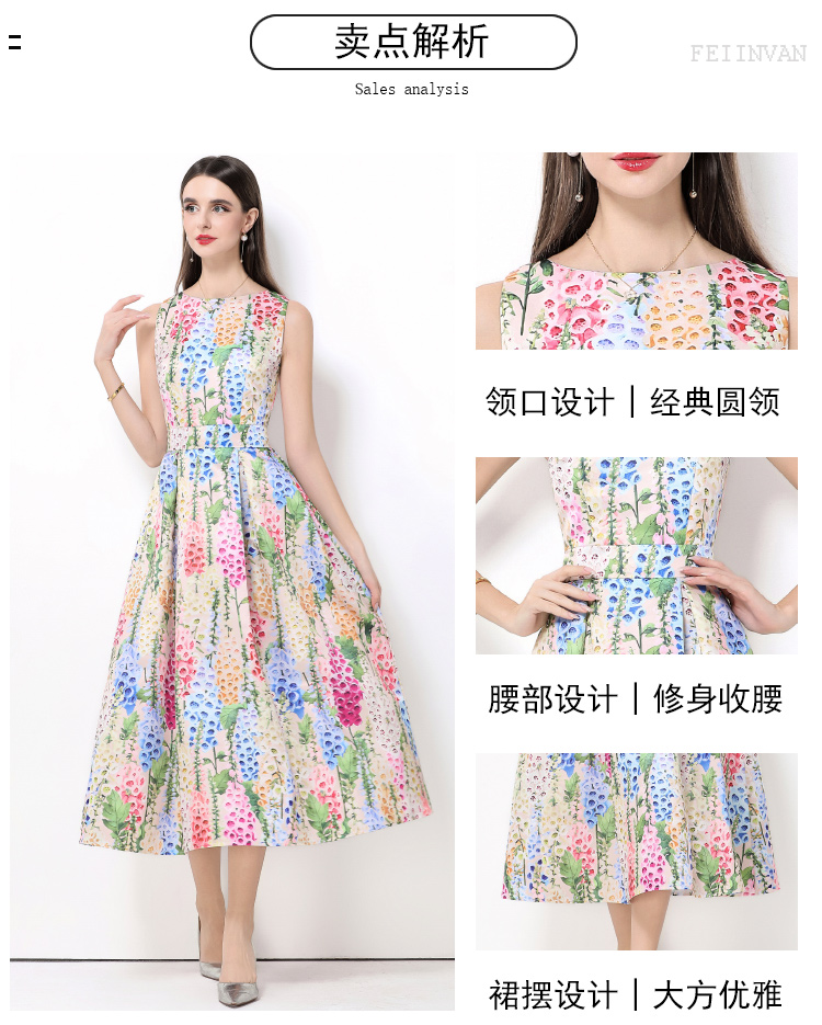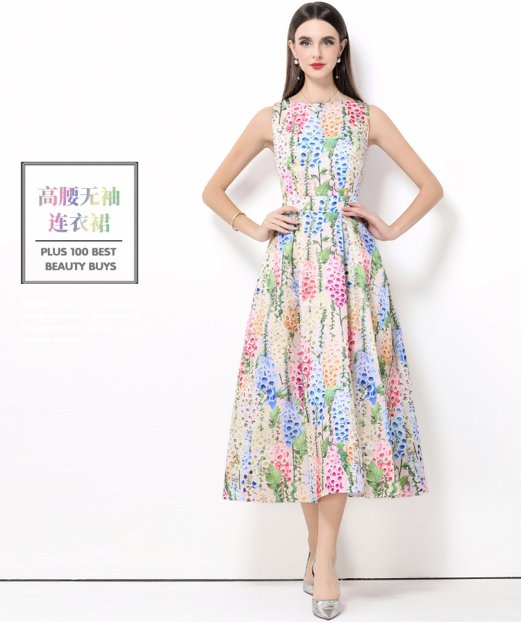 MY15420# 无袖高腰连衣裙立体剪裁收腰A字裙女裝貨源服裝批發