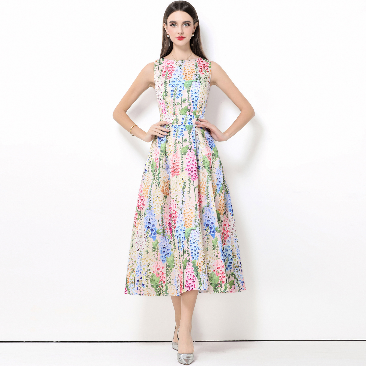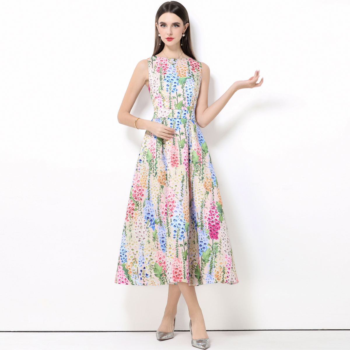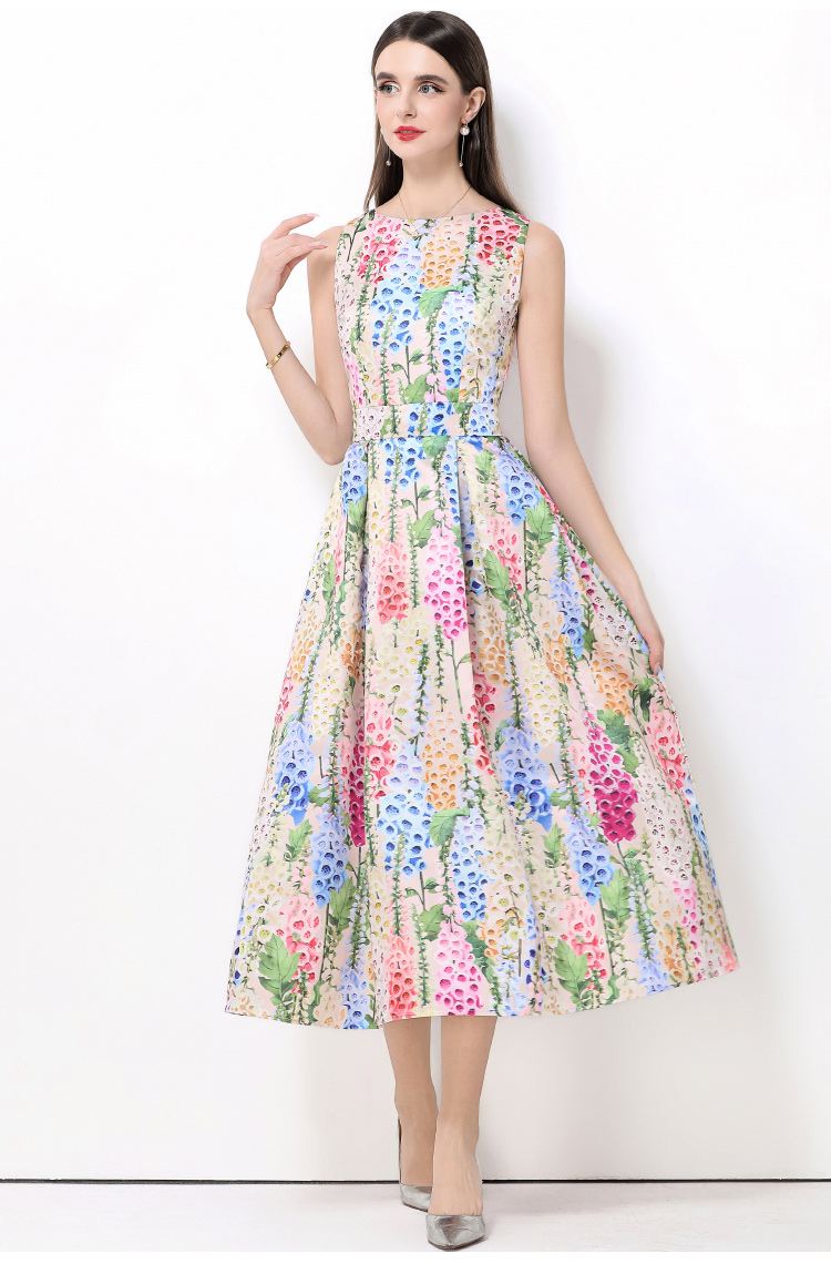 MY15420# 无袖高腰连衣裙立体剪裁收腰A字裙女裝貨源服裝批發