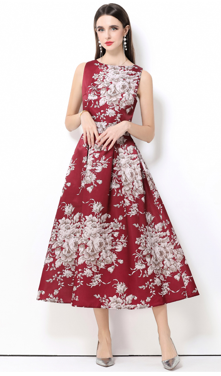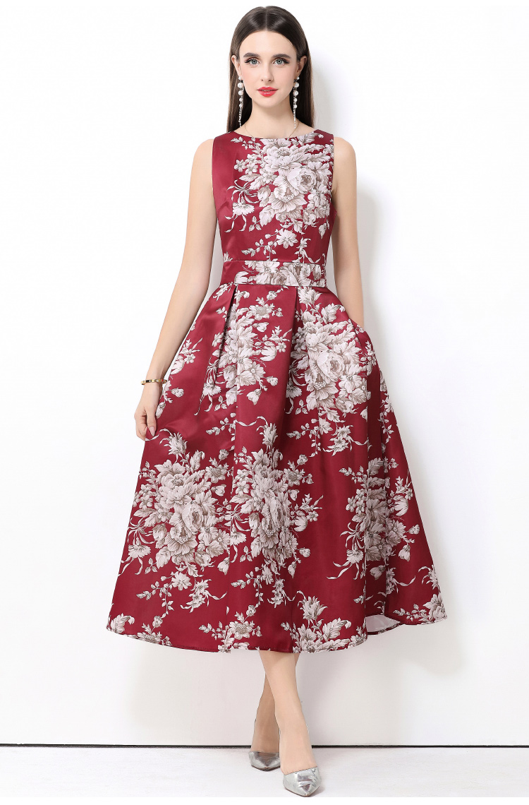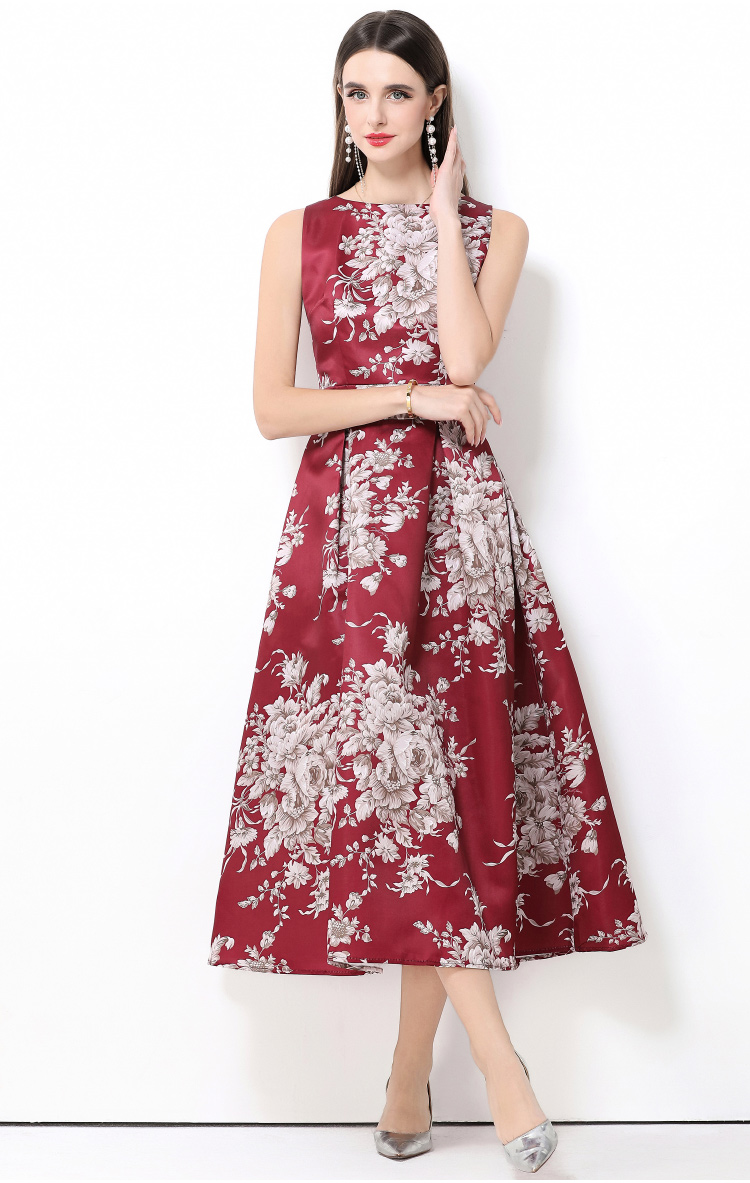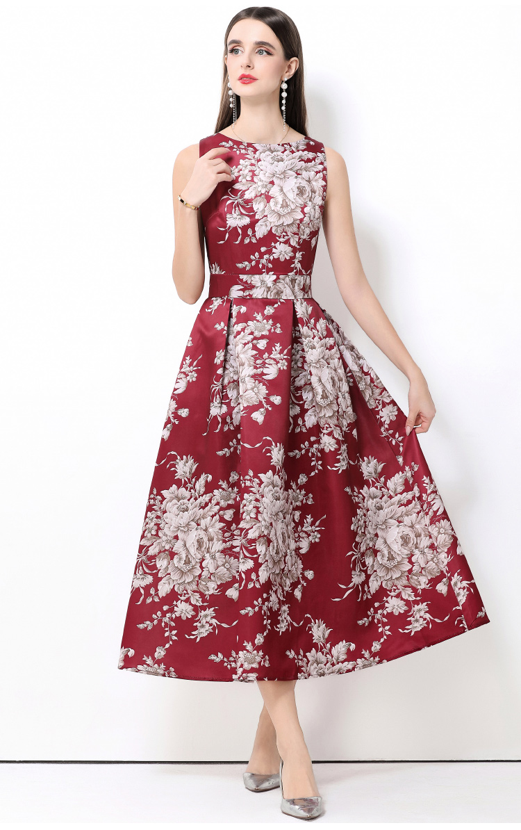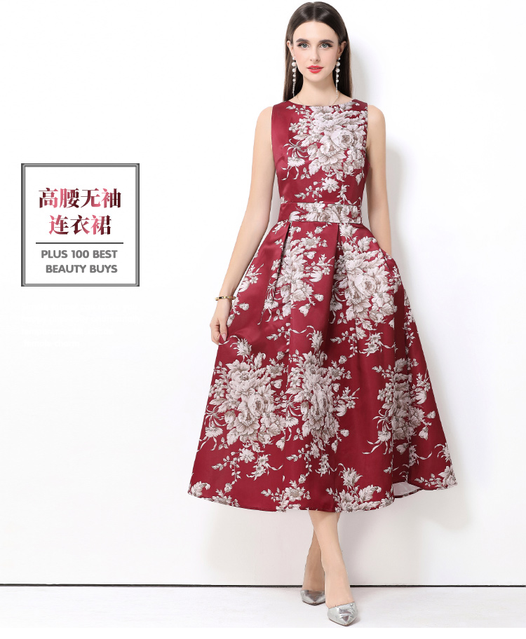 MY15421# 无袖高腰连衣裙立体剪裁收腰A字裙女裝貨源服裝批發